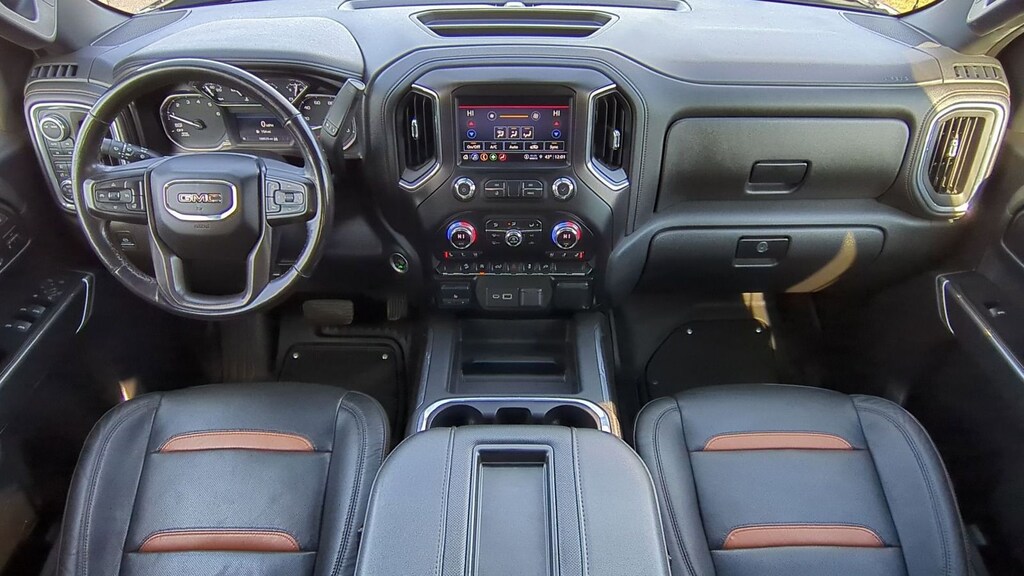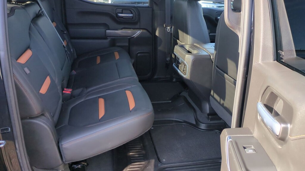 2021 GMC Sierra 1500 AT4 Is nicely equipped with Preferred Equipment Group 4SB (12-Volt Rear Auxiliary Power Outlet, 120-Volt Instrument Panel Power Outlet, 170 Amp Alternator, 2 USB Ports, 2 USB Ports (1st Row), 4.2" Diagonal Color Display Driver Info Center, 4G LTE Wi-Fi Hotspot Capable, Auto-Locking Rear Differential, Auxiliary External Transmission Oil Cooler, Body-Color Surround Grille, Color-Keyed Carpeting Floor Covering, Compass, Deep-Tinted Glass, Electric Rear-Window Defogger, Electrical Lock Control Steering Column, Floor-Mounted Center Console, Front Prem Floor Liners w/Removable Carpet Insert, GMC Connected Access Capable, HD Rear Vision Camera, Heated Driver & Front Outboard Passenger Seating, Heavy-Duty Air Filter, Hill Descent Control, Integrated Trailer Brake Controller, Keyless Open & Start, LED Cargo Area Lighting, Manual Tilt-Wheel & Telescoping Steering Column, OnStar & GMC Connected Services Capable, Power Door Locks, Power Front Passenger Windows w/Express Up/Down, Power Front Windows w/Driver Express Up/Down, Power Rear Windows w/Express Down, ProGrade Trailering System, Rear Dual USB Charging-Only Ports, Rear Wheelhouse Liners, Red Recovery Hooks, Remote Vehicle Starter System, Spray-On Pickup Bed Liner w/AT4 Logo, Steering Wheel Audio Controls, Theft Deterrent System (Unauthorized Entry), Ventilated Driver & Front Passenger Seats, 120-Volt Bed Mounted Power Outlet, Hitch Guidance w/Hitch View, In-Vehicle Trailering App, and Rear Prem Floor Liners w/Removable Carpet Insert), Trailering Package (Hitch Guidance), 10-Speed Automatic, 4WD, Jet Black With Kalahari Accents Leather, 10-Way Power Driver Seat Adjuster w/Lumbar, 10-Way Power Passenger Seat Adjuster w/Lumbar, 18" x 8.5" Machined Aluminum Wheels, 220 Amp Alternator, 3.23 Rear Axle Ratio, 4-Wheel Disc Brakes, 6 Speakers, 6-Speaker Audio System Feature, ABS brakes, Air Conditioning, Alloy wheels, AM/FM radio: SiriusXM with 360L, Apple CarPlay/Android Auto, Auto-dimming door mirrors, Auto-dimming Rear-View mirror, Automatic temperature control, Brake assist, Bumpers: body-color, Delay-off headlights, Driver door bin, Driver Memory, Driver vanity mirror, Dual front impact airbags, Dual front side impact airbags, Electronic Stability Control, Engine Block Heater, Front anti-roll bar, Front Bucket Seats, Front Center Armrest, Front dual zone A/C, Front fog lights, Front reading lights, Front wheel independent suspension, Fully automatic headlights, Heated 2nd Row Outboard Seats, Heated door mirrors, Heated front seats, Heated steering wheel, Illuminated entry, Low tire pressure warning, Memory seat, Occupant sensing airbag, Off-Road Suspension, Outside temperature display, Overhead airbag, Overhead console, Panic alarm, Passenger door bin, Passenger vanity mirror, Perforated Leather-Appointed Front Seat Trim, Power door mirrors, Power driver seat, Power passenger seat, Power steering, Power windows, Premium audio system: GMC Infotainment System, Radio data system, Radio: Premium GMC Infotainment Sys w/Multi-Touch, Rear reading lights, Rear seat center armrest, Rear step bumper, Rear window defroster, Remote keyless entry, Security system, SiriusXM w/360L, Speed control, Speed-sensing steering, Split folding rear seat, Steering wheel mounted audio controls, Tachometer, Telescoping steering wheel, Tilt steering wheel, Traction control, Trip computer, Variably intermittent wipers, Ventilated front seats, Voltmeter, and Wheels: 20" x 9" Machined Aluminum.