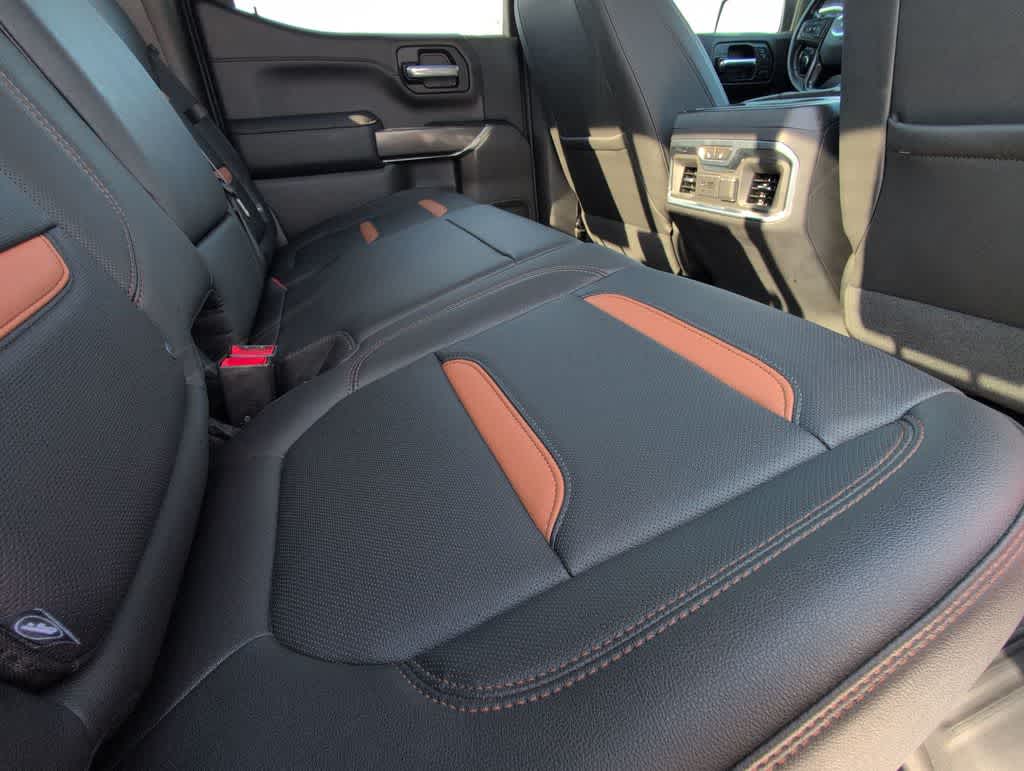 This Sierra 1500 AT4 is nicely equipped with AT4 Preferred Package (Power Sliding Rear Window w/Rear Defogger, Premium Bose 7-Speaker Sound System, Radio: Premium GMC Infotainment Sys w/Navigation, SiriusXM w/360L, Universal Home Remote, and Wireless Charging), Driver Alert Package I (Lane Change Alert w/Side Blind Zone Alert, Perimeter Lighting, Rear Cross Traffic Alert, and Ultrasonic Front & Rear Park Assist), Preferred Equipment Group 4SB (12-Volt Rear Auxiliary Power Outlet, 120-Volt Bed Mounted Power Outlet, 120-Volt Instrument Panel Power Outlet, 170 Amp Alternator, 2 USB Ports, 2 USB Ports (1st Row), 4.2 Diagonal Color Display Driver Info Center, 4G LTE Wi-Fi Hotspot Capable, Auto-Locking Rear Differential, Auxiliary External Transmission Oil Cooler, Body-Color Surround Grille, Color-Keyed Carpeting Floor Covering, Compass, Deep-Tinted Glass, Electric Rear-Window Defogger, Electrical Lock Control Steering Column, Floor-Mounted Center Console, Front Prem Floor Liners w/Removable Carpet Insert, GMC Connected Access Capable, HD Rear Vision Camera, Heated Driver & Front Outboard Passenger Seating, Heavy-Duty Air Filter, Hill Descent Control, Hitch Guidance w/Hitch View, In-Vehicle Trailering App, Integrated Trailer Brake Controller, Keyless Open & Start, LED Cargo Area Lighting, Manual Tilt-Wheel & Telescoping Steering Column, OnStar & GMC Connected Services Capable, Power Door Locks, Power Front Passenger Windows w/Express Up/Down, Power Front Windows w/Driver Express Up/Down, Power Rear Windows w/Express Down, ProGrade Trailering System, Rear Dual USB Charging-Only Ports, Rear Prem Floor Liners w/Removable Carpet Insert, Rear Wheelhouse Liners, Red Recovery Hooks, Remote Vehicle Starter System, Spray-On Pickup Bed Liner w/AT4 Logo, Steering Wheel Audio Controls, Theft Deterrent System (Unauthorized Entry), and Ventilated Driver & Front Passenger Seats), Trailering Package (Hitch Guidance), 10-Speed Automatic, 4WD, Jet Black With Kalahari Accents Leather, 10-Way Power Driver Seat Adjuster w/Lumbar, 10-Way Power Passenger Seat Adjuster w/Lumbar, 18 x 8.5 Machined Aluminum Wheels, 3.23 Rear Axle Ratio, 4-Wheel Disc Brakes, 6 Speakers, 6-Speaker Audio System Feature, ABS brakes, Air Conditioning, Alloy wheels, AM/FM radio: SiriusXM with 360L, Apple CarPlay/Android Auto, Auto-dimming door mirrors, Auto-dimming Rear-View mirror, Automatic temperature control, Brake assist, Bumpers: body-color, Console Insert Organizer Tray (LPO), Delay-off headlights, Driver door bin, Driver Memory, Driver vanity mirror, Dual front impact airbags, Dual front side impact airbags, Electronic Stability Control, Front anti-roll bar, Front Bucket Seats, Front Center Armrest, Front dual zone A/C, Front fog lights, Front reading lights, Front wheel independent suspension, Fully automatic headlights, Heated 2nd Row Outboard Seats, Heated door mirrors, Heated front seats, Heated steering wheel, Illuminated entry, Low tire pressure warning, Memory seat, Occupant sensing airbag, Off-Road Suspension, Outside temperature display, Overhead airbag, Overhead console, Panic alarm, Passenger door bin, Passenger vanity mirror, Perforated Leather-Appointed Front Seat Trim, Power door mirrors, Power driver seat, Power passenger seat, Power steering, Power Sunroof, Power windows, Premium audio system: GMC Infotainment System, Radio data system, Radio: Premium GMC Infotainment Sys w/Multi-Touch, Rear reading lights, Rear seat center armrest, Rear step bumper, Rear window defroster, Remote keyless entry, Security system, Speed control, Speed-sensing steering, Split folding rear seat, Steering wheel mounted audio controls, Tachometer, Telescoping steering wheel, Tilt steering wheel, Traction control, Trailer Tire Pressure Monitor System, Trip compu