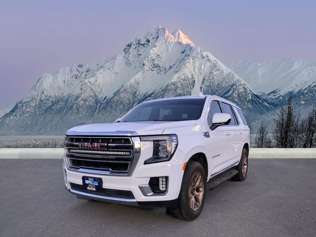 AUDIO SYSTEM, 10.2 DIAGONAL GMC INFOTAINMENT SYSTEM includes multi-touch display, AM/FM/SiriusXM stereo, Bluetooth® streaming audio for music and most phones, Android Auto® and Apple CarPlay® capability for compatible phones, advanced voice recognition, in-vehicle apps, personalized profiles for infotainment and vehicle settings (STD), ENGINE, 5.3L ECOTEC3 V8 with Dynamic Fuel Management, Direct Injection and Variable Valve Timing, includes aluminum block construction (355 hp [265 kW] @ 5600 rpm, 383 lb-ft of torque [518 Nm] @ 4100 rpm) (STD), TRANSMISSION, 10-SPEED AUTOMATIC electronically controlled with overdrive, includes Traction Select System including tow/haul (Most vehicles built on or after 6-7-2021 with a V8 engine will have (NSS) Not Equipped with Automatic Stop/Start, which removes Automatic Stop/Start, Engine control stop/start disable button and its content.) (STD). GMC SLT with SUMMIT WHITE exterior and JET BLACK interior features a 8 Cylinder Engine with 355 HP at 5600 RPM*.