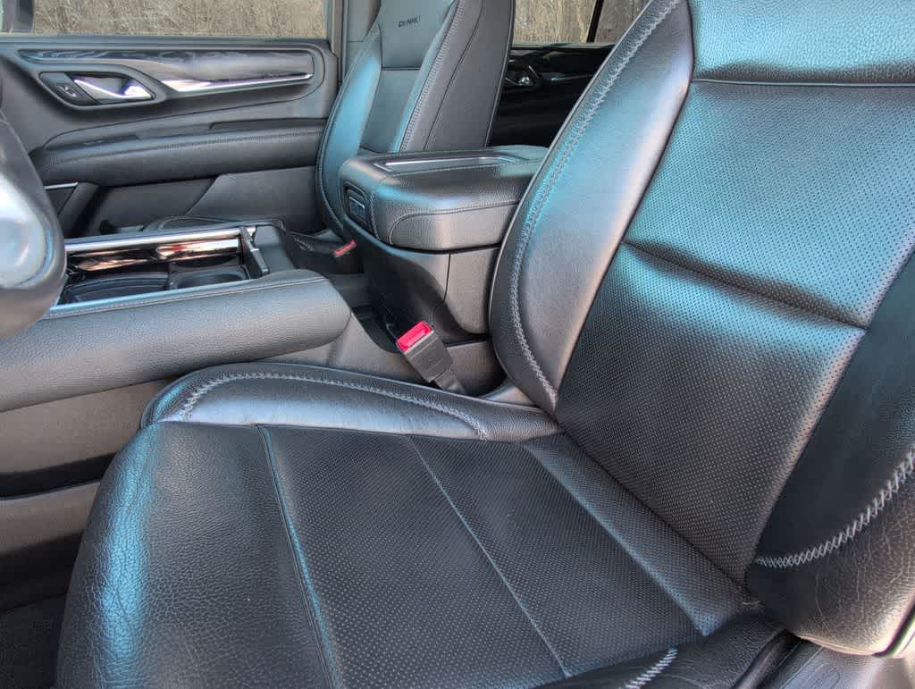 This Yukon Denali is nicely equipped with Advanced Security Package (Glass Breakage Sensor, Theft-Deterrent Alarm System, Vehicle Inclination Sensor, and Vehicle Interior Movement Sensor), Advanced Technology Package (Adaptive Cruise Control, Enhanced Automatic Emergency Braking, Inside Rearview Auto-Dimming Rear Camera Mirror, and Rear Camera Mirror Washer), Denali Ultimate Package (Air Ride Adaptive Suspension, Dual-Pane Panoramic Power Sunroof, Power-Retractable Assist Steps, and Rear Seat Media System), Max Trailering Package (Extra Capacity Cooling System), Preferred Equipment Group 5SA (12-Way Power Seat Adjusters, 15 Diagonal Multi-Color Head-Up Display, 2 Presets For Outside Rearview Mirrors, 3rd Row 60/40 Power-Folding Split-Bench Seat, Bright Front & Rear Door Sill Plates, Chrome Door Handles w/Body-Color Strip, Dual Exhaust System, Galvano Bodyside Moldings, Hands-Free Power Programmable Rear Liftgate, HD Surround Vision, Heated & Ventilated Driver & Front Passenger Seats, Heated 2nd Row Outboard Position Seats, Heated Automatic Steering Wheel, Heated Driver & Front Passenger Seats, Inside Rear-View Auto-Dimming Mirror, Outside Heated Power-Adjustable Mirrors, Power Release 2nd Row Bucket Seats, Power Tilt & Telescopic Steering Column, Rear Pedestrian Alert, and Universal Home Remote), 14 Speakers, 3.23 Rear Axle Ratio, 3rd row seats: split-bench, 4-Wheel Disc Brakes, ABS brakes, Adaptive suspension, Air Conditioning, Alloy wheels, AM/FM radio: SiriusXM with 360L, Apple CarPlay/Android Auto, Auto High-beam Headlights, Auto-dimming door mirrors, Auto-dimming Rear-View mirror, Auto-leveling suspension, Automatic Emergency Braking, Automatic temperature control, Bodyside moldings, Bose 14-Speaker Surround w/CenterPoint, Brake assist, Bumpers: body-color, Compass, Delay-off headlights, Driver door bin, Driver vanity mirror, Dual front impact airbags, Dual front side impact airbags, Electronic Stability Control, Emergency communication system: OnStar and GMC connected services capable, Floor Console, Following Distance Indicator, Forward Collision Alert, Four wheel independent suspension, Front anti-roll bar, Front Bucket Seats, Front Center Armrest, Front dual zone A/C, Front fog lights, Front Pedestrian Braking, Front reading lights, Fully automatic headlights, Garage door transmitter, HD Radio, Heads-Up Display, Heated door mirrors, Heated front seats, Heated rear seats, Heated steering wheel, Hitch Guidance w/Hitch View, Illuminated entry, Illuminated Mirror GMC Emblem (LPO), In-Vehicle Trailering App, Integrated Trailer Brake Controller, IntelliBeam Automatic High Beam On/Off, Jet Black Interior Trim, Lane Change Alert w/Side Blind Zone Alert, Lane Keep Assist w/Lane Departure Warning, Leather steering wheel, Low tire pressure warning, Magnetic Ride Control Suspension, Memory seat, Occupant sensing airbag, Outside temperature display, Overhead airbag, Overhead console, Panic alarm, Passenger door bin, Passenger vanity mirror, Perforated Leather Seating Surfaces, Power door mirrors, Power driver seat, Power Liftgate, Power passenger seat, Power steering, Power windows, Radio: AM/FM/SiriusXM w/Navigation, Rain sensing wipers, Rear air conditioning, Rear anti-roll bar, Rear Cross Traffic Alert, Rear reading lights, Rear window defroster, Rear window wiper, Remote keyless entry, Roof rack: rails only, Security system, SiriusXM w/360L, Speed control, Speed-sensing steering, Split folding rear seat, Spoiler, Steering wheel memory, Steering wheel mounted audio controls, Tachometer, Telescoping steering wheel, Tilt steering wheel, Traction control, Trailer Side Blind Zone Alert, Trailer Tire Pressure Monitor Sensors, Trip computer, Turn signal indicator mirrors, Variably intermittent wipers, Ventilated front seats, Voltmeter, Wheels: 20 x 9 6-Spoke Polished Aluminum, Wheels: 22 M
