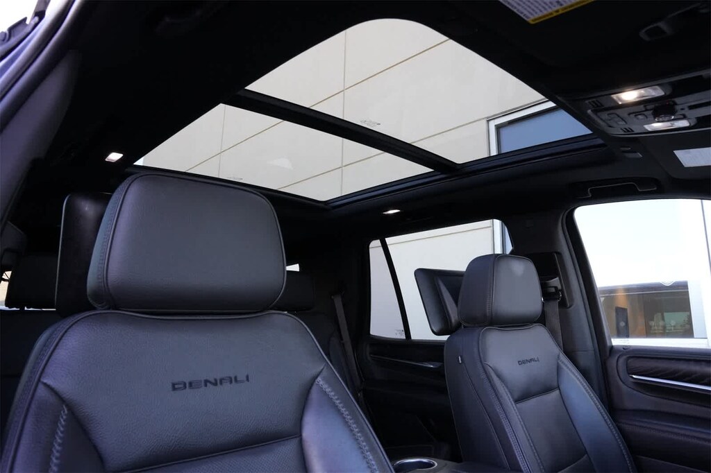 4WD, 12-Way Power Seat Adjusters, 14 Speakers, 15 Diagonal Multi-Color Head-Up Display, 2 Presets For Outside Rearview Mirrors, 3.23 Rear Axle Ratio, 3rd Row 60/40 Power-Folding Split-Bench Seat, 3rd row seats: split-bench, 4-Wheel Disc Brakes, ABS brakes, Adaptive Cruise Control, Adaptive suspension, Advanced Security Package, Advanced Technology Package, Air Conditioning, Alloy wheels, AM/FM radio: SiriusXM with 360L, Apple CarPlay/Android Auto, Auto High-beam Headlights, Auto-dimming door mirrors, Auto-dimming Rear-View mirror, Auto-leveling suspension, Automatic Emergency Braking, Automatic temperature control, Bodyside moldings, Bose 14-Speaker Surround w/CenterPoint, Brake assist, Bright Front & Rear Door Sill Plates, Bumpers: body-color, Chrome Door Handles w/Body-Color Strip, Compass, Delay-off headlights, Denali Premium Package, Driver door bin, Driver vanity mirror, Dual Exhaust System, Dual front impact airbags, Dual front side impact airbags, Dual-Pane Panoramic Power Sunroof, Electronic Stability Control, Emergency communication system: OnStar and GMC connected services capable, Enhanced Automatic Emergency Braking, Floor Console, Following Distance Indicator, Forward Collision Alert, Four wheel independent suspension, Front & Rear Park Assist, Front anti-roll bar, Front Bucket Seats, Front Center Armrest, Front dual zone A/C, Front fog lights, Front Pedestrian Braking, Front reading lights, Fully automatic headlights, Galvano Bodyside Moldings, Garage door transmitter, Glass Breakage Sensor, Hands-Free Power Programmable Rear Liftgate, HD Radio, HD Surround Vision, Heads-Up Display, Heated & Ventilated Driver & Front Passenger Seats, Heated 2nd Row Outboard Position Seats, Heated Automatic Steering Wheel, Heated door mirrors, Heated Driver & Front Passenger Seats, Heated front seats, Heated rear seats, Heated steering wheel, Hill Descent Control, Illuminated entry, Inside Rear-View Auto-Dimming Mirror, Inside Rearview Auto-Dimming Rear Camera Mirror, IntelliBeam Automatic High Beam On/Off, Jet Black Interior Trim, Lane Change Alert w/Side Blind Zone Alert, Lane Keep Assist w/Lane Departure Warning, Leather steering wheel, Low tire pressure warning, Magnetic Ride Control Suspension, Memory seat, Navigation System, Not Equipped w/Automatic Stop/Start, Occupant sensing airbag, Outside Heated Power-Adjustable Mirrors, Outside temperature display, Overhead airbag, Overhead console, Panic alarm, Passenger door bin, Passenger vanity mirror, Perforated Leather Seating Surfaces, Power door mirrors, Power driver seat, Power Liftgate, Power passenger seat, Power Release 2nd Row Bucket Seats, Power steering, Power Tilt & Telescopic Steering Column, Power windows, Power-Retractable Assist Steps, Preferred Equipment Group 5SA, Radio: AM/FM/SiriusXM w/Navigation, Rain sensing wipers, Rear air conditioning, Rear anti-roll bar, Rear Camera Mirror Washer, Rear Cross Traffic Alert, Rear Pedestrian Alert, Rear reading lights, Rear Seat Media System, Rear window defroster, Rear window wiper, Remote keyless entry, Roof rack: rails only, Safety Alert Seat, Security system, SiriusXM w/360L, Speed control, Speed-sensing steering, Split folding rear seat, Spoiler, Steering wheel memory, Steering wheel mounted audio controls, Tachometer, Telescoping steering wheel, Theft-Deterrent Alarm System, Tilt steering wheel, Traction control, Trip computer, Turn signal indicator mirrors, Universal Home Remote, Variably intermittent wipers, Vehicle Inclination Sensor, Vehicle Interior Movement Sensor, Ventilated front seats, Voltmeter, Wheel Locks, Wheels: 20 x 9 6-Spoke Polished Aluminum, Wheels: 22 x 9 Bright Machined Aluminum, 4WD.