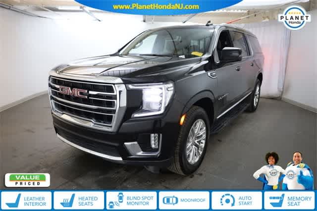 SLT LUXURY PACKAGE includes (UV2) HD Surround Vision, (UKK) Rear Pedestrian Alert, (A45) memory settings, (DXR) outside heated power-adjustable, power-folding, body-color mirrors with driver-side auto-dimming and integrated turn signal indicators, (N38) power tilt and telescopic steering column, (KI3) automatic heated steering wheel, (KA6) second row outboard heated seats, (ATT) second row power 60/40 split-folding bench seats and (AS8) third row power 60/40 splitfolding bench seats, AUDIO SYSTEM, 10.2 DIAGONAL GMC INFOTAINMENT SYSTEM WITH NAVIGATION includes multi-touch display, AM/FM/SiriusXM stereo, Bluetooth® streaming audio for music and most phones, Android Auto® and Apple CarPlay® capability for compatible phones, advanced voice recognition, in-vehicle apps, personalized profiles for infotainment and vehicle settings, ENGINE, 5.3L ECOTEC3 V8 with Dynamic Fuel Management, Direct Injection and Variable Valve Timing, includes aluminum block construction (355 hp [265 kW] @ 5600 rpm, 383 lb-ft of torque [518 Nm] @ 4100 rpm) (STD), TRANSMISSION, 10-SPEED AUTOMATIC electronically controlled with overdrive, includes Traction Select System including tow/haul (Most vehicles built on or after 6-7-2021 with a V8 engine will have (NSS) Not Equipped with Automatic Stop/Start, which removes Automatic Stop/Start, Engine control stop/start disable button and its content.) (STD).