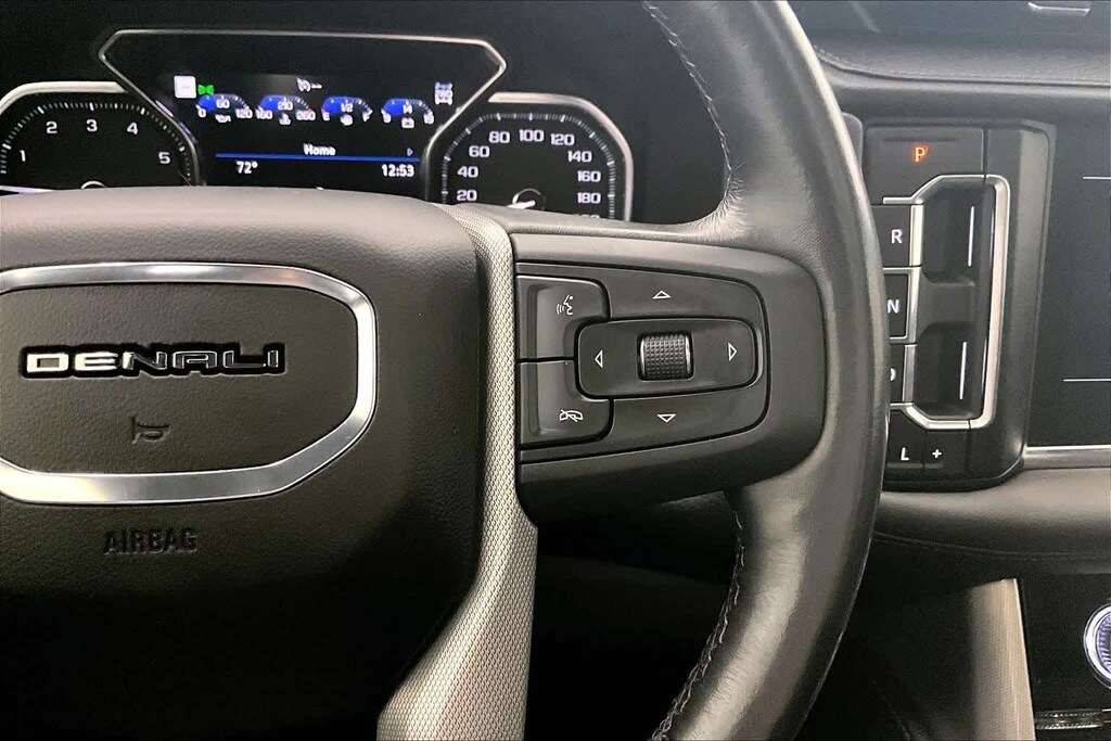 Clean CARFAX. 2021 GMC Yukon Denali 4WD 10-Speed Automatic with Overdrive EcoTec3 6.2L V8 4WD, 12-Way Power Seat Adjusters, 14 Speakers, 15 Diagonal Multi-Color Head-Up Display, 2 Presets For Outside Rearview Mirrors, 3.23 Rear Axle Ratio, 3rd Row 60/40 Power-Folding Split-Bench Seat, 3rd row seats: split-bench, 4-Wheel Disc Brakes, ABS brakes, Adaptive suspension, Air Conditioning, Alloy wheels, AM/FM radio: SiriusXM with 360L, Apple CarPlay/Android Auto, Auto High-beam Headlights, Auto-dimming door mirrors, Auto-dimming Rear-View mirror, Auto-leveling suspension, Automatic Emergency Braking, Automatic temperature control, Bodyside moldings, Bose 14-Speaker Surround w/CenterPoint, Brake assist, Bright Front & Rear Door Sill Plates, Bumpers: body-color, Chrome Door Handles w/Body-Color Strip, Compass, Delay-off headlights, Driver door bin, Driver vanity mirror, Dual Exhaust System, Dual front impact airbags, Dual front side impact airbags, Electronic Stability Control, Emergency communication system: OnStar and GMC connected services capable, Following Distance Indicator, Forward Collision Alert, Four wheel independent suspension, Front anti-roll bar, Front Bucket Seats, Front Center Armrest, Front dual zone A/C, Front fog lights, Front Pedestrian Braking, Front reading lights, Fully automatic headlights, Galvano Bodyside Moldings, Garage door transmitter, Hands-Free Power Programmable Rear Liftgate, HD Radio, HD Surround Vision, Heads-Up Display, Heated & Ventilated Driver & Front Passenger Seats, Heated 2nd Row Outboard Position Seats, Heated Automatic Steering Wheel, Heated door mirrors, Heated Driver & Front Passenger Seats, Heated front seats, Heated rear seats, Heated steering wheel, Hill Descent Control, Illuminated entry, Inside Rear-View Auto-Dimming Mirror, IntelliBeam Automatic High Beam On/Off, Lane Change Alert w/Side Blind Zone Alert, Lane Keep Assist w/Lane Departure Warning, Leather steering wheel, Low tire pressure warning, Magnetic Ride Control Suspension, Memory seat, Navigation System, Occupant sensing airbag, Outside Heated Power-Adjustable Mirrors, Outside temperature display, Overhead airbag, Overhead console, Panic alarm, Passenger door bin, Passenger vanity mirror, Perforated Leather Seating Surfaces, Power door mirrors, Power driver seat, Power Liftgate, Power passenger seat, Power Release 2nd Row Bucket Seats, Power steering, Power Tilt & Telescopic Steering Column, Power windows, Radio: AM/FM/SiriusXM w/Navigation, Rain sensing wipers, Rear air conditioning, Rear anti-roll bar, Rear Cross Traffic Alert, Rear Pedestrian Alert, Rear reading lights, Rear window defroster, Rear window wiper, Remote keyless entry, Roof rack: rails only, Security system, SiriusXM w/360L, Speed control, Speed-sensing steering, Split folding rear seat, Spoiler, Steering wheel memory, Steering wheel mounted audio controls, Tachometer, Telescoping steering wheel, Tilt steering wheel, Traction control, Trip computer, Turn signal indicator mirrors, Universal Home Remote, Variably intermittent wipers, Ventilated front seats, Voltmeter, Wheels: 20 x 9 6-Spoke Polished Aluminum, 4WD.
