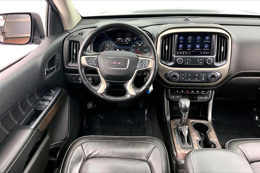 Denali Black Edition Package (1st & 2nd Rows All-Weather Floor Liners (LPO), 5 Rectangular Black Assist Steps (LPO), GMC Black Chrome Exhaust Tip (LPO), and Wheels: 20 Aluminum Low Gloss Black (LPO)), Driver Alert Package (Forward Collision Alert and Lane Departure Warning System), Preferred Equipment Group 4SD (5 Rectangular Chrome Assist Steps, Black Spray-On Bedliner w/GMC Logo, Heated Steering Wheel, Hitch Guidance, Polished Exhaust Tip, Tow/Haul Mode, and Ultrasonic Rear Parking Assist), Trailering Package, Canyon Denali, V6, 4WD, Bose Premium 7-Speaker Audio System Feature, 2 USB Data Ports, 3.42 Rear Axle Ratio, 4-Way Power Front Passenger Seat Adjuster, 4-Wheel Disc Brakes, 7 Speakers, ABS brakes, Air Conditioning, Alloy wheels, AM/FM radio: SiriusXM with 360L, Apple CarPlay/Android Auto, Auto-dimming Rear-View mirror, Automatic temperature control, Bumpers: body-color, Compass, Delay-off headlights, Driver 6-Way Power Seat Adjuster, Driver door bin, Driver vanity mirror, Dual front impact airbags, Dual front side impact airbags, Electronic Stability Control, Emergency communication system: OnStar and GMC Connected Services capable, Exterior Parking Camera Rear, Front anti-roll bar, Front Bucket Seats, Front Center Armrest, Front fog lights, Front License Plate Kit, Front reading lights, Front wheel independent suspension, Fully automatic headlights, Genuine wood console insert, Genuine wood door panel insert, HD Radio, Heated door mirrors, Heated steering wheel, Illuminated entry, Integrated Trailer Brake Controller, Low tire pressure warning, Navigation System, Not Equipped w/Rear Park Assist, Occupant sensing airbag, Outside temperature display, Overhead airbag, Overhead console, Panic alarm, Passenger door bin, Passenger vanity mirror, Perforated Leather-Appointed Seat Trim, Power door mirrors, Power Driver Lumbar Control Seat Adjuster, Power driver seat, Power Passenger Lumbar Control Seat Adjuster, Power passenger seat, Power steering, Power windows, Premium audio system: GMC Infotainment System, Radio data system, Radio: AM/FM w/8 Diagonal Multi-Touch Display Nav, Rear reading lights, Rear seat center armrest, Rear step bumper, Rear window defroster, Remote keyless entry, Security system, SiriusXM Radio, Speed control, Speed-sensing steering, Steering wheel mounted audio controls, Tachometer, Telescoping steering wheel, Tilt steering wheel, Traction control, Trip computer, Variably intermittent wipers, Wheel Locks (Set of 4) (LPO), Wheels: 20 x 8.5 Diamond Cut Machined Aluminum, and Wireless Charging for Compatible Cell Phones. Canyon Denali, V6, 4WD, 1st & 2nd Rows All-Weather Floor Liners (LPO), 5 Rectangular Black Assist Steps (LPO), 5 Rectangular Chrome Assist Steps, Black Spray-On Bedliner w/GMC Logo, Bose Premium 7-Speaker Audio System Feature, Denali Black Edition Package, Driver Alert Package, Forward Collision Alert, GMC Black Chrome Exhaust Tip (LPO), Heated Steering Wheel, Hitch Guidance, Lane Departure Warning System, Polished Exhaust Tip, Preferred Equipment Group 4SD, Tow/Haul Mode, Trailering Package, Ultrasonic Rear Parking Assist, Wheels: 20 Aluminum Low Gloss Black (LPO).