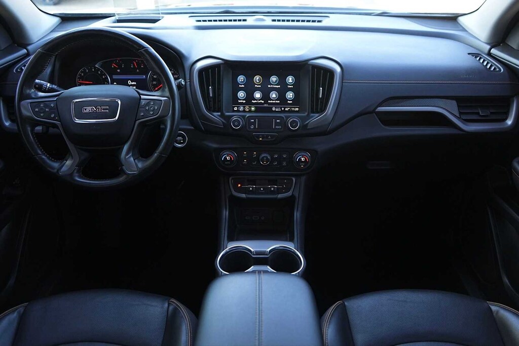 LOCAL TRADE, BLUETOOTH, CLEAN CARFAX, NON-SMOKER, CARFAX ONE OWNER, Service Records Available!, ** LEATHER SEATS, ** SUNROOF, ** TRAILER HITCH, ** HEATED SEATS, ** REARVIEW CAMERA, ** NAVIGATION SYSTEM, ** KEYLESS ENTRY, ** APPLE CARPLAY, ** REMOTE ENGINE START, ** BLUETOOTH, HANDS-FREE, ** BLIND SPOT ALERT, ** KEYLESS START, ** PREMIUM WHEELS, ** PREMIUM SOUND SYSTEM, ** ANDROID AUTO, ** LANE DEPARTURE WARNING, ** SATELLITE RADIO, ** STEERING WHEEL CONTROLS, ** ALARM SYSTEM, ** WIFI HOTSPOT, ** AUXILIARY AUDIO INPUT, ** LOCAL TRADE-IN, ** LOCALLY OWNED AND SERVICED, ** ALL WHEEL DRIVE, ** FOUR WHEEL DRIVE, ** BACK UP CAMERA, ** POWER TAILGATE, ** ALLOY WHEELS, Terrain AT4, 4D Sport Utility, 1.5L DOHC, 9-Speed Automatic, AWD, Ebony Twilight Metallic, Jet Black Leather, 2 USB Data Ports, 2 USB Data Ports w/SD Card Reader, 3 Years of OnStar & Connected Services Plan, 3.47 Axle Ratio, 4-Wheel Disc Brakes, 6 Speakers, 6-Speaker Audio System Feature, 6-Way Power Front Passenger Seat, 8-Way Power Driver Seat Adjuster, ABS brakes, Adaptive Cruise Control, Air Conditioning, Alloy wheels, AM/FM radio: SiriusXM, Auto High-beam Headlights, Auto-dimming Rear-View mirror, Automatic temperature control, Bluetoothî For Phone, Brake assist, Bumpers: body-color, Compass, Delay-off headlights, Driver & Front Passenger Heated Seats, Driver door bin, Driver vanity mirror, Dual front impact airbags, Dual front side impact airbags, Electronic Stability Control, Emergency communication system: OnStar Guidance, Four wheel independent suspension, Front & Rear Park Assist, Front anti-roll bar, Front Bucket Seats, Front Center Armrest, Front dual zone A/C, Front fog lights, Front Passenger 2-Way Power Lumbar, Front reading lights, Fully automatic headlights, Garage door transmitter, GMC Pro Safety Plus, HD Surround Vision, Head-Up Display, Heated door mirrors, Heated front seats, Heated steering wheel, Illuminated entry, Lane Change Alert w/Side Blind Zone Alert, Lane Departure Warning System, License Plate Front Mounting Package, Low tire pressure warning, Memory seat, Occupant sensing airbag, Outside temperature display, Overhead airbag, Overhead console, Panic alarm, Passenger door bin, Passenger vanity mirror, Perforated Leather-Appointed Seat Trim w/AT4 Logo, Power door mirrors, Power Driver Lumbar Control, Power driver seat, Power Liftgate, Power passenger seat, Power steering, Power windows, Preferred Equipment Group 4SC, Radio data system, Radio: GMC Infotainment Audio System w/8 Display, Rear anti-roll bar, Rear Cross-Traffic Alert, Rear Park Assist, Rear seat center armrest, Rear window defroster, Rear window wiper, Remote keyless entry, Roof rack: rails only, Safety Alert Seat, Security system, SiriusXM Radio, Speed control, Speed-sensing steering, Split folding rear seat, Spoiler, Steering wheel mounted audio controls, Tachometer, Tech Package, Telescoping steering wheel, Tilt steering wheel, Traction control, Trip computer, Turn signal indicator mirrors, Variably intermittent wipers, Wheels: 17 x 7 Gloss Black Aluminum, Wireless Apple CarPlay/Wireless Android Auto, Terrain AT4, 4D Sport Utility, 1.5L DOHC, 9-Speed Automatic, AWD, Ebony Twilight Metallic, Jet Black Leather.
