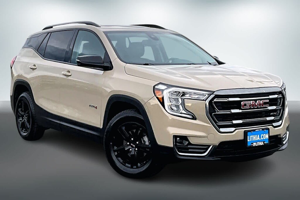 Lithia Chrysler Dodge Jeep Ram of Tri-Cities is pleased to offer this Desert Sand Metallic 2022 GMC Terrain AT4 for purchase, this vehicle is well equipped with many features including:GMC Pro Safety Plus (Adaptive Cruise Control, Lane Change Alert w/Side Blind Zone Alert, Rear Cross-Traffic Alert, Rear Park Assist, and Safety Alert Seat), Infotainment Package II (Premium 7-Speaker Bose Sound System w/Amplifier, Radio: GMC Infotainment Audio System w/Navigation, and SiriusXM Radio), License Plate Front Mounting Package, Preferred Equipment Group 4SC, AWD, 2 USB Data Ports, 2 USB Data Ports w/SD Card Reader, 3.47 Axle Ratio, 4-Wheel Disc Brakes, 6 Speakers, 6-Speaker Audio System Feature, 6-Way Power Front Passenger Seat, 8-Way Power Driver Seat Adjuster, ABS brakes, Air Conditioning, Alloy wheels, AM/FM radio: SiriusXM, Auto High-beam Headlights, Auto-dimming Rear-View mirror, Automatic temperature control, Bluetoothî For Phone, Brake assist, Bumpers: body-color, Compass, Delay-off headlights, Driver & Front Passenger Heated Seats, Driver door bin, Driver vanity mirror, Dual front impact airbags, Dual front side impact airbags, Electronic Stability Control, Emergency communication system: OnStar Guidance, Four wheel independent suspension, Front anti-roll bar, Front Bucket Seats, Front Center Armrest, Front dual zone A/C, Front fog lights, Front Passenger 2-Way Power Lumbar, Front reading lights, Fully automatic headlights, Garage door transmitter, Heated door mirrors, Heated front seats, Heated steering wheel, Illuminated entry, Lane Departure Warning System, Low tire pressure warning, Memory seat, Not Equipped w/Driver & Fr Pass Heated Seats, Occupant sensing airbag, Outside temperature display, Overhead airbag, Overhead console, Panic alarm, Passenger door bin, Passenger vanity mirror, Perforated Leather-Appointed Seat Trim w/AT4 Logo, Power door mirrors, Power Driver Lumbar Control, Power driver seat, Power Liftgate, Power passenger seat, Power steering, Power windows, Radio data system, Radio: GMC Infotainment Audio System w/8 Display, Rear anti-roll bar, Rear seat center armrest, Rear window defroster, Rear window wiper, Remote keyless entry, Roof rack: rails only, Security system, Skyscape Power Sunroof w/Power Sunscreen, Speed control, Speed-sensing steering, Split folding rear seat, Spoiler, Steering wheel mounted audio controls, Tachometer, Telescoping steering wheel, Tilt steering wheel, Traction control, Trip computer, Turn signal indicator mirrors, Variably intermittent wipers, Wheels: 17 x 7 Gloss Black Aluminum, and Wireless Apple CarPlay/Wireless Android Auto. 2022 GMC Terrain AT4 AWD.