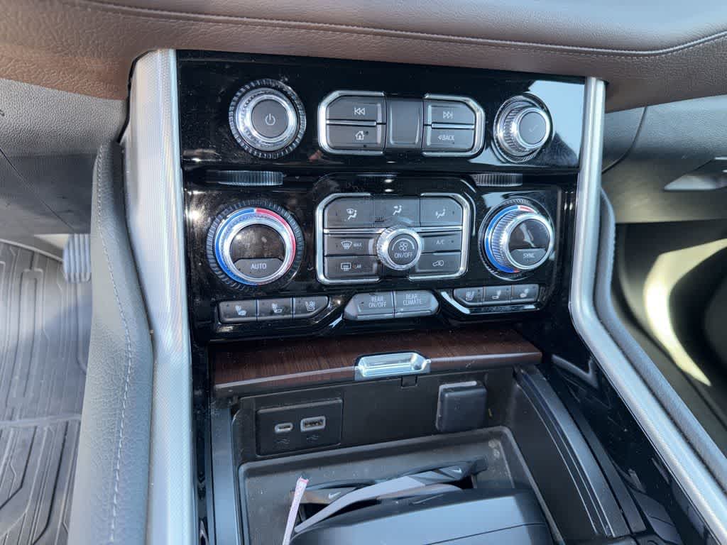 This Yukon Denali is nicely equipped with Preferred Equipment Group 5SA (15 Diagonal Multi-Color Head-Up Display, 2 Presets For Outside Rearview Mirrors, 3 Years of GMC Connected Services, 3rd Row 60/40 Power-Folding Split-Bench Seat, Automatic Stop/Start, Bright Front & Rear Door Sill Plates, Chrome Door Handles w/Body-Color Strip, Dual Exhaust System, Floor Console, Galvano Bodyside Moldings, Hands-Free Power Programmable Rear Liftgate, HD Surround Vision, Heated & Ventilated Driver & Front Passenger Seats, Heated 2nd Row Outboard Position Seats, Heated Driver & Front Passenger Seats, Heated Steering Wheel, Hill Descent Control, Inside Rear-View Auto-Dimming Mirror, Outside Heated Power-Adjustable Mirrors, Power Release 2nd Row Bucket Seats, Power Tilt & Telescopic Steering Column, Rear Pedestrian Alert, Safety Alert Seat, Start/Stop System Disable Button, Universal Home Remote, and Wireless Charging), 4WD, 14 Speakers, 3.23 Rear Axle Ratio, 3rd row seats: split-bench, 4-Wheel Disc Brakes, ABS brakes, Adaptive suspension, Air Conditioning, Alloy wheels, AM/FM radio: SiriusXM with 360L, AM/FM Stereo, Apple CarPlay/Android Auto, Auto High-beam Headlights, Auto-dimming door mirrors, Auto-dimming Rear-View mirror, Auto-leveling suspension, Automatic Emergency Braking, Automatic temperature control, Bodyside moldings, Bose 14-Speaker Surround w/CenterPoint, Brake assist, Brownstone/Jet Black Interior Trim, Bumpers: body-color, Compass, Delay-off headlights, Driver door bin, Driver vanity mirror, Dual front impact airbags, Dual front side impact airbags, Dual-Pane Panoramic Power Sunroof, Electronic Stability Control, Emergency communication system: OnStar and GMC Connected Services capable, Following Distance Indicator, Forward Collision Alert, Four wheel independent suspension, Front & Rear Park Assist, Front anti-roll bar, Front Bucket Seats, Front Center Armrest, Front dual zone A/C, Front fog lights, Front Pedestrian Braking, Front reading lights, Fully automatic headlights, Garage door transmitter, Heads-Up Display, Heated door mirrors, Heated front seats, Heated rear seats, Heated steering wheel, Illuminated entry, IntelliBeam Automatic High Beam On/Off, Lane Change Alert w/Side Blind Zone Alert, Lane Keep Assist w/Lane Departure Warning, Leather steering wheel, Low tire pressure warning, Magnetic Ride Control Suspension, Memory seat, Navigation System, Not Equipped w/4-Way Driver & Fr Pass Pwr Lumbar, Not Equipped w/Steering Column Lock, Occupant sensing airbag, Outside temperature display, Overhead airbag, Overhead console, Panic alarm, Passenger door bin, Passenger vanity mirror, Perforated Leather Seating Surfaces, Power door mirrors, Power driver seat, Power Liftgate, Power passenger seat, Power steering, Power windows, Power-Retractable Assist Steps, Rain sensing wipers, Rear air conditioning, Rear anti-roll bar, Rear Cross Traffic Alert, Rear reading lights, Rear window defroster, Rear window wiper, Remote keyless entry, Roof rack: rails only, Security system, SiriusXM w/360L, Speed control, Speed-sensing steering, Split folding rear seat, Spoiler, Steering wheel memory, Steering wheel mounted audio controls, Tachometer, Telescoping steering wheel, Tilt steering wheel, Traction control, Trip computer, Turn signal indicator mirrors, Variably intermittent wipers, Ventilated front seats, Vertical Cargo Net (LPO), Voltmeter, Wheels: 20 x 9 6-Spoke Polished Aluminum, Wheels: 22 Multi-Spoke Gloss Black (LPO), and Wheels: 22 x 9 Steel Interim (LPO). Price does not include licensing costs, registration fees, taxes and dealer doc fee of $899.50 which are to be paid by the consumer.