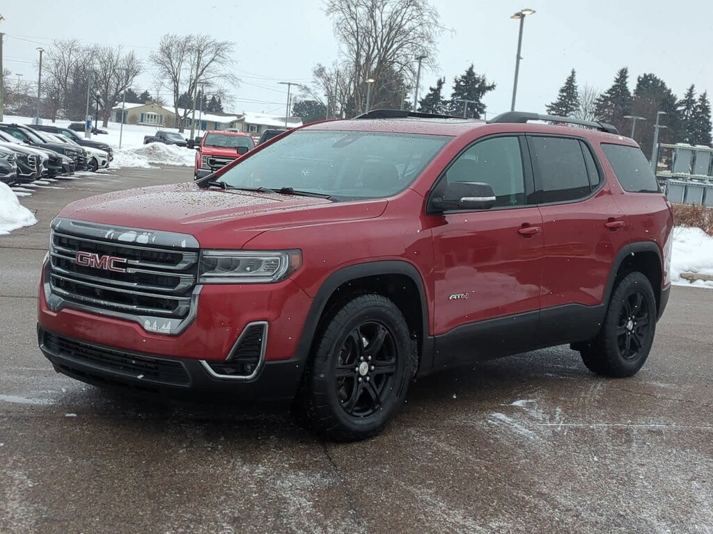 2023 GMC Acadia AT4 Volcanic Red Tintcoat AWD AWD, Jet Black Leather.