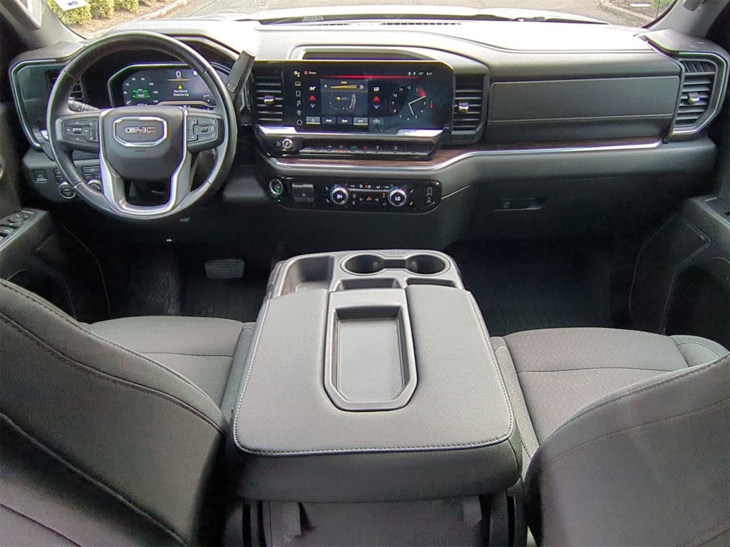 10-Speed Automatic, 4WD, Black Cloth, 10-Way Power Driver Seat Adjuster w/Lumbar, 120-Volt Bed Mounted Power Outlet, 120-Volt Instrument Panel Power Outlet, 2 Charge/Data USB Ports, 2 Type-C Charge-Only Rear USB Ports, 220 Amp Alternator, 3.42 Rear Axle Ratio, 4-Way Manual Passenger Seat Adjuster, 4-Wheel Disc Brakes, 6 Speakers, 6-Speaker Audio System Feature, ABS brakes, Air Conditioning, Alloy wheels, AM/FM radio, Apple CarPlay/Android Auto, Auto High-beam Headlights, Auto-Locking Rear Differential, Automatic Emergency Braking, Automatic temperature control, Brake assist, Buckle to Drive, Bumpers: chrome, Chrome Header w/Medium Silver Grille Insert Bars, Cloth Seat Trim, Color-Keyed Carpeting Floor Covering, Compass, Deep-Tinted Glass, Delay-off headlights, Driver door bin, Driver vanity mirror, Dual front impact airbags, Dual front side impact airbags, Dual-Zone Automatic Climate Control, Electric Rear-Window Defogger, Electrical Steering Column Lock, Electronic Stability Control, Emergency communication system: OnStar and GMC connected services capable, Following Distance Indicator, Forward Collision Alert, Front 40/20/40 Split-Bench Seat, Front anti-roll bar, Front Center Armrest w/Storage, Front dual zone A/C, Front Frame-Mounted Black Recovery Hooks, Front Pedestrian Braking, Front reading lights, Front Rubberized-Vinyl Floor Mats, Front wheel independent suspension, Fully automatic headlights, GMC Connected Access Capable, HD Rear Vision Camera, Heated door mirrors, Heated Driver & Front Outboard Passenger Seating, Heated front seats, Heated steering wheel, Hitch Guidance, Illuminated entry, IntelliBeam Automatic High Beam On/Off, Keyless Open & Start, Lane Keep Assist w/Lane Departure Warning, LED Cargo Area Lighting, Low tire pressure warning, Manual Tilt-Wheel & Telescoping Steering Column, Navigation System, Occupant sensing airbag, OnStar & GMC Connected Services Capable, Outside temperature display, Overhead airbag, Overhead console, Panic alarm, Passenger door bin, Passenger vanity mirror, Power Door Locks, Power door mirrors, Power driver seat, Power Front Windows w/Driver Express Up/Down, Power Front Windows w/Passenger Express Down, Power Rear Windows w/Express Down, Power steering, Power windows, Premium audio system: GMC Infotainment System, Push Button Start, Radio data system, Radio: Premium GMC Infotainment Audio System, Rear reading lights, Rear Rubberized-Vinyl Floor Mats, Rear step bumper, Rear window defroster, Remote keyless entry, Remote Start Package, Remote Vehicle Starter System, Security system, SiriusXM w/360L, SLE Convenience Package, SLE Value Package, Speed control, Speed-sensing steering, Split folding rear seat, Standard Suspension Package, Steering Wheel Audio Controls, Steering wheel mounted audio controls, Tachometer, Telescoping steering wheel, Theft Deterrent System (Unauthorized Entry), Tilt steering wheel, Traction control, Trailering Package, Trip computer, Variably intermittent wipers, Voltmeter, Wheels: 17 x 8 Bright Silver Painted Aluminum, Wi-Fi Hotspot Capable, Wireless Phone Projection, 10-Speed Automatic, 4WD, Black Cloth.