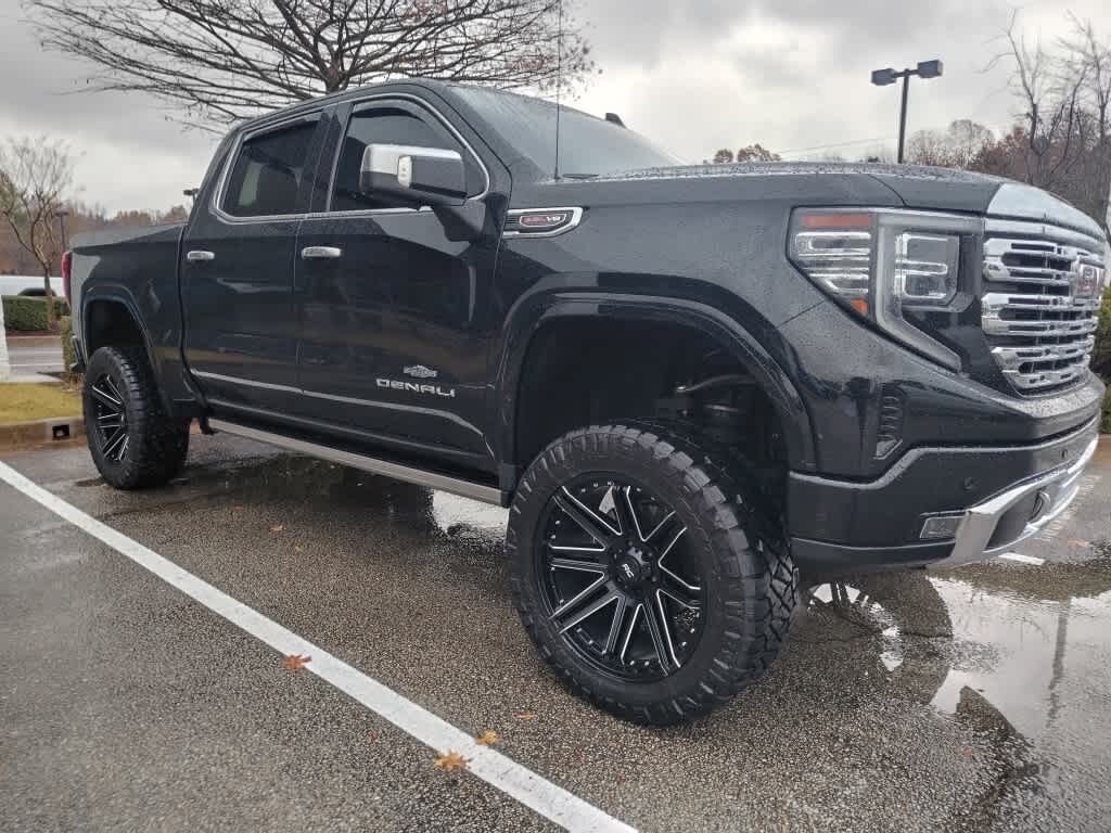 This Sierra 1500 Denali is nicely equipped with Cargo Convenience Package (Console-Mounted Safe (LPO) and Rear Underseat Storage (LPO)), Preferred Equipment Group 5SA (120-Volt Bed Mounted Power Outlet, 120-Volt Instrument Panel Power Outlet, 170 Amp Alternator, 2 Charge/Data USB Ports Inside Center Console, 2 Type-C Charge-Only Rear USB Ports, 2 USB Ports, Auto-Locking Rear Differential, Auxiliary External Transmission Oil Cooler, Bed View Camera, Chrome Header w/Signature Denali Chrome Grille, Chrome Recovery Hooks, Chrome Wheel To Wheel Assist Steps, Color-Keyed Carpeting Floor Covering, Compass, Deep-Tinted Glass, Electric Rear-Window Defogger, Electrical Steering Column Lock, Floor-Mounted Center Console, Front Rainsensing Wipers, GMC Connected Access Capable, HD Surround Vision, Heated 2nd Row Outboard Seats, Heated Driver & Front Outboard Passenger Seating, Heavy-Duty Air Filter, Hill Descent Control, Hitch Guidance w/Hitch View, In-Vehicle Trailering App, Integrated Trailer Brake Controller, Keyless Open & Start, LED Cargo Area Lighting, OnStar & GMC Connected Services Capable, Perimeter Lighting, Power Door Locks, Power Front Passenger Windows w/Express Up/Down, Power Front Windows w/Driver Express Up/Down, Power Rake & Telescoping Steering Column, Power Rear Windows w/Express Down, Power Sliding Rear Window w/Rear Defogger, Premium Bose 7-Speaker Sound System, Push Button Start, Rear Cross Traffic Braking, Rear Pedestrian Detection, Rear Wheelhouse Liners, Remote Vehicle Starter System, SiriusXM w/360L, Spray-On Pickup Bed Liner w/Denali Logo, Steering Wheel Audio Controls, Theft Deterrent System (Unauthorized Entry), Trailer Camera Provisions, Trailer Side Blind Zone Alert, Ultrasonic Front & Rear Park Assist, Universal Home Remote, Ventilated Driver & Front Passenger Seats, Wi-Fi Hotspot Capable, Wireless Charging, and Wireless Phone Projection), Trailering Package (Hitch Guidance), 10-Speed Automatic, 4WD, Jet Black Leather, 10-Way Power Driver Seat Adjuster w/Lumbar, 10-Way Power Passenger Seat Adjuster w/Lumbar, 3.23 Rear Axle Ratio, 4-Wheel Disc Brakes, 7 Speakers, ABS brakes, Adaptive suspension, Air Conditioning, Alloy wheels, AM/FM radio, Apple CarPlay/Android Auto, Auto High-beam Headlights, Auto-dimming door mirrors, Auto-dimming Rear-View mirror, Automatic Emergency Braking, Automatic temperature control, Body Color Wheel Arch Moldings (LPO), Brake assist, Buckle to Drive, Bumpers: body-color, Delay-off headlights, Denali Premium Suspension w/Adaptive Ride Control, Driver door bin, Driver Memory, Driver vanity mirror, Dual front impact airbags, Dual front side impact airbags, Electronic Stability Control, Emergency communication system: OnStar and GMC connected services capable, Following Distance Indicator, Forge Perforated Leather Seat Trim, Forward Collision Alert, Front anti-roll bar, Front Bucket Seats, Front Center Armrest, Front dual zone A/C, Front fog lights, Front Pedestrian Braking, Front reading lights, Front wheel independent suspension, Fully automatic headlights, Garage door transmitter, Genuine wood console insert, Genuine wood dashboard insert, Genuine wood door panel insert, GMC MultiPro Power Steps, GMC MultiPro Tailgate Step Lights (LPO), Heated door mirrors, Heated front seats, Heated rear seats, Heated steering wheel, Illuminated entry, IntelliBeam Automatic High Beam On/Off, Lane Keep Assist w/Lane Departure Warning, Low tire pressure warning, Memory seat, MultiPro Audio System by Kicker (LPO), Navigation System, Not Equipped w/Steering Column Lock, Not Equipped w/Wireless Charging, Occupant sensing airbag, Outside temperature display, Overhead airbag, Overhead console, Panic alarm, Passenger door bin, Passenger vanity mirror, Power door mirrors, Power driver seat, Power passenger seat, Power steering, Power Sunr