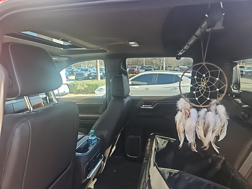 This Sierra 1500 Denali is nicely equipped with Cargo Convenience Package (Console-Mounted Safe (LPO) and Rear Underseat Storage (LPO)), Denali Reserve Package (GMC MultiPro Power Steps, Power Sunroof, Wheel Locks (Set of 4) (LPO), and Wheels: 22 x 9 Painted Aluminum), Preferred Equipment Group 5SA (120-Volt Bed Mounted Power Outlet, 120-Volt Instrument Panel Power Outlet, 170 Amp Alternator, 2 Charge/Data USB Ports Inside Center Console, 2 Type-C Charge-Only Rear USB Ports, 2 USB Ports, Auto-Locking Rear Differential, Auxiliary External Transmission Oil Cooler, Bed View Camera, Chrome Header w/Signature Denali Chrome Grille, Chrome Recovery Hooks, Chrome Wheel To Wheel Assist Steps, Color-Keyed Carpeting Floor Covering, Compass, Deep-Tinted Glass, Electric Rear-Window Defogger, Electrical Steering Column Lock, Floor-Mounted Center Console, Front Rainsensing Wipers, GMC Connected Access Capable, HD Surround Vision, Heated 2nd Row Outboard Seats, Heated Driver & Front Outboard Passenger Seating, Heavy-Duty Air Filter, Hill Descent Control, Hitch Guidance w/Hitch View, In-Vehicle Trailering App, Integrated Trailer Brake Controller, Keyless Open & Start, LED Cargo Area Lighting, OnStar & GMC Connected Services Capable, Perimeter Lighting, Power Door Locks, Power Front Passenger Windows w/Express Up/Down, Power Front Windows w/Driver Express Up/Down, Power Rake & Telescoping Steering Column, Power Rear Windows w/Express Down, Power Sliding Rear Window w/Rear Defogger, Premium Bose 7-Speaker Sound System, Push Button Start, Rear Cross Traffic Braking, Rear Pedestrian Detection, Rear Wheelhouse Liners, Remote Vehicle Starter System, SiriusXM w/360L, Spray-On Pickup Bed Liner w/Denali Logo, Steering Wheel Audio Controls, Theft Deterrent System (Unauthorized Entry), Trailer Camera Provisions, Trailer Side Blind Zone Alert, Ultrasonic Front & Rear Park Assist, Universal Home Remote, Ventilated Driver & Front Passenger Seats, Wi-Fi Hotspot Capable, Wireless Charging, and Wireless Phone Projection), Technology Package (Adaptive Cruise Control, Multicolor 15 Diagonal Head-Up Display, and Rear Camera Mirror), Trailering Package (Hitch Guidance), 10-Speed Automatic, 4WD, Atmosphere/Brownstone Leather, 10-Way Power Driver Seat Adjuster w/Lumbar, 10-Way Power Passenger Seat Adjuster w/Lumbar, 3.23 Rear Axle Ratio, 4-Wheel Disc Brakes, 7 Speakers, ABS brakes, Adaptive suspension, Air Conditioning, Alloy wheels, AM/FM radio, Apple CarPlay/Android Auto, Auto High-beam Headlights, Auto-dimming door mirrors, Auto-dimming Rear-View mirror, Automatic Emergency Braking, Automatic temperature control, Body Color Wheel Arch Moldings (LPO), Brake assist, Buckle to Drive, Bumpers: body-color, Delay-off headlights, Denali Premium Suspension w/Adaptive Ride Control, Driver door bin, Driver Memory, Driver vanity mirror, Dual front impact airbags, Dual front side impact airbags, Electronic Stability Control, Emergency communication system: OnStar and GMC connected services capable, Following Distance Indicator, Forge Perforated Leather Seat Trim, Forward Collision Alert, Front anti-roll bar, Front Bucket Seats, Front Center Armrest, Front dual zone A/C, Front fog lights, Front Pedestrian Braking, Front reading lights, Front wheel independent suspension, Fully automatic headlights, Garage door transmitter, Genuine wood console insert, Genuine wood dashboard insert, Genuine wood door panel insert, Heated door mirrors, Heated front seats, Heated rear seats, Heated steering wheel, Illuminated entry, IntelliBeam Automatic High Beam On/Off, Lane Keep Assist w/Lane Departure Warning, Low tire pressure warning, Memory seat, Navigation System, Not Equipped w/Steering Column Lock, Occupant sensing airbag, Outside temperature display, Overhead airbag, Overhead