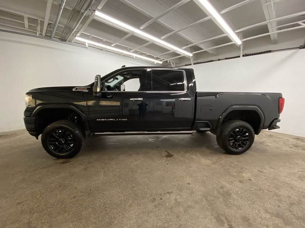 ENGINE, DURAMAX 6.6L TURBO-DIESEL V8, B20-DIESEL COMPATIBLE (445 hp [332 kW] @ 2800 rpm, 910 lb-ft of torque [1220 Nm] @ 1600 rpm) (Includes (K05) engine block heater.), DENALI BLACK DIAMOND EDITION includes (TRO) Auxiliary Trailer Camera, (PDV) MultiPro Audio System by Kicker, (BKF) premium front floor liners with removable carpet insert, (BKE) premium rear floor liners with removable carpet insert, (PTT) trailer tire pressure monitor sensors, (BRS) power-retractable assist steps with LED perimeter lighting and (RTJ) 20 (50.8 cm) high gloss Black painted aluminum wheels, TECHNOLOGY PACKAGE includes (DRZ) Rear Camera Mirror and (UV6) Multi-color 15 Diagonal Head-Up Display, GOOSENECK / 5TH WHEEL PREP PACKAGE -- Hitch platform to accept Gooseneck or 5th Wheel hitch. Includes hitch platform with tray to accept ball, stamped bed holes with removable caps installed and bed mounted 7-pin trailer harness (similar to UY2 harness). AUDIO SYSTEM, PREMIUM GMC INFOTAINMENT SYSTEM WITH NAVIGATION AND 8 DIAGONAL COLOR TOUCH-SCREEN includes multi-touch display, AM/FM stereo, Bluetooth® streaming audio for music and most phones; featuring wireless Android Auto® and Apple CarPlay® capability for compatible phones, advanced voice recognition, in-vehicle apps, personalized profiles for infotainment and vehicle settings. Includes greater memory. (STD) (Includes (PZ8) Hitch Guidance with hitch view.), TRANSMISSION, ALLISON 10-SPEED AUTOMATIC. Privacy Glass, Keyless Entry, Steering Wheel Controls, Heated Mirrors, Electronic Stability Control.