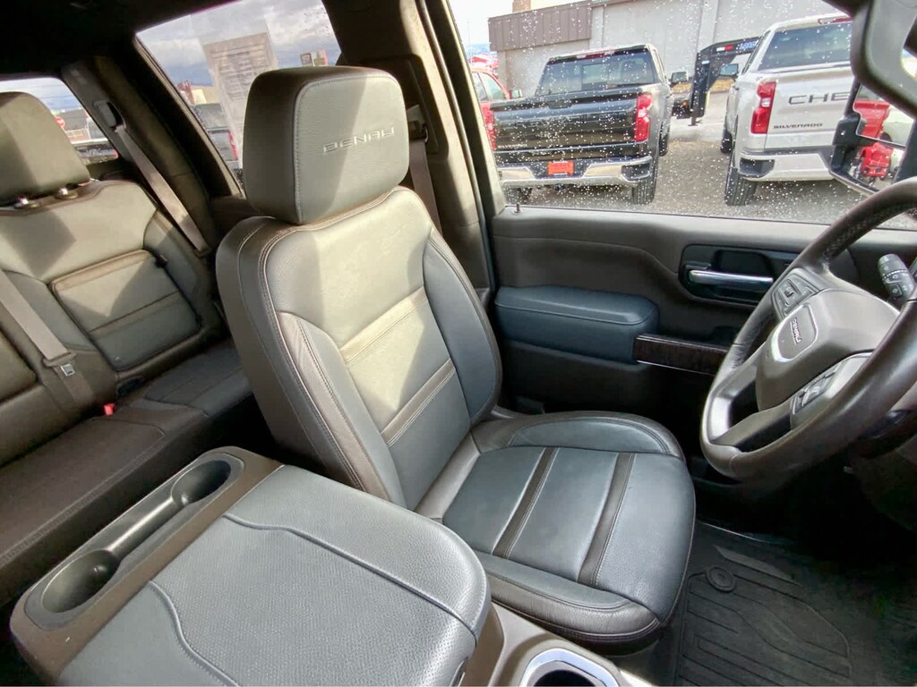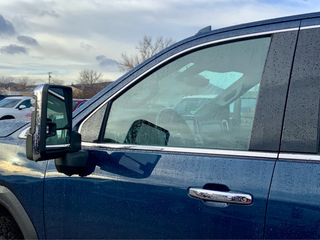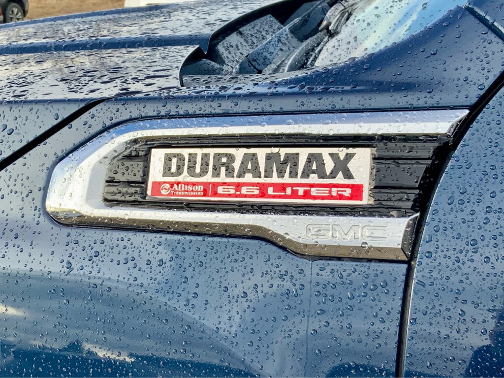 (445 hp [332 kW] @ 2800 rpm, 910 lb-ft of torque [1220 Nm] @ 1600 rpm) (Includes (K05) engine block heater.), includes (DRZ) Rear Camera Mirror and (UV6) Multi-color 15" Diagonal Head-Up Display, (dealer-installed), (dealer-installed), includes multi-touch display, AM/FM stereo, Bluetooth® streaming audio for music and most phones; featuring wireless Android Auto® and Apple CarPlay® capability for compatible phones, advanced voice recognition, in-vehicle apps, personalized profiles for infotainment and vehicle settings. Includes greater memory. (STD) (Includes (PZ8) Hitch Guidance with hitch view.), TRANSMISSION, ALLISON 10-SPEED AUTOMATIC. GMC Denali with Pacific Blue Metallic exterior and Dark Walnut/Dark Ash Grey interior features a 8 Cylinder Engine with 401 HP at 5200 RPM*.