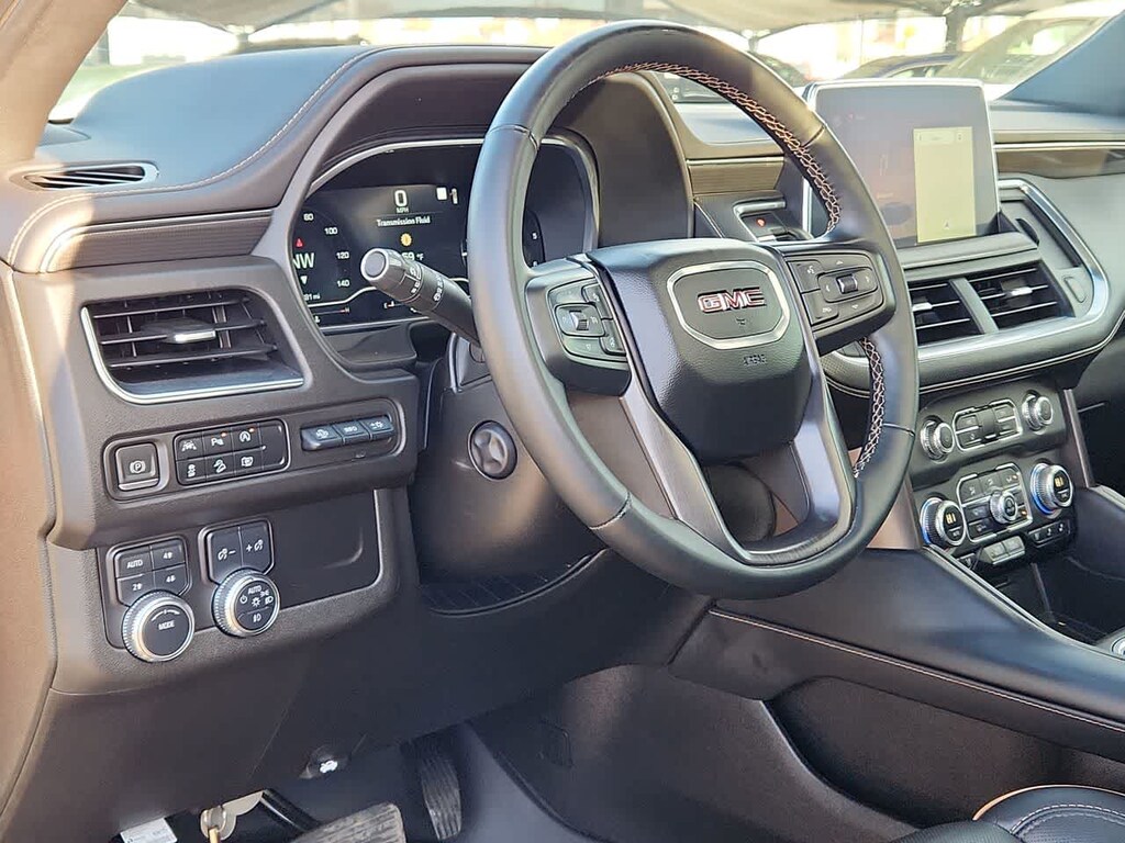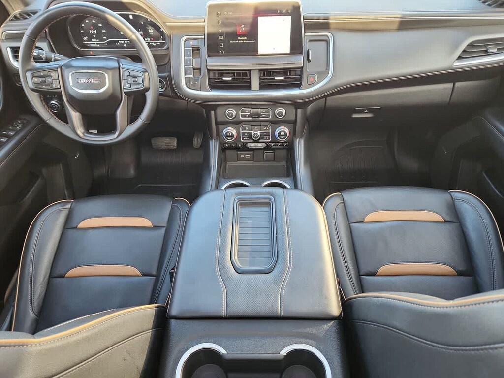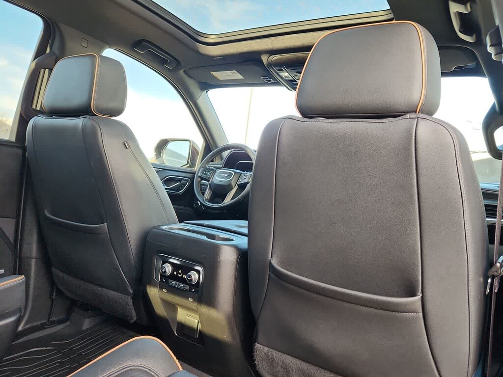 ENGINE, 6.2L ECOTEC3 V8 with Dynamic Fuel Management, Direct Injection and Variable Valve Timing, includes aluminum block construction (420 hp [313 kW] @ 5600 rpm, 460 lb-ft of torque [624 Nm] @ 4100 rpm), ASSIST STEPS, POWER-RETRACTABLE WITH PERIMETER LIGHTING, SUNROOF, POWER PANORAMIC, DUAL-PANE tilt-sliding with express-open and close and power sunshade, TECHNOLOGY PACKAGE includes (UV2) HD Surround Vision, (UV6) Head-Up Display and (UKK) Rear Pedestrian Alert, SEATS, SECOND ROW BUCKET, POWER RELEASE, AUDIO SYSTEM, 10.2 DIAGONAL PREMIUM GMC INFOTAINMENT SYSTEM WITH GOOGLE BUILT-IN includes color touch-screen, multi-touch display, AM/FM stereo, Bluetooth® streaming audio for music and most phones; featuring wireless Android Auto® and Apple CarPlay® capability for compatible phones, advanced voice recognition, in-vehicle apps, personalized profiles for infotainment and vehicle settings (STD), TRANSMISSION, 10-SPEED AUTOMATIC electronically controlled with overdrive, includes Traction Select System including tow/haul (STD). GMC AT4 with Redwood Metallic exterior and Jet Black interior features a 8 Cylinder Engine with 420 HP at 5600 RPM*.