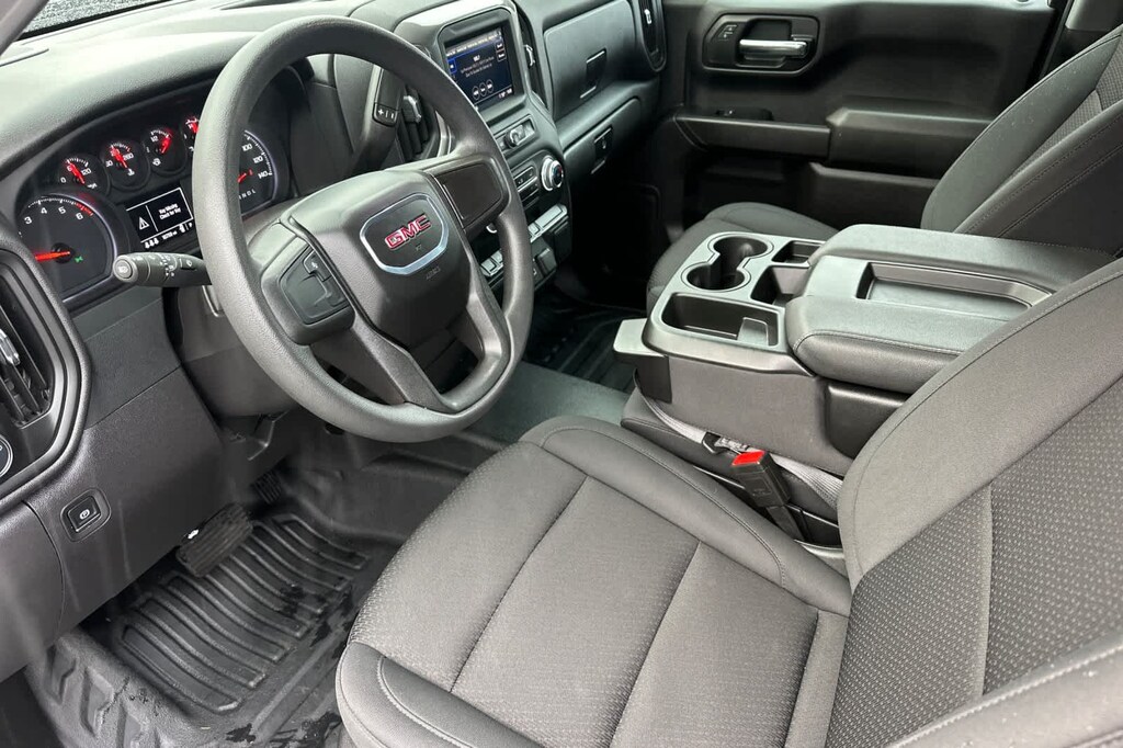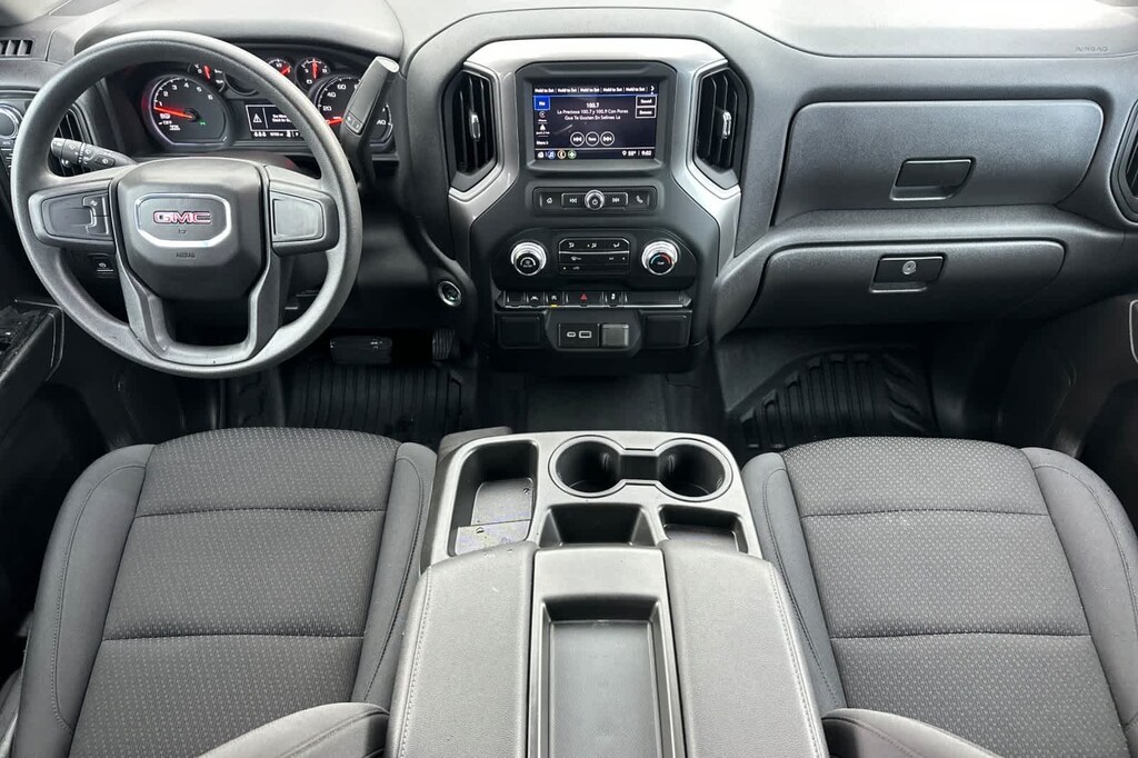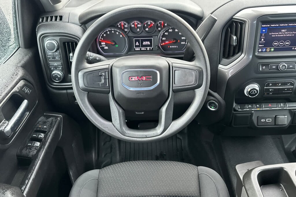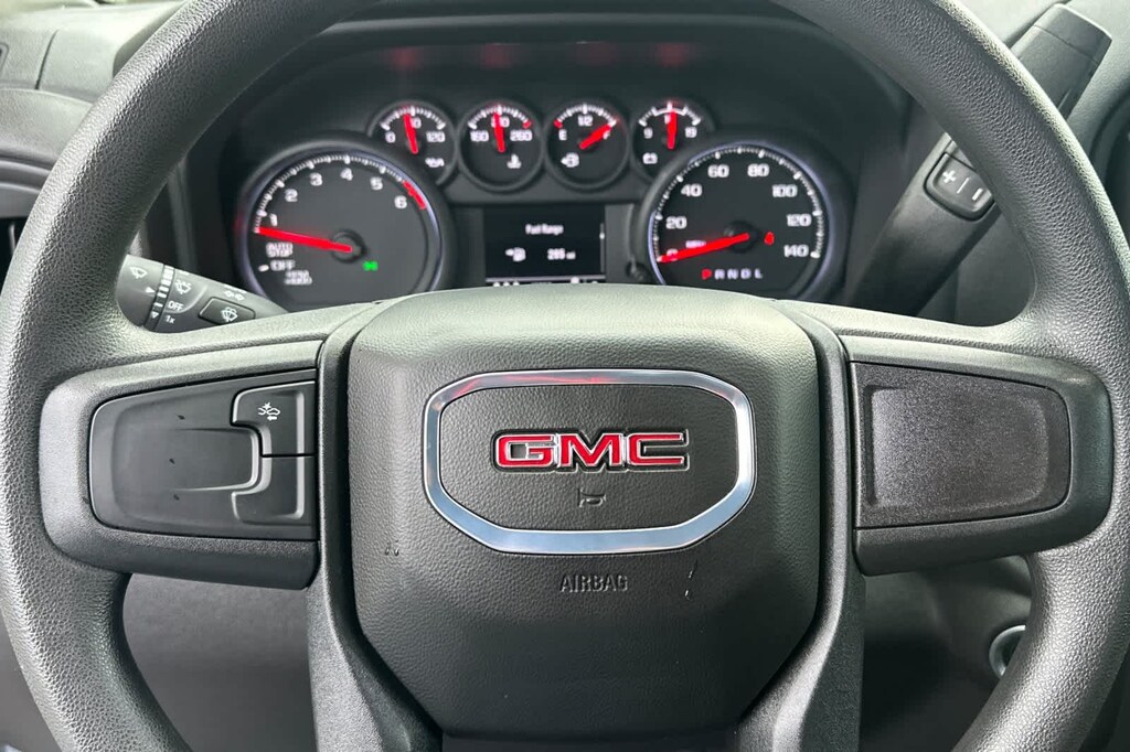 ENGINE, 5.3L ECOTEC3 V8 (355 hp [265 kW] @ 5600 rpm, 383 lb-ft of torque [518 Nm] @ 4100 rpm); featuring Dynamic Fuel Management (Includes (KW7) 170-amp alternator and (MHT) 10-speed automatic transmission. AUTO-LOCKING REAR DIFFERENTIAL, AUDIO SYSTEM, GMC INFOTAINMENT SYSTEM WITH 7 DIAGONAL COLOR TOUCH-SCREEN, AM/FM STEREO with seek-and-scan and digital clock, includes Bluetooth® streaming audio for music and select phones; featuring wireless Android Auto® and Apple CarPlay® capability for compatible phones (STD), TRANSMISSION, 10-SPEED AUTOMATIC, (COLUMN SHIFTER) ELECTRONICALLY CONTROLLED with overdrive and tow/haul mode. Includes Cruise Grade Braking and Powertrain Grade Braking. GMC Pro with Sterling Metallic exterior and Jet Black interior features a 8 Cylinder Engine with 310 HP at 5600 RPM*.