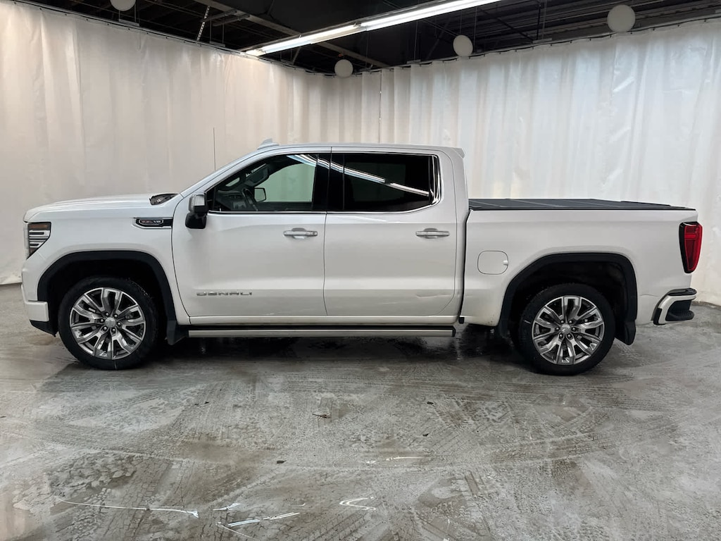 LPO wheels will come with 4 steel 22 wheels from the factory with alignment specs set to 22 LPO wheel selected (dealer-installed) (Beginning with production starting on August 1, 2023, certain vehicles will no longer come with Black wheel lugs and locks and will instead come with bright finish lugs and locks.), (420 hp [313 kW] @ 5600 rpm, 460 lb-ft of torque [624 Nm] @ 4100 rpm); featuring Dynamic Fuel Management, includes (DRZ) Rear Camera Mirror and (UV6) Multicolor 15 Diagonal Head-Up Display, with rearward articulating, (providing bed access). Foot activated running side board. Bluetooth® streaming audio for music and most phones; featuring wireless Android Auto® and Apple CarPlay® capability for compatible phones (STD), with overdrive, and tow/haul mode and steering column paddle shifters. Includes Cruise Grade Braking and Powertrain Grade Braking (STD). GMC Denali with White Frost Tricoat exterior and Jet Black interior features a 8 Cylinder Engine with 420 HP at 5600 RPM*.