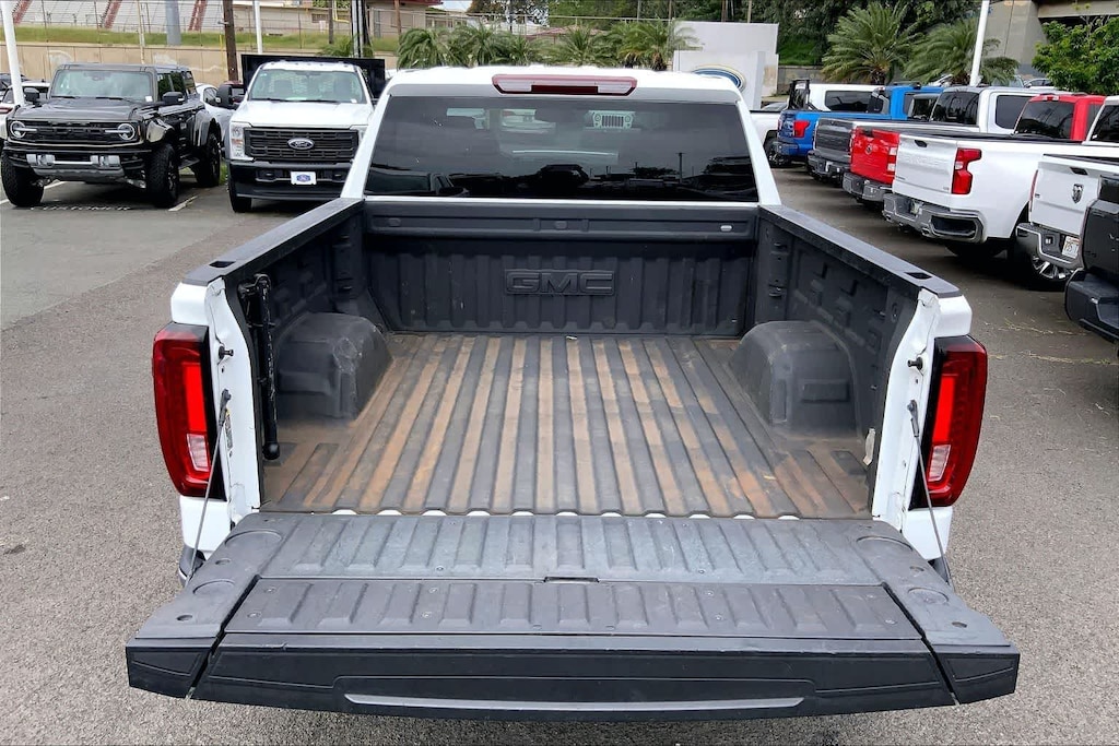 HONOLULU FORD! 808-532-1700, *DONT WAIT! CALL NOW!!, FINANCING AVAILABLE, GUARANTEED APPROVALS! LOW PAYMENTS! GREAT INTEREST RATES!, ***FORD CERTIFIED VEHICLE!! 172 POINT INSPECTION, OIL CHANGE, NEW WIPERS, NEW AIR FILTERS, FULL DET, WE SHIP TO NEIGHBOR ISLANDS!, 172 POINT INSPECTION BY FACTORY TRAINED TECHNICIANS!, ONE OWNER!!, ACCIDENT FREE CARFAX!, *LEATHER SEATS*, *HEATED SEATS, EXTRA CLEAN, WELL TAKEN CARE OF, EXCELLENT FUEL ECONOMY, OFF ROAD WHEELS AND TIRES, PREMIUM WHEELS, EXCELLENT CONDITION!, EXCELLENT SERVICE HISTORY!!, READY FOR YOU TO DRIVE HOME TODAY!, ADAPTIVE CRUISE CONTROL, PARKING SENSORS, UPGRADED WHEELS, TOUCH SCREEN, 10-Speed Automatic, 4WD, Black Leather, 10-Way Power Driver Seat Adjuster w/Lumbar, 10-Way Power Passenger Seat Adjuster w/Lumbar, 120-Volt Bed Mounted Power Outlet, 120-Volt Interior Power Outlet, 170 Amp Alternator, 2 Charge/Data USB Ports, 2 Type-C Charge-Only Rear USB Ports, 3.23 Rear Axle Ratio, 4-Wheel Disc Brakes, 6 Speakers, 6-Speaker Audio System Feature, ABS brakes, Air Conditioning, Alloy wheels, AM/FM radio: SiriusXM with 360L, Apple CarPlay/Android Auto, Auto High-beam Headlights, Auto-dimming door mirrors, Auto-dimming Rear-View mirror, Auto-Locking Rear Differential, Automatic Emergency Braking, Automatic temperature control, Auxiliary External Transmission Oil Cooler, Brake assist, Buckle to Drive, Bumpers: chrome, Chrome Header & Chrome Grille Insert Bars, Color-Keyed Carpeting Floor Covering, Compass, Deep-Tinted Glass, Delay-off headlights, Deleted 3 Years of OnStar Remote Access, Driver door bin, Driver Memory, Driver vanity mirror, Dual front impact airbags, Dual front side impact airbags, Electric Rear-Window Defogger, Electronic Stability Control, Following Distance Indicator, Forward Collision Alert, Front 40/20/40 Split-Bench Seat, Front anti-roll bar, Front Center Armrest w/Storage, Front dual zone A/C, Front fog lights, Front Frame-Mounted Black Recovery Hooks, Front License Plate Kit, Front Pedestrian Braking, Front Rain-Sensing Wipers, Front reading lights, Front wheel independent suspension, Fully automatic headlights, GMC Connected Access Capable, HD Rear Vision Camera, Heated door mirrors, Heated Driver & Front Outboard Passenger Seating, Heated front seats, Heated steering wheel, Hitch Guidance, Illuminated entry, IntelliBeam Automatic High Beam On/Off, Keyless Open & Start, Lane Keep Assist w/Lane Departure Warning, LED Cargo Area Lighting, Low tire pressure warning, Manual Tilt-Wheel & Telescoping Steering Column, Memory seat, Navigation System, Occupant sensing airbag, OnStar & GMC Connected Services Capable, Outside temperature display, Overhead airbag, Overhead console, Panic alarm, Passenger door bin, Passenger vanity mirror, Perf Leather-Appointed Front Outboard Seat Trim, Perimeter Lighting, Power Door Locks, Power door mirrors, Power driver seat, Power Front Passenger Windows w/Express Up/Down, Power Front Windows w/Driver Express Up/Down, Power passenger seat, Power Rear Windows w/Express Down, Power steering, Power windows, Preferred Equipment Group 4SA, Premium audio system: GMC Infotainment System, Push Button Start, Radio data system, Radio: Premium GMC Infotainment Audio System, Rain sensing wipers, Rear reading lights, Rear seat center armrest, Rear step bumper, Rear Wheelhouse Liners, Rear window defroster, Remote keyless entry, Remote Vehicle Starter System, Security system, SiriusXM w/360L, Speed control, Speed-sensing steering, Split folding rear seat, Spray-On Pickup Bedliner w/GMC Logo, Standard Suspension Package, Steering Wheel Audio Controls, Steering wheel mounted audio controls, Tachometer, Telescoping steering wheel, Theft Deterrent System (Unauthorized Entry), Tilt steering wheel, Traction control, Trailering Package, Trip computer, Variably intermittent wipers, Voltmeter, Wheels: 18 x 8.5 6-Spoke Machined Aluminum, Wi-Fi Hotspot Capable, Wireless Apple CarPlay/Wireless Android Auto, 4-Wheel Drive/All-Wheel Drive, 10-Speed Automa