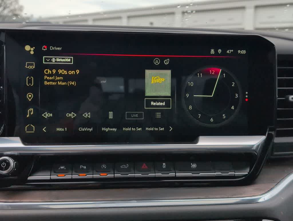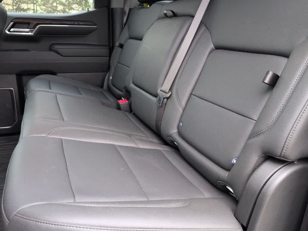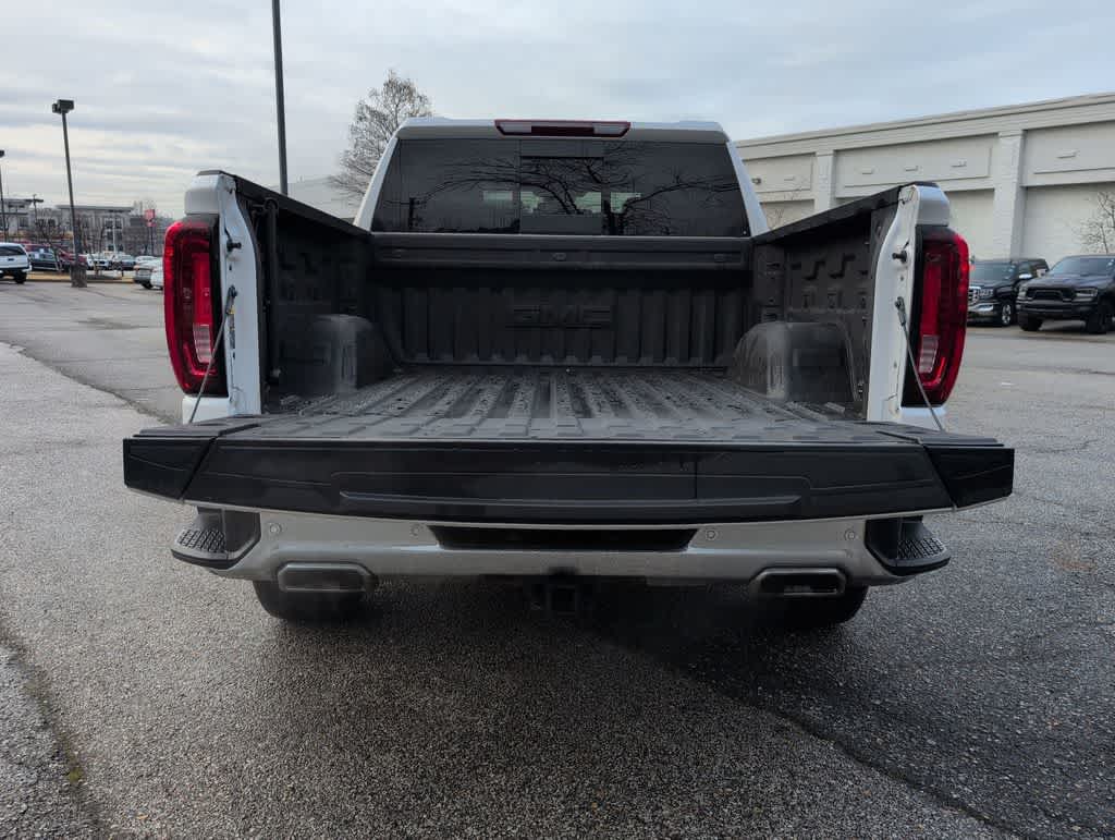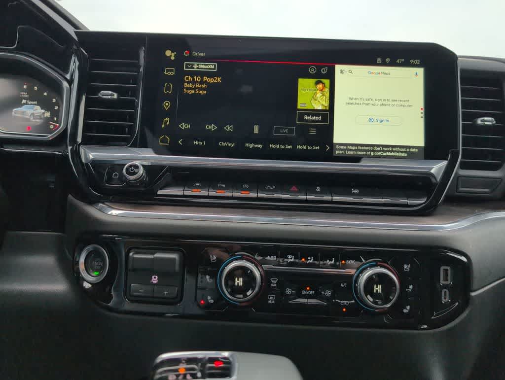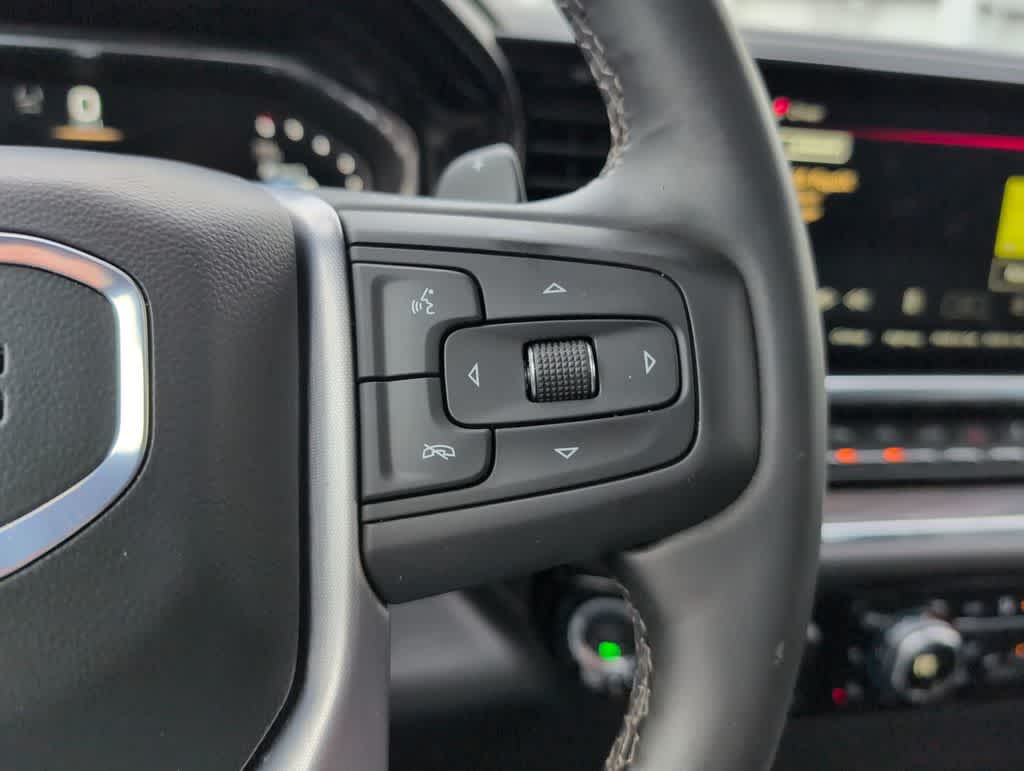 This Sierra 1500 SLT is nicely equipped with High Capacity Suspension Package, Preferred Equipment Group 4SA (120-Volt Bed Mounted Power Outlet, 120-Volt Interior Power Outlet, 170 Amp Alternator, 2 Charge/Data USB Ports, 2 Type-C Charge-Only Rear USB Ports, 6-Speaker Audio System Feature, Auto-Locking Rear Differential, Auxiliary External Transmission Oil Cooler, Chrome Header & Chrome Grille Insert Bars, Color-Keyed Carpeting Floor Covering, Deep-Tinted Glass, Electric Rear-Window Defogger, Front Frame-Mounted Black Recovery Hooks, Front Rain-Sensing Wipers, GMC Connected Access Capable, HD Rear Vision Camera, Keyless Open & Start, LED Cargo Area Lighting, Manual Tilt-Wheel & Telescoping Steering Column, OnStar & GMC Connected Services Capable, Perimeter Lighting, Power Door Locks, Power Front Passenger Windows w/Express Up/Down, Power Front Windows w/Driver Express Up/Down, Power Rear Windows w/Express Down, Push Button Start, Rear Wheelhouse Liners, Remote Vehicle Starter System, SiriusXM w/360L, Steering Wheel Audio Controls, Theft Deterrent System (Unauthorized Entry), and Wi-Fi Hotspot Capable), ProGrade Trailering System (Hitch View, In-Vehicle Trailering System App, and Integrated Trailer Brake Controller), Sierra Safety Plus Package (HD Surround Vision, Rear Cross Traffic Braking, Rear Pedestrian Detection, Safety Alert Seat, Trailer Camera Provisions, Trailer Side Blind Zone Alert, and Ultrasonic Front & Rear Park Assist), SLT Convenience Package (2 Charge/Data USB Ports Inside Center Console, Electronic Precision Shift, Floor-Mounted Center Console, Front Bucket Seats, Power Rake & Telescoping Steering Column, Premium Bose 7-Speaker Sound System, Ventilated Driver & Front Passenger Seats, and Wireless Charging), SLT Preferred Package (Adaptive Cruise Control, Heated 2nd Row Outboard Seats, Power Sliding Rear Window w/Rear Defogger, and Universal Home Remote), SLT Premium Package (20 Polished Aluminum Wheels and Chrome Wheel To Wheel Assist Steps), Standard Suspension Package, Trailering Package (Hitch Guidance), 10-Speed Automatic, 4WD, Jet Black Leather, 10-Way Power Driver Seat Adjuster w/Lumbar, 10-Way Power Passenger Seat Adjuster w/Lumbar, 3.23 Rear Axle Ratio, 4-Wheel Disc Brakes, 6 Speakers, ABS brakes, Air Conditioning, All-Weather Floor Liner (LPO), Alloy wheels, AM/FM radio: SiriusXM with 360L, Apple CarPlay/Android Auto, Auto High-beam Headlights, Auto-dimming door mirrors, Auto-dimming Rear-View mirror, Automatic Emergency Braking, Automatic temperature control, Brake assist, Buckle to Drive, Bumpers: chrome, Compass, Delay-off headlights, Driver door bin, Driver Memory, Driver vanity mirror, Dual Active Exhaust, Dual front impact airbags, Dual front side impact airbags, Electronic Stability Control, Following Distance Indicator, Forward Collision Alert, Front 40/20/40 Split-Bench Seat, Front anti-roll bar, Front Center Armrest w/Storage, Front dual zone A/C, Front fog lights, Front Pedestrian Braking, Front reading lights, Front wheel independent suspension, Fully automatic headlights, Heated door mirrors, Heated Driver & Front Outboard Passenger Seating, Heated front seats, Heated steering wheel, Illuminated entry, IntelliBeam Automatic High Beam On/Off, Lane Keep Assist w/Lane Departure Warning, Low tire pressure warning, Memory seat, Navigation System, Occupant sensing airbag, Outside temperature display, Overhead airbag, Overhead console, Panic alarm, Passenger door bin, Passenger vanity mirror, Perf Leather-Appointed Front Outboard Seat Trim, Power door mirrors, Power driver seat, Power passenger seat, Power steering, Power Sunroof, Power windows, Premium audio system: GMC Infotainment System, Radio data system, Radio: Premium GMC Infotainment Audio System, Rain se
