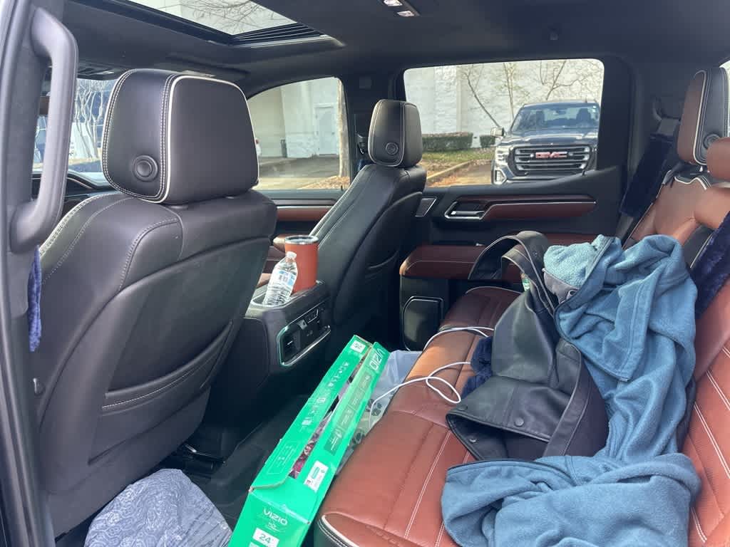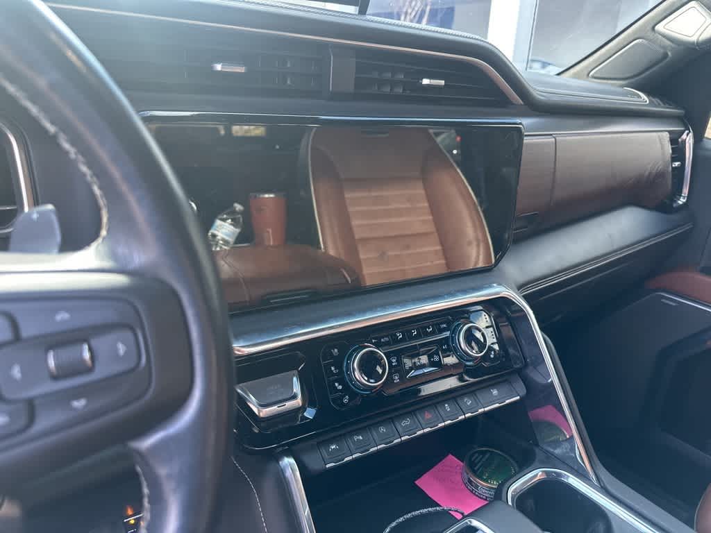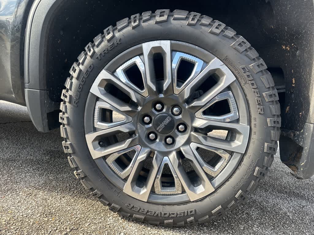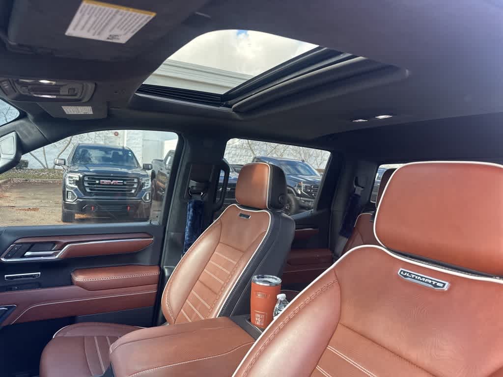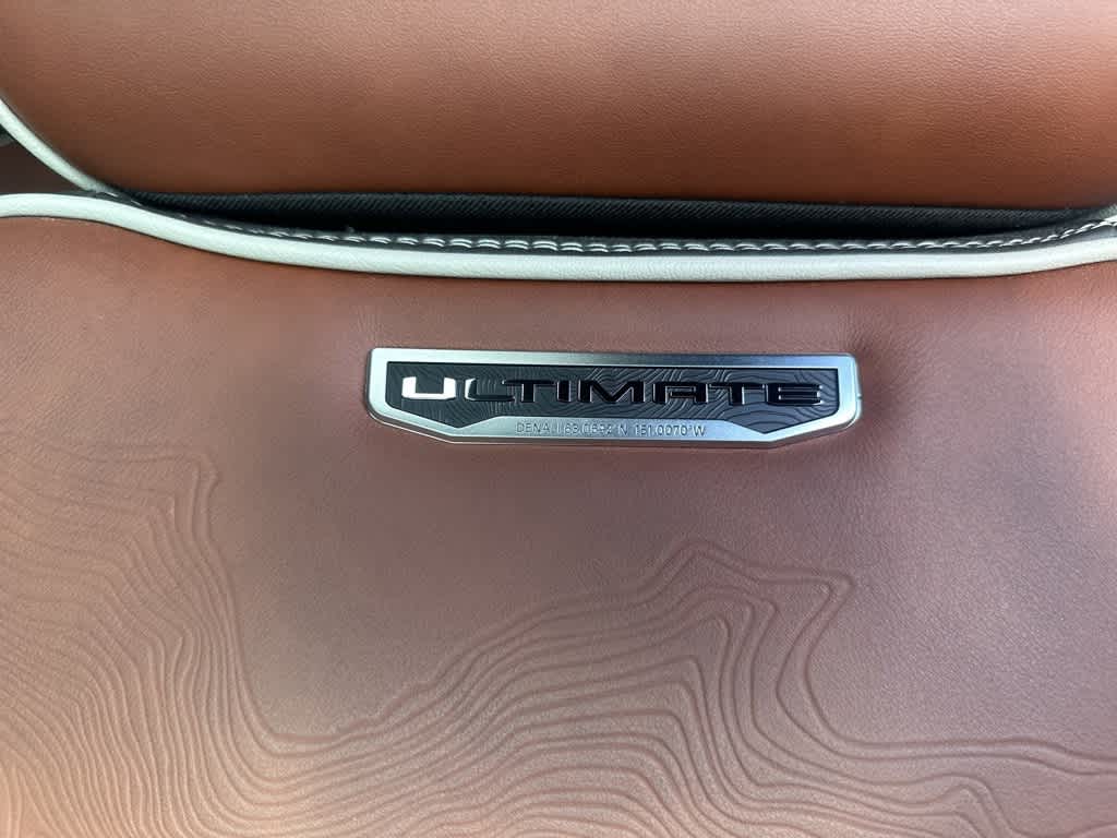 This Sierra 1500 Denali Ultimate is nicely equipped with Preferred Equipment Group 5SB (120-Volt Bed Mounted Power Outlet, 120-Volt Interior Power Outlet, 2 Charge/Data USB Ports Inside Center Console, 2 Type-C Charge-Only Rear USB Ports, 2 USB Ports, Auto-Locking Rear Differential, Bed View Camera, Bose Premium Series w/12-Speaker System, Chrome Recovery Hooks, Color-Keyed Carpeting Floor Covering, Deep-Tinted Glass, Electric Rear-Window Defogger, Floor-Mounted Center Console, Front Rain-Sensing Wipers, GMC Connected Access Capable, HD Surround Vision, Heated 2nd Row Outboard Seats, Heated Driver & Front Outboard Passenger Seating, Heavy-Duty Air Filter, Hill Descent Control, Hitch View, In-Vehicle Trailering System App, Integrated Trailer Brake Controller, Keyless Open & Start, LED Cargo Area Lighting, Multicolor 15 Diagonal Head-Up Display, MultiPro Tailgate Audio System by Kicker (LPO), OnStar & GMC Connected Services Capable, Perimeter Lighting, Power Door Locks, Power Front Passenger Windows w/Express Up/Down, Power Front Windows w/Driver Express Up/Down, Power Rake & Telescoping Steering Column, Power Rear Windows w/Express Down, Power Sliding Rear Window w/Rear Defogger, Power Sunroof, Push Button Start, Rear Cross Traffic Braking, Rear Pedestrian Detection, Rear Wheelhouse Liners, Remote Vehicle Starter System, SiriusXM w/360L, Spray-On Pickup Bedliner w/Denali Logo, Steering Wheel Audio Controls, Theft Deterrent System (Unauthorized Entry), Trailer Camera Provisions, Trailer Side Blind Zone Alert, Trailer Tire Pressure Monitor System, Ultrasonic Front & Rear Park Assist, Universal Home Remote, Vader Chrome Header w/Signature Denali Grille, Ventilated Driver & Front Passenger Seats, Wi-Fi Hotspot Capable, and Wireless Charging), Trailering Package (Hitch Guidance), 10-Speed Automatic, 4WD, Alpine Umber Leather, 12 Speakers, 16-Way Power Driver Seat Adjuster w/Lumbar, 16-Way Power Passenger Seat Adjuster w/Lumbar, 170 Amp Alternator, 3.23 Rear Axle Ratio, 4-Wheel Disc Brakes, ABS brakes, Adaptive suspension, Air Conditioning, Alloy wheels, AM/FM radio: SiriusXM with 360L, Apple CarPlay/Android Auto, Auto High-beam Headlights, Auto-dimming door mirrors, Auto-dimming Rear-View mirror, Automatic temperature control, Brake assist, Buckle to Drive, Bumpers: body-color, Compass, Delay-off headlights, Denali Premium Suspension w/Adaptive Ride Control, Driver door bin, Driver Memory, Driver vanity mirror, Dual Active Exhaust, Dual front impact airbags, Dual front side impact airbags, Electronic Stability Control, Emergency communication system: OnStar and GMC connected services capable, Enhanced Automatic Emergency Braking, Following Distance Indicator, Forward Collision Alert, Front anti-roll bar, Front Bucket Seats, Front Center Armrest, Front dual zone A/C, Front fog lights, Front Pedestrian Braking, Front reading lights, Front wheel independent suspension, Full Grain Leather Seat Trim, Fully automatic headlights, Garage door transmitter, Genuine wood console insert, Genuine wood dashboard insert, Genuine wood door panel insert, GMC MultiPro Tailgate Step Lights (LPO), Heads-Up Display, Heated door mirrors, Heated front seats, Heated rear seats, Heated steering wheel, Illuminated entry, IntelliBeam Automatic High Beam On/Off, Lane Keep Assist w/Lane Departure Warning, Low tire pressure warning, Memory seat, Navigation System, Occupant sensing airbag, Outside temperature display, Overhead airbag, Overhead console, Panic alarm, Passenger door bin, Passenger vanity mirror, Power door mirrors, Power driver seat, Power moonroof, Power passenger seat, Power steering, Power windows, Premium audio system: GMC Infotainment System, Radio data system, Radio: Premium GMC Infotainment Audio System, Rain sensing wipers, Rear reading lights, Rear seat