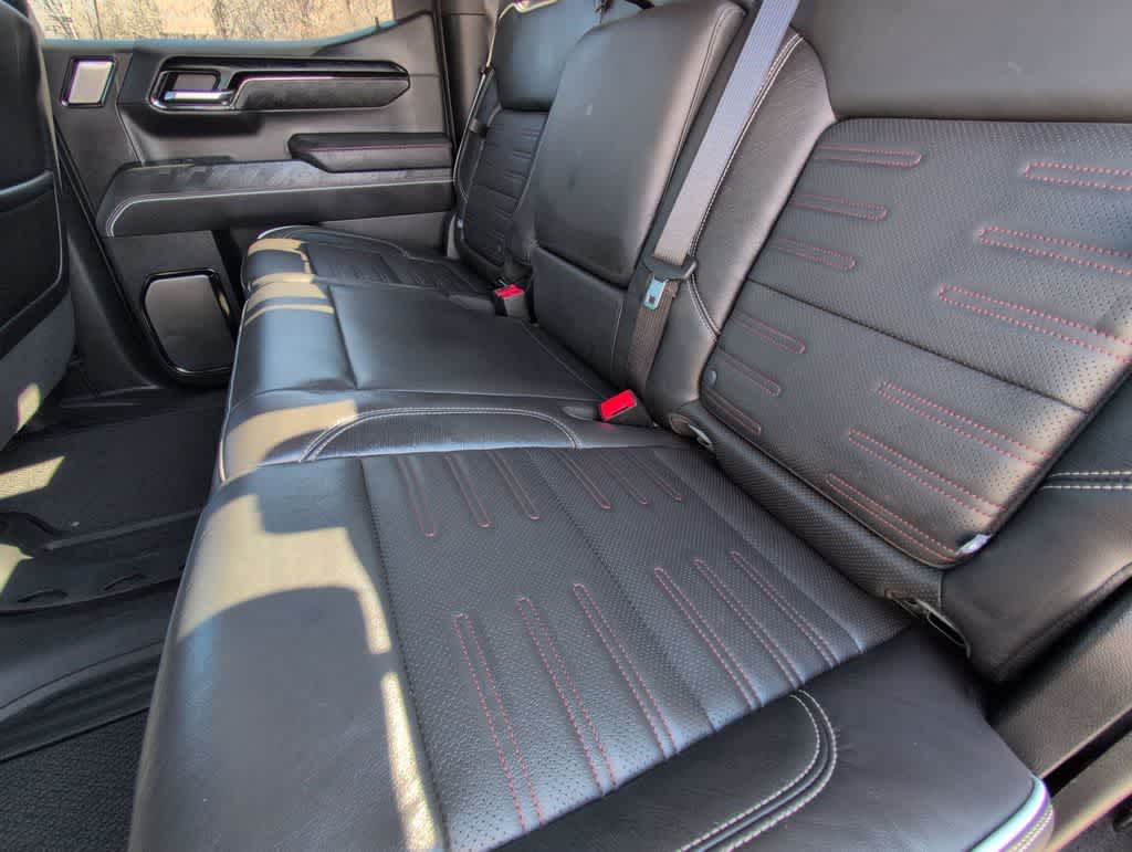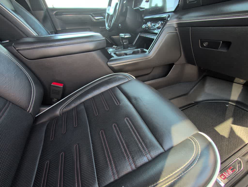 This Sierra 1500 AT4X is nicely equipped with Preferred Equipment Group 4SG (120-Volt Bed Mounted Power Outlet, 120-Volt Interior Power Outlet, 2 Charge/Data USB Ports Inside Center Console, 2 Type-C Charge-Only Rear USB Ports, 2 USB Ports, Bed View Camera, Bose Premium Series w/12-Speaker System, Color-Keyed Carpeting Floor Covering, Deep-Tinted Glass, Driver-Selectable Full-Locking Front Differential, Driver-Selectable Full-Locking Rear Differential, Electric Rear-Window Defogger, Floor-Mounted Center Console, Front Prem Floor Liners w/Removable Carpet Insert, Front Rain-Sensing Wipers, Gloss Black Header w/Drk Nickel Grille Insert Bars, GMC Connected Access Capable, HD Surround Vision, Heated 2nd Row Outboard Seats, Heated Driver & Front Outboard Passenger Seating, Heavy-Duty Air Filter, Hill Descent Control, Hitch View, In-Vehicle Trailering System App, Integrated Trailer Brake Controller, Keyless Open & Start, LED Cargo Area Lighting, Multicolor 15 Diagonal Head-Up Display, MultiPro Tailgate Audio System by Kicker (LPO), OnStar & GMC Connected Services Capable, Perimeter Lighting, Power Door Locks, Power Front Passenger Windows w/Express Up/Down, Power Front Windows w/Driver Express Up/Down, Power Rake & Telescoping Steering Column, Power Rear Windows w/Express Down, Power Sliding Rear Window w/Rear Defogger, Power Sunroof, Push Button Start, Rear Cross Traffic Braking, Rear Pedestrian Detection, Rear Prem Floor Liners w/Removable Carpet Insert, Rear Wheelhouse Liners, Remote Vehicle Starter System, SiriusXM w/360L, Spray-On Pickup Bedliner w/AT4X Logo, Steering Wheel Audio Controls, Theft Deterrent System (Unauthorized Entry), Trailer Camera Provisions, Trailer Side Blind Zone Alert, Trailer Tire Pressure Monitor System, Ultrasonic Front & Rear Park Assist, Universal Home Remote, Ventilated Driver & Front Passenger Seats, Wi-Fi Hotspot Capable, and Wireless Charging), Trailering Package (Hitch Guidance), 10-Speed Automatic, 4WD, Obsidian Rush Leather, 12 Speakers, 16-Way Power Driver Seat Adjuster w/Lumbar, 16-Way Power Passenger Seat Adjuster w/Lumbar, 170 Amp Alternator, 220 Amp Alternator, 3.23 Rear Axle Ratio, 4-Wheel Disc Brakes, ABS brakes, Air Conditioning, Alloy wheels, AM/FM radio: SiriusXM with 360L, Apple CarPlay/Android Auto, Auto High-beam Headlights, Auto-dimming door mirrors, Auto-dimming Rear-View mirror, Automatic Emergency Braking, Automatic temperature control, Auxiliary External Transmission Oil Cooler, Block heater, Brake assist, Buckle to Drive, Compass, Delay-off headlights, Driver door bin, Driver Memory, Driver vanity mirror, Dual Active Exhaust, Dual front impact airbags, Dual front side impact airbags, Electronic Stability Control, External Engine Oil Cooling, Following Distance Indicator, Forward Collision Alert, Front anti-roll bar, Front Bucket Seats, Front Center Armrest, Front dual zone A/C, Front fog lights, Front License Plate Kit, Front Pedestrian Braking, Front reading lights, Front wheel independent suspension, Full Grain Leather Seat Trim, Fully automatic headlights, Garage door transmitter, Genuine wood dashboard insert, Genuine wood door panel insert, Heads-Up Display, Heated door mirrors, Heated front seats, Heated rear seats, Heated steering wheel, Illuminated entry, IntelliBeam Automatic High Beam On/Off, Lane Keep Assist w/Lane Departure Warning, Low tire pressure warning, Memory seat, Navigation System, Occupant sensing airbag, Off-Road High Clearance Step (LPO), Off-Road Suspension, Outside temperature display, Overhead airbag, Overhead console, Panic alarm, Passenger door bin, Passenger vanity mirror, Power door mirrors, Power driver seat, Power moonroof, Power passenger seat, Power steering, Power windows, Premium audio system: GMC Infotainment System, Radio data system, Radio