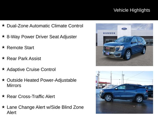 On the road, the 2024 GMC Terrain SLE delivers smooth handling, responsive performance, and the reliability GMC is known for. Combining style, comfort, and utility, it's a compact SUV built to handle life's demands. Stop by Hudson Ford today to see this GMC Terrain SLE in person!