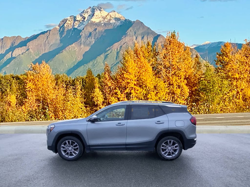 AUDIO SYSTEM, 8 DIAGONAL GMC INFOTAINMENT SYSTEM includes multi-touch display, AM/FM/SiriusXM stereo, Bluetooth® streaming audio for music and most phones, Android Auto® and Apple CarPlay® capability for compatible phones, advanced voice recognition, in-vehicle apps, personalized profiles for infotainment and vehicle settings (STD), ENGINE, 1.5L TURBO DOHC 4-CYLINDER, SIDI, VVT (175 hp [131.3 kW] @ 5800 rpm, 203 lb-ft of torque [275.0 N-m] @ 2000 - 4000 rpm) (STD), TRANSMISSION, 9-SPEED AUTOMATIC 9T45, ELECTRONICALLY-CONTROLLED WITH OVERDRIVE (STD). GMC SLT with Sterling Metallic exterior and Jet Black interior features a 4 Cylinder Engine with 175 HP at 5800 RPM*.