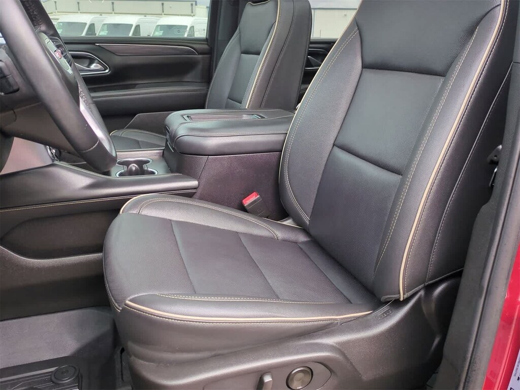 SLT LUXURY PACKAGE includes (KSG) Adaptive Cruise Control, (UGN) Enhanced Automatic Emergency Braking, (UV2) HD Surround Vision, (UKK) Rear Pedestrian Alert, (A45) memory settings, (DXR) outside heated power-adjustable, power-folding, body-color mirrors with driver-side auto-dimming and integrated turn signal indicators, (N38) power tilt and telescopic steering column, (KI3) heated steering wheel, (KA6) second row outboard heated seats, (ATT) second row power 60/40 split-folding bench seats and (AS8) third row power 60/40 split-folding bench seats, SUNROOF, POWER PANORAMIC, DUAL-PANE tilt-sliding with express-open and close and power sunshade, SEATS, SECOND ROW BUCKET, POWER RELEASE, AUDIO SYSTEM, 10.2 DIAGONAL PREMIUM GMC INFOTAINMENT SYSTEM WITH GOOGLE BUILT-IN includes color touch-screen, multi-touch display, AM/FM stereo, Bluetooth® streaming audio for music and most phones; featuring wireless Android Auto® and Apple CarPlay® capability for compatible phones, advanced voice recognition, in-vehicle apps, personalized profiles for infotainment and vehicle settings (STD), ENGINE, 5.3L ECOTEC3 V8 with Dynamic Fuel Management, Direct Injection and Variable Valve Timing, includes aluminum block construction (355 hp [265 kW] @ 5600 rpm, 383 lb-ft of torque [518 Nm] @ 4100 rpm) (STD), TRANSMISSION, 10-SPEED AUTOMATIC electronically controlled with overdrive, includes Traction Select System including tow/haul (STD). 2024 GMC Yukon with Volcanic Red Tintcoat exterior and Jet Black interior features a 8 Cylinder Engine with 355 HP at 5600 RPM*.