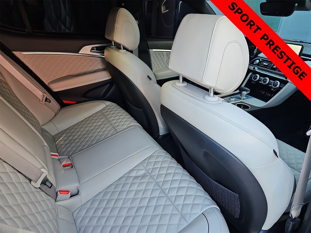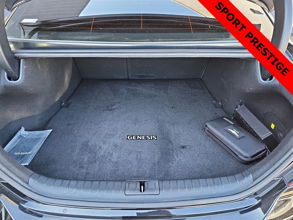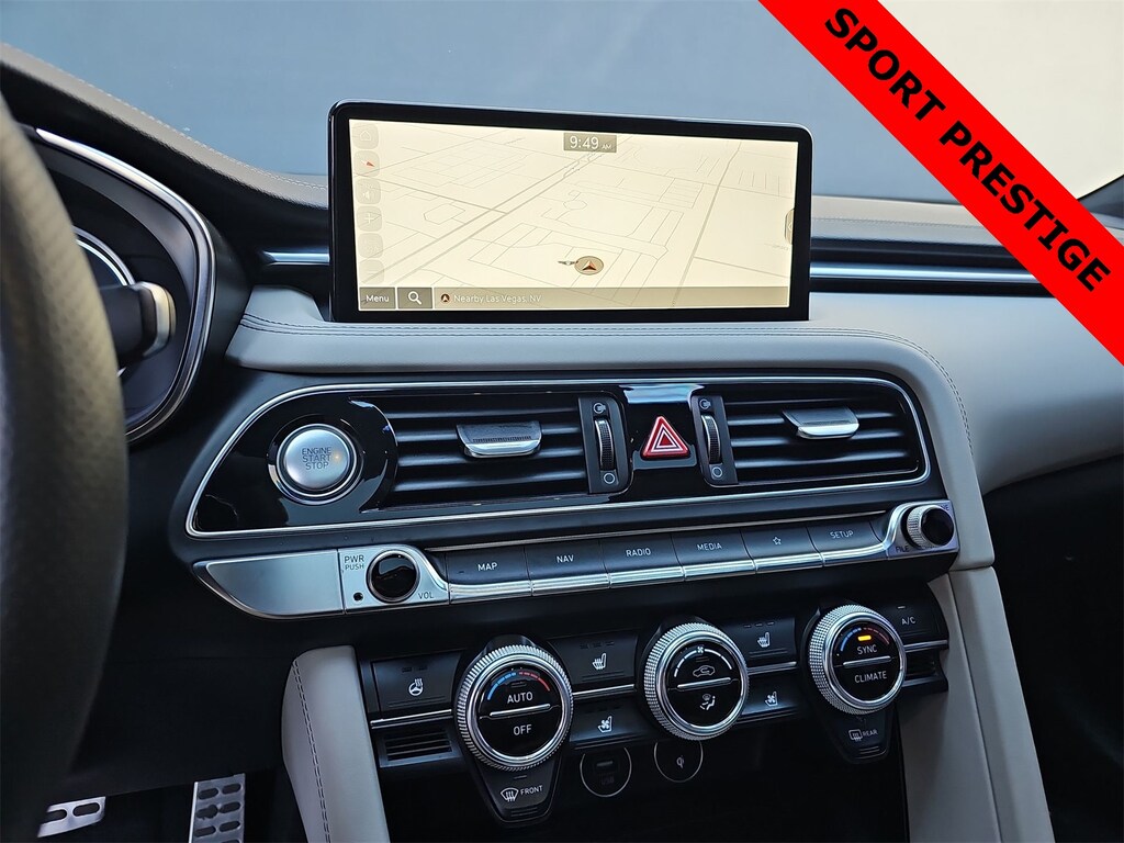 THIS VEHICLE IS EQUIPPED WITH THE FOLLOWING OPTIONS AND FEATURES: 4-Wheel Disc Brakes, 6 Speakers, ABS brakes, Air Conditioning, Alloy wheels, AM/FM radio: SiriusXM, Android Auto & Apple CarPlay, Anti-whiplash front head restraints, Auto High-beam Headlights, Auto-dimming door mirrors, Auto-dimming Rear-View mirror, Automatic temperature control, Brake assist, Bumpers: body-color, Delay-off headlights, Driver door bin, Driver vanity mirror, Dual front impact airbags, Dual front side impact airbags, Electronic Stability Control, Emergency communication system: Genesis Connected Services, Exterior Parking Camera Rear, Four wheel independent suspension, Front anti-roll bar, Front Bucket Seats, Front Center Armrest, Front dual zone A/C, Front reading lights, Fully automatic headlights, Garage door transmitter: HomeLink, Heated door mirrors, Heated front seats, Heated Multi-Adjustable Front Bucket Seats, Illuminated entry, Knee airbag, Leather Seating Surfaces, Low tire pressure warning, Memory seat, Navigation System, Occupant sensing airbag, Outside temperature display, Overhead airbag, Overhead console, Panic alarm, Passenger door bin, Passenger vanity mirror, Power door mirrors, Power driver seat, Power passenger seat, Power steering, Power windows, Premium First Aid Kit, Radio: AM/FM/SiriusXM/HD Audio System, Rain sensing wipers, Rear anti-roll bar, Rear Bumper Applique, Rear reading lights, Rear seat center armrest, Rear window defroster, Remote keyless entry, Reversible Cargo Tray, Security system, Speed control, Speed-sensing steering, Speed-Sensitive Wipers, Split folding rear seat, Steering wheel memory, Steering wheel mounted audio controls, Tachometer, Telescoping steering wheel, Tilt steering wheel, Traction control, Trip computer, Turn signal indicator mirrors, Variably intermittent wipers, Wheel Locks, and Wheels: 19 x 8.0J Fr & 19 x 8.5J Rr Alloy. Recent Arrival! 18/27 City/Highway MPG