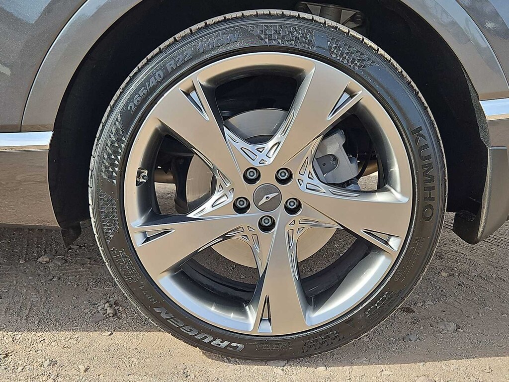12 Speakers, 12.3 3D Digital Cluster, 3-Zone Climate, 4-Wheel Disc Brakes, 4.363 Axle Ratio, ABS brakes, Air Conditioning, Alloy wheels, AM/FM radio: SiriusXM, Android Auto & Apple CarPlay, Anti-whiplash front head restraints, Auto High-beam Headlights, Auto tilt-away steering wheel, Auto-dimming door mirrors, Auto-dimming Rear-View mirror, Auto-leveling suspension, Automatic temperature control, Blind-Spot View Monitor, Brake assist, Bumpers: body-color, Compass, Delay-off headlights, Driver door bin, Driver vanity mirror, Dual front impact airbags, Dual front side impact airbags, Electronic Stability Control, Electronically Controlled Suspension, Emergency communication system: Genesis Connected Services, Ergo Motion Driver Seat, Exterior Parking Camera Rear, Forward Attention Warning, Forward Collision-Avoidance Assist, Four wheel independent suspension, Front anti-roll bar, Front Bucket Seats, Front Center Armrest, Front dual zone A/C, Front reading lights, Fully automatic headlights, Garage door transmitter: HomeLink, Genuine wood console insert, Genuine wood dashboard insert, Genuine wood door panel insert, Heads-Up Display, Heated & Ventilated Front Bucket Seats, Heated 2nd Row Seats, Heated door mirrors, Heated front seats, Heated steering wheel, Highway Driving Assist, Illuminated entry, Knee airbag, Leather Seating Surfaces, Leather steering wheel, Leatherette Seating Surfaces, Low tire pressure warning, Memory seat, Monobloc Front Brakes, Mudguards, Navigation System, Occupant sensing airbag, Outside temperature display, Overhead airbag, Overhead console, Panic alarm, Passenger door bin, Passenger vanity mirror, Power door mirrors, Power driver seat, Power Driver Seat Bolster & Cushion Extension, Power Liftgate, Power moonroof, Power passenger seat, Power steering, Power windows, Prestige Package 04, Radio data system, Radio: AM/FM/SiriusXM/HD Lexicon Prem Audio System, Radio: AM/FM/SiriusXM/HD Premium Audio System, Rain sensing wipers, Rear air conditioning, Rear anti-roll bar, Rear Bumper Applique, Rear Parking Collision-Avoidance Assist, Rear reading lights, Rear seat center armrest, Rear side impact airbag, Rear window defroster, Rear window wiper, Remote keyless entry, Remote Smart Parking Assist, Reversible Cargo Tray, Road Active Noise Control, Security system, Speed control, Speed-sensing steering, Speed-Sensitive Wipers, Split folding rear seat, Spoiler, Steering wheel memory, Steering wheel mounted audio controls, Surround View Monitor, Tachometer, Telescoping steering wheel, Tilt steering wheel, Traction control, Trip computer, Turn signal indicator mirrors, Variably intermittent wipers, Ventilated front seats, Wheels: 19 x 8.5J Medium Metallic Gray Alloy, Wheels: 20 x 8.5J Alloy, Wheels: 22 x 9.5J Alloy.