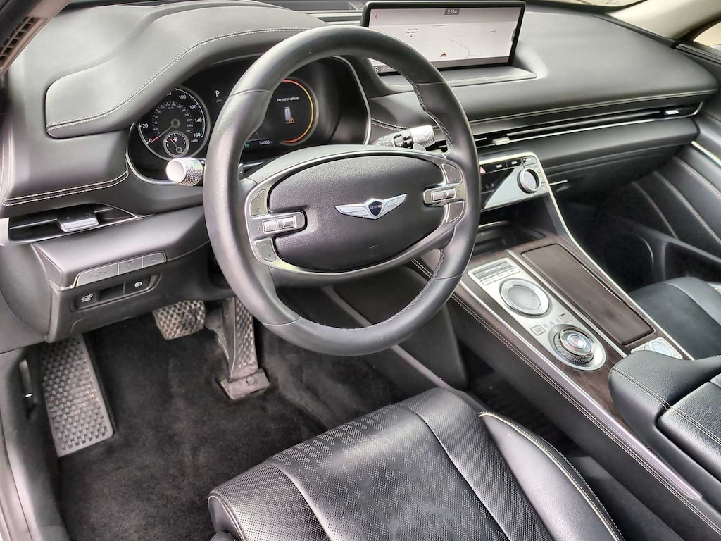 Luxury meets performance in this stunning GV80 3.5T finished with the highly sought-after Advanced Package. Powered by a 375-hp twin-turbo V6, this SUV delivers confident acceleration with smooth AWD handling. Premium features include a panoramic sunroof, 21-inch alloy wheels, premium Nappa leather seating, surround-view monitor, 3D digital instrument cluster, Lexicon 21-speaker premium audio system, and advanced driver assistance tech. Meticulously maintained with 54,057 miles ?? clean condition inside and out. The GV80 sets the standard for refined, upscale SUVs.