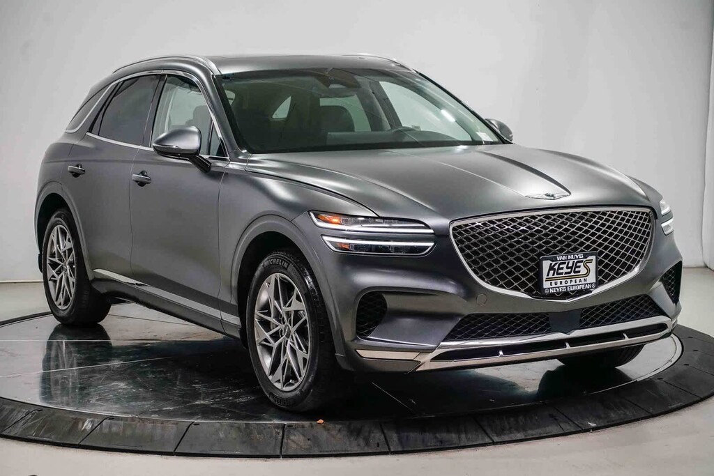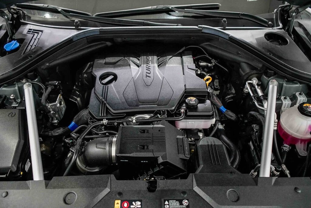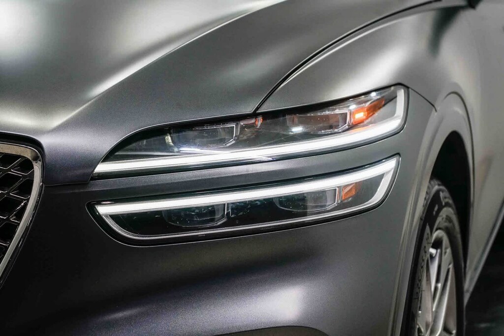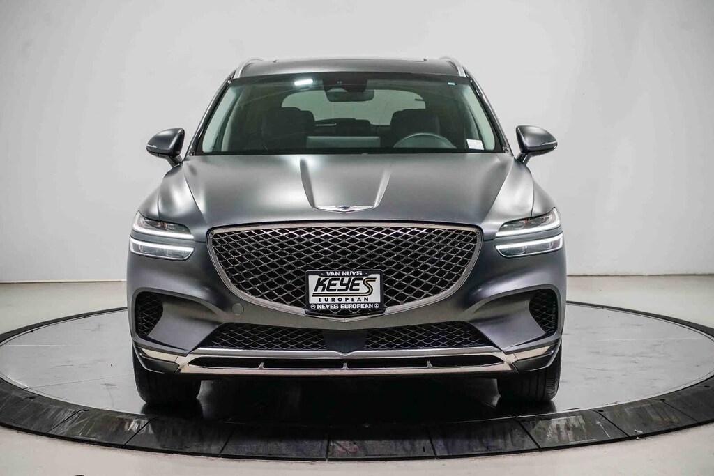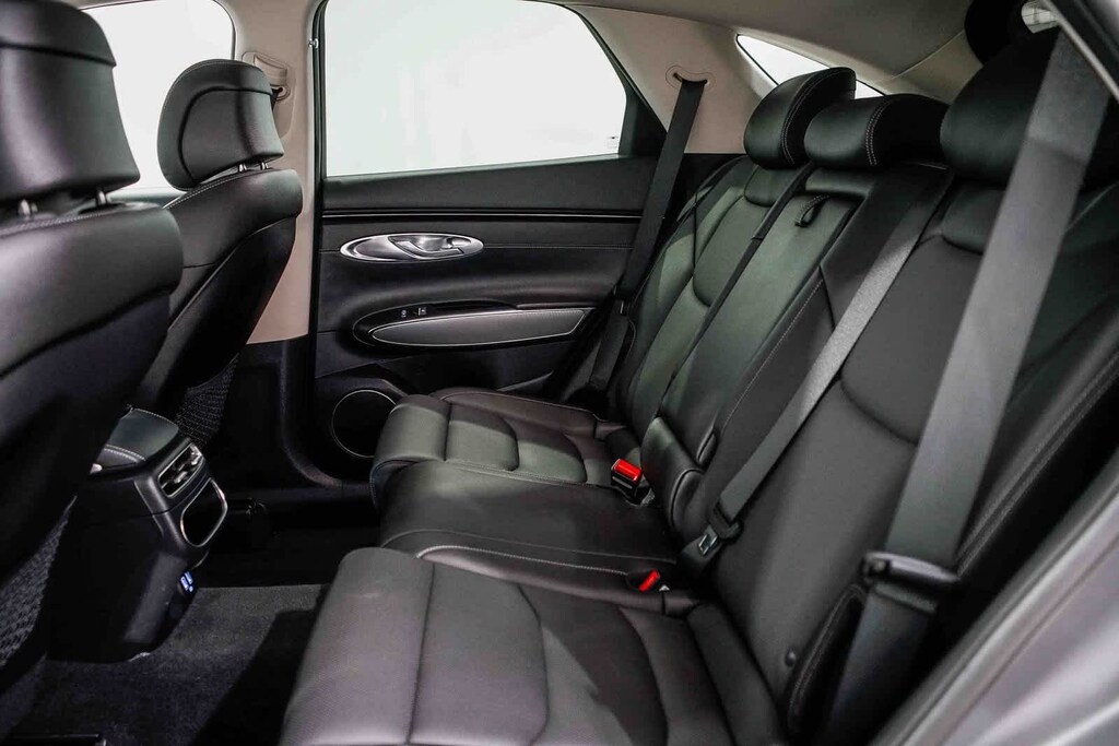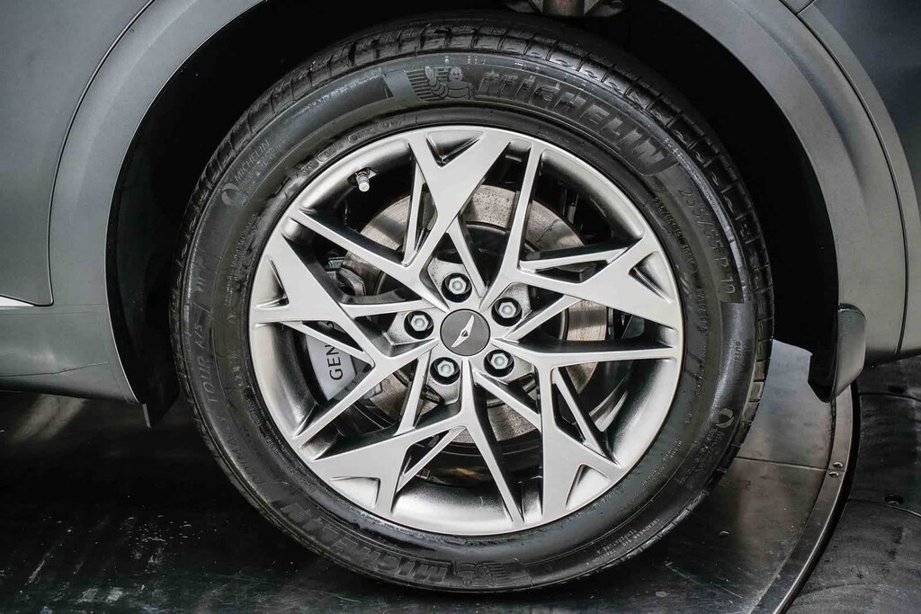 This vehicle includes: Select Package (Heated Steering Wheel, Integrated Memory System (IMS), Monobloc Front Brakes, Option Group 02, Power Folding ECM Mirrors w/Genesis Logo Lamp, Power Telescoping Steering Wheel, Power Tilt & Slide Panoramic Sunroof, and Ventilated Front Seats), ABS brakes, Alloy wheels, Electronic Stability Control, Emergency communication system, Front dual zone A/C, Heated door mirrors, Heated Front Bucket Seats, Heated front seats, Illuminated entry, Low tire pressure warning, Navigation System, Power Liftgate, Remote keyless entry, Traction control, 4-Wheel Disc Brakes, 4.181 Axle Ratio, 9 Speakers, Air Conditioning, AM/FM radio: SiriusXM, Android Auto & Apple CarPlay, Anti-whiplash front head restraints, Auto High-beam Headlights, Auto-dimming Rear-View mirror, Automatic temperature control, Brake assist, Bumpers: body-color, Delay-off headlights, Driver door bin, Driver vanity mirror, Dual front impact airbags, Dual front side impact airbags, Exterior Parking Camera Rear, Four wheel independent suspension, Front anti-roll bar, Front Bucket Seats, Front Center Armrest w/Storage, Front reading lights, Fully automatic headlights, Garage door transmitter: HomeLink, Knee airbag, Leatherette Seating Surfaces, Occupant sensing airbag, Outside temperature display, Overhead airbag, Overhead console, Panic alarm, Passenger door bin, Passenger vanity mirror, Power door mirrors, Power driver seat, Power passenger seat, Power steering, Power windows, Radio: AM/FM/SiriusXM/HD Premium Audio System, Rain sensing wipers, Rear anti-roll bar, Rear Parking Sensors, Rear reading lights, Rear seat center armrest, Rear window defroster, Rear window wiper, Security system, Speed control, Speed-sensing steering, Speed-Sensitive Wipers, Split folding rear seat, Spoiler, Steering wheel mounted audio controls, Tachometer, Telescoping steering wheel, Tilt steering wheel, Trip computer, Turn signal indicator mirrors, Variably intermittent wipers, and Wheels: 19 Dark Hyper Silver Aluminum