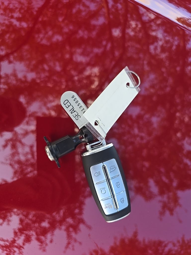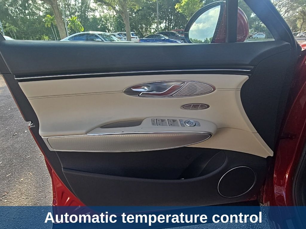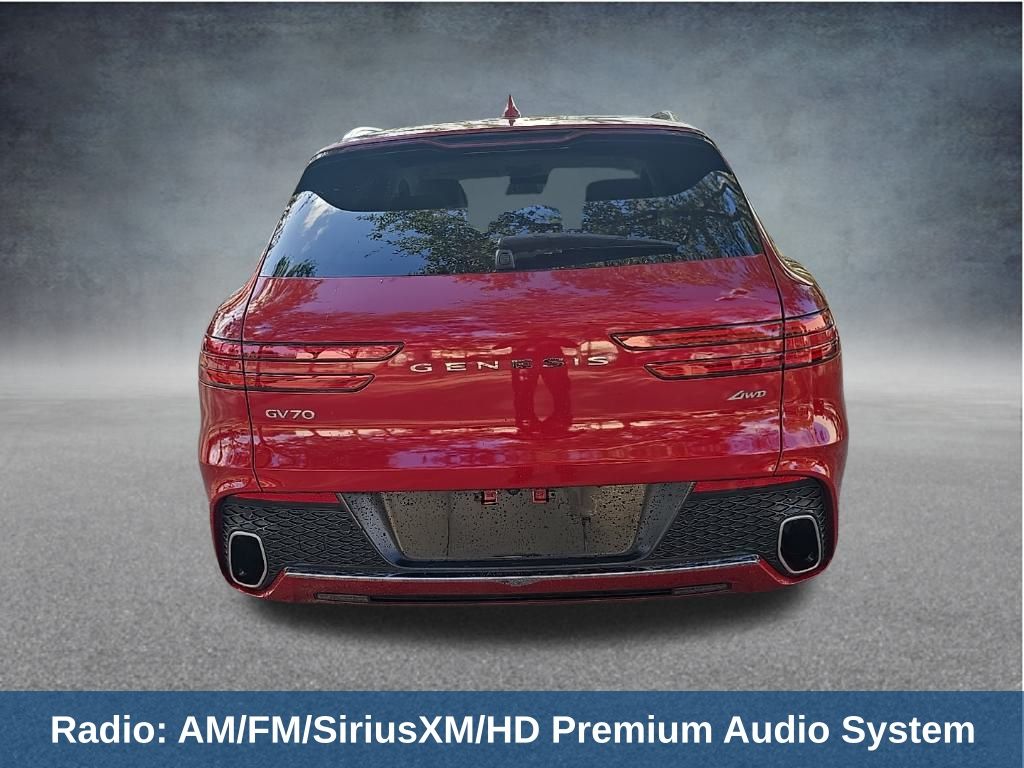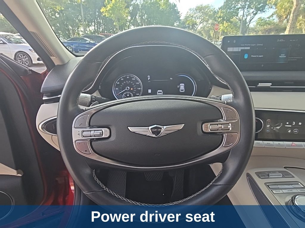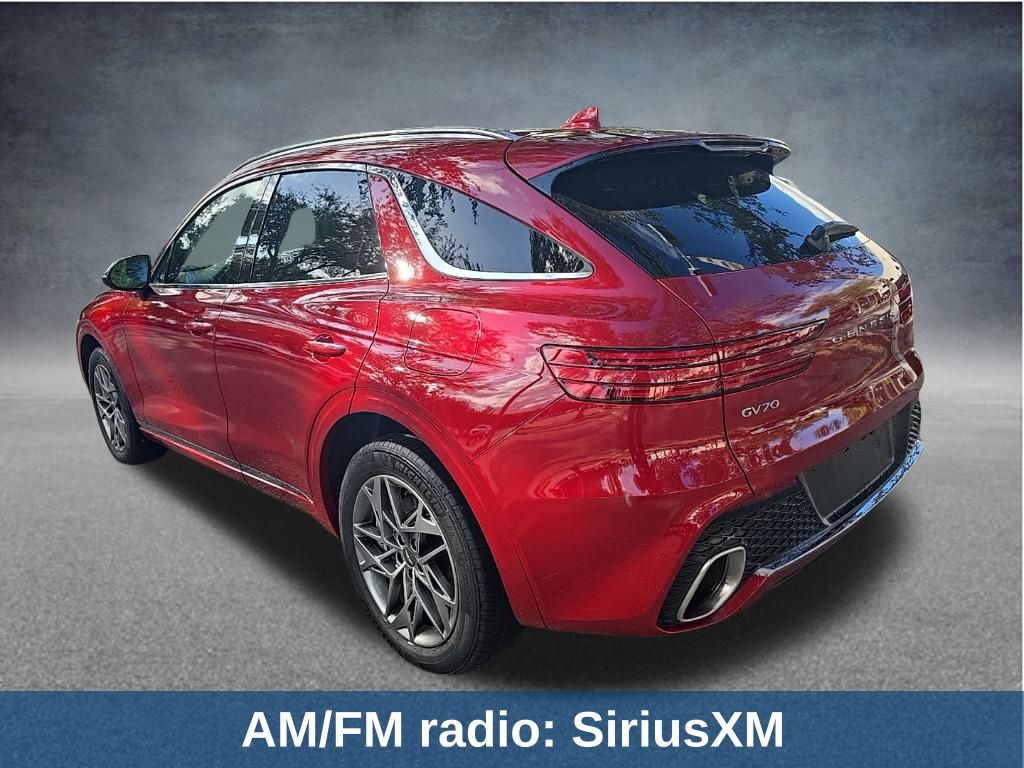GV70 2.5T, 4D Sport Utility, 2.5L DOHC, 8-Speed Automatic with SHIFTRONIC, AWD, Mauna Red, Vanilla Beige Artificial Leather, 4-Wheel Disc Brakes, 4.181 Axle Ratio, 9 Speakers, ABS brakes, Air Conditioning, Alloy wheels, Aluminum Trim w/Spin Brushed Pattern, AM/FM radio: SiriusXM, Android Auto & Apple CarPlay, Anti-whiplash front head restraints, Auto High-beam Headlights, Auto-dimming Rear-View mirror, Automatic temperature control, Brake assist, Bumpers: body-color, Cargo Cover, Delay-off headlights, Driver door bin, Driver vanity mirror, Dual front impact airbags, Dual front side impact airbags, Electronic Stability Control, Emergency communication system, Exterior Parking Camera Rear, First Aid Kit, Four wheel independent suspension, Front anti-roll bar, Front Bucket Seats, Front Center Armrest w/Storage, Front dual zone A/C, Front reading lights, Fully automatic headlights, Garage door transmitter: HomeLink, Heated door mirrors, Heated Front Bucket Seats, Heated front seats, Heated Steering Wheel, Illuminated entry, Integrated Memory System (IMS), Knee airbag, Leatherette Seating Surfaces, Low tire pressure warning, Monobloc Front Brakes, Navigation System, Occupant sensing airbag, Option Group 02, Outside temperature display, Overhead airbag, Overhead console, Panic alarm, Passenger door bin, Passenger vanity mirror, Power door mirrors, Power driver seat, Power Folding ECM Mirrors w/Genesis Logo Lamp, Power Liftgate, Power passenger seat, Power steering, Power Telescoping Steering Wheel, Power Tilt & Slide Panoramic Sunroof, Power windows, Radio: AM/FM/SiriusXM/HD Premium Audio System, Rain sensing wipers, Rear anti-roll bar, Rear Parking Sensors, Rear reading lights, Rear seat center armrest, Rear window defroster, Rear window wiper, Remote keyless entry, Security system, Select Package, Speed control, Speed-sensing steering, Speed-Sensitive Wipers, Split folding rear seat, Spoiler, Steering wheel mounted audio controls, Tachometer, Telescoping steering wheel, Tilt steering wheel, Traction control, Trip computer, Turn signal indicator mirrors, Variably intermittent wipers, Ventilated Front Seats, Wheel Locks, Wheels: 18" Real Steel Gray Alloy, Wheels: 19" Dark Hyper Silver Aluminum.