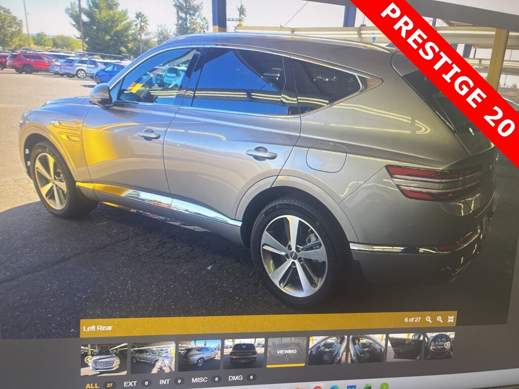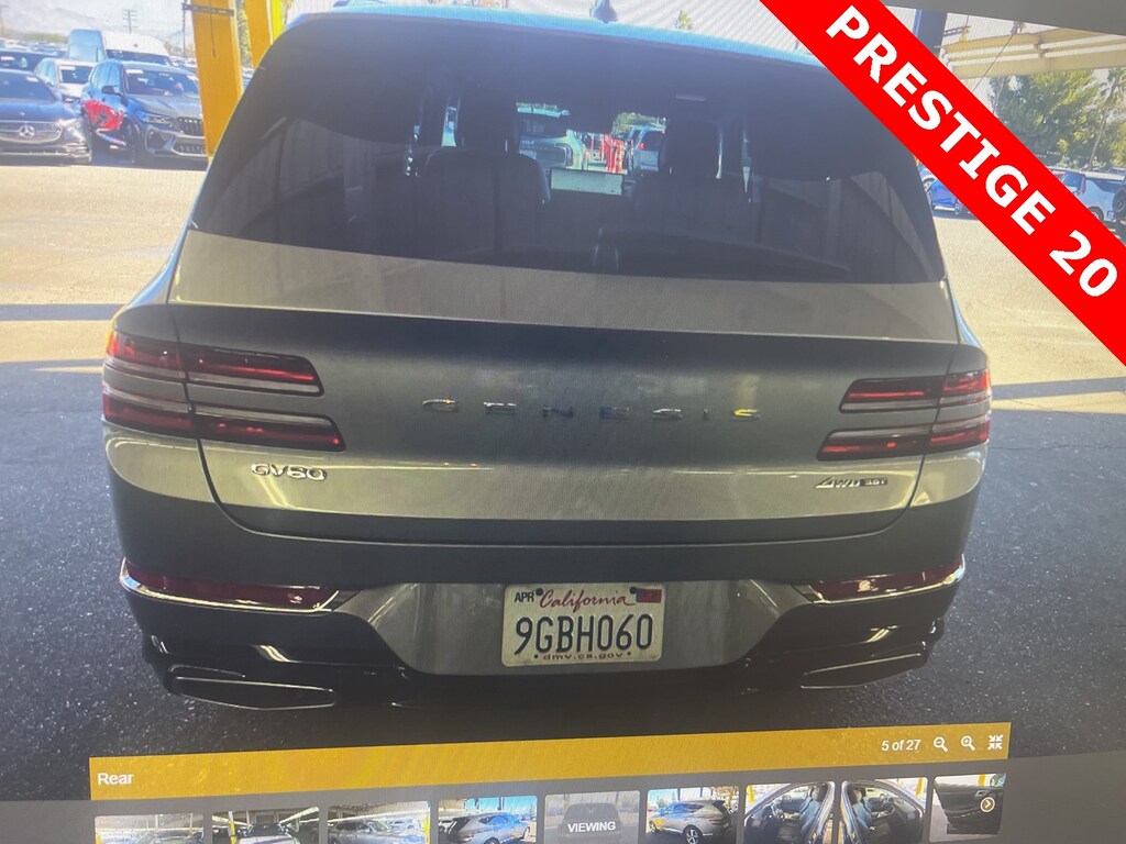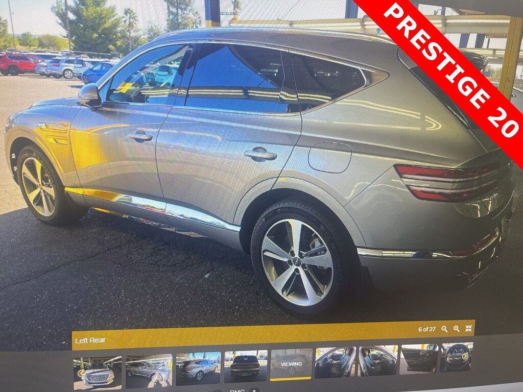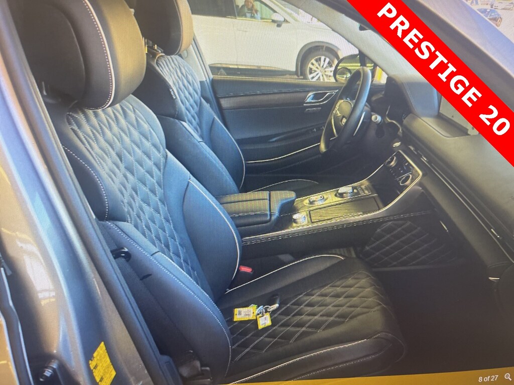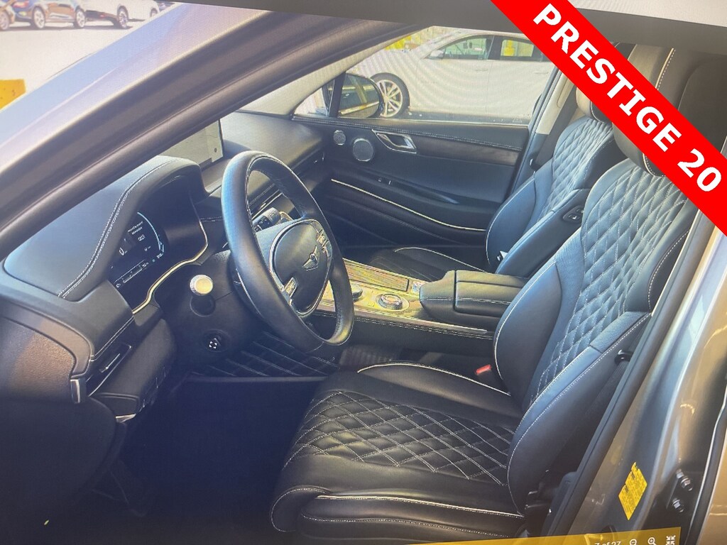 THIS VEHICLE IS EQUIPPED WITH THE FOLLOWING OPTIONS AND FEATURES: ABS brakes, Active Cruise Control, Alloy wheels, Compass, Electronic Stability Control, Front dual zone A/C, Heated & Ventilated Front Bucket Seats, Heated door mirrors, Heated front seats, Illuminated entry, Low tire pressure warning, Power Liftgate, Power moonroof, Remote keyless entry, Traction control, 12 Speakers, 3.909 Axle Ratio, 4-Wheel Disc Brakes, Adaptive suspension, Air Conditioning, AM/FM radio: SiriusXM, Android Auto & Apple CarPlay, Anti-whiplash front head restraints, Auto High-beam Headlights, Auto tilt-away steering wheel, Auto-dimming door mirrors, Auto-dimming Rear-View mirror, Automatic temperature control, Brake assist, Bumpers: body-color, Delay-off headlights, Driver door bin, Driver vanity mirror, Dual front impact airbags, Dual front side impact airbags, Emergency communication system: Genesis Connected Services, Exterior Parking Camera Rear, Four wheel independent suspension, Front anti-roll bar, Front Bucket Seats, Front Center Armrest, Front reading lights, Fully automatic headlights, Garage door transmitter: HomeLink, Genuine wood console insert, Genuine wood dashboard insert, Genuine wood door panel insert, Heated steering wheel, Knee airbag, Leather steering wheel, Leatherette Seating Surfaces, Memory seat, Occupant sensing airbag, Outside temperature display, Overhead airbag, Overhead console, Panic alarm, Passenger door bin, Passenger vanity mirror, Power door mirrors, Power driver seat, Power passenger seat, Power steering, Power windows, Radio data system, Radio: AM/FM/SiriusXM/HD Audio System, Rain sensing wipers, Rear air conditioning, Rear anti-roll bar, Rear reading lights, Rear seat center armrest, Rear side impact airbag, Rear window defroster, Rear window wiper, Security system, Speed control, Speed-sensing steering, Speed-Sensitive Wipers, Split folding rear seat, Spoiler, Steering wheel memory, Steering wheel mounted audio controls, Tachometer, Telescoping steering wheel, Tilt steering wheel, Trip computer, Turn signal indicator mirrors, Variably intermittent wipers, Ventilated front seats, and Wheels: 20 x 8.5J Medium Metallic Gray Alloy. Recent Arrival!