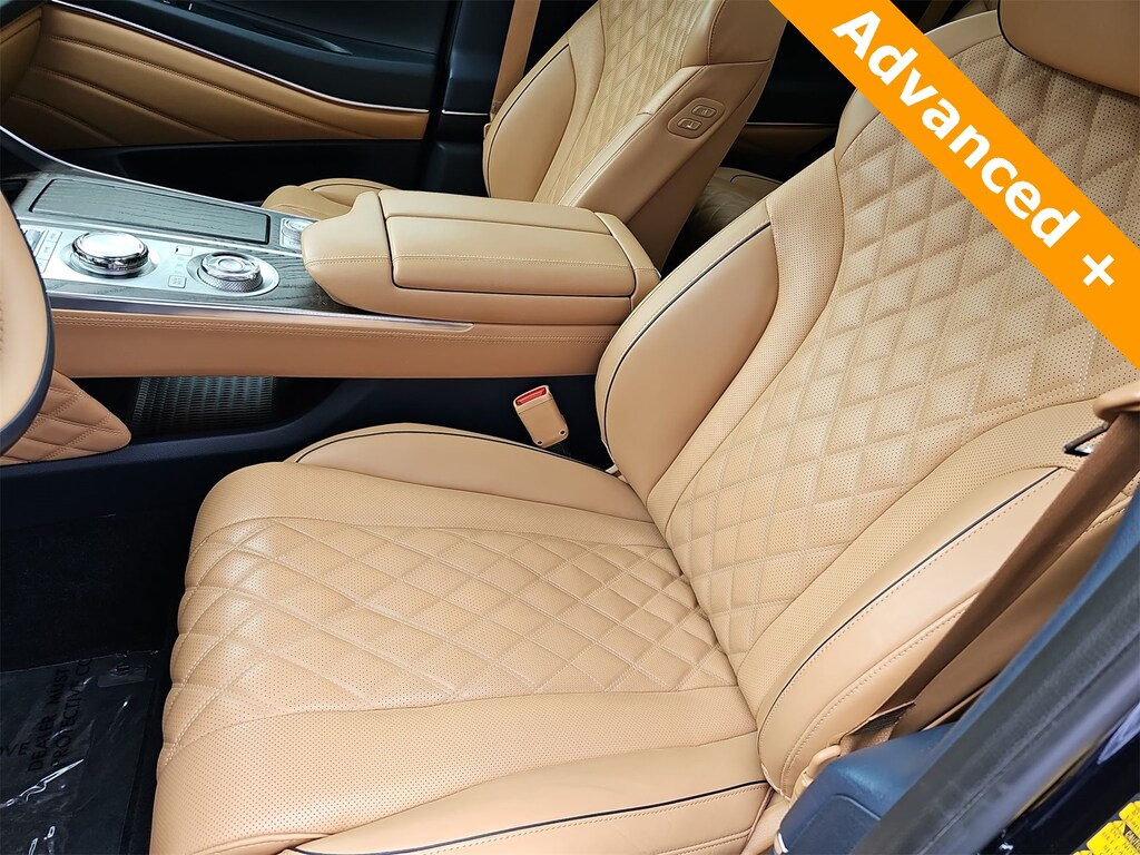 THIS VEHICLE IS EQUIPPED WITH THE FOLLOWING OPTIONS AND FEATURES: ABS brakes, Active Cruise Control, Alloy wheels, Compass, Electronic Stability Control, Front dual zone A/C, Heated & Ventilated Front Bucket Seats, Heated door mirrors, Heated front seats, Heated rear seats, Illuminated entry, Low tire pressure warning, Navigation System, Power Liftgate, Power moonroof, Remote keyless entry, Traction control, 21 Speakers, 3.909 Axle Ratio, 3rd row seats: split-bench, 4-Wheel Disc Brakes, Adaptive suspension, Air Conditioning, AM/FM radio: SiriusXM, Android Auto & Apple CarPlay, Anti-whiplash front head restraints, Auto High-beam Headlights, Auto tilt-away steering wheel, Auto-dimming door mirrors, Auto-dimming Rear-View mirror, Automatic temperature control, Brake assist, Bumpers: body-color, Delay-off headlights, Driver door bin, Driver vanity mirror, Dual front impact airbags, Dual front side impact airbags, Emergency communication system: Genesis Connected Services, Exterior Parking Camera Rear, Four wheel independent suspension, Front anti-roll bar, Front Bucket Seats, Front Center Armrest, Front reading lights, Fully automatic headlights, Garage door transmitter: HomeLink, Genuine wood console insert, Genuine wood dashboard insert, Genuine wood door panel insert, Heads-Up Display, Heated steering wheel, Knee airbag, Leather Seating Surfaces, Leather steering wheel, Memory seat, Occupant sensing airbag, Outside temperature display, Overhead airbag, Overhead console, Panic alarm, Passenger door bin, Passenger vanity mirror, Power door mirrors, Power driver seat, Power passenger seat, Power steering, Power windows, Premium audio system: Lexicon, Radio data system, Radio: AM/FM/SiriusXM/HD Lexicon Prem Audio System, Rain sensing wipers, Rear air conditioning, Rear anti-roll bar, Rear reading lights, Rear seat center armrest, Rear side impact airbag, Rear window defroster, Rear window wiper, Reclining 3rd row seat, Security system, Speed control, Speed-sensing steering, Speed-Sensitive Wipers, Split folding rear seat, Spoiler, Steering wheel memory, Steering wheel mounted audio controls, Tachometer, Telescoping steering wheel, Tilt steering wheel, Trip computer, Turn signal indicator mirrors, Variably intermittent wipers, Ventilated front seats, and Wheels: 20 x 8.5J Medium Metallic Gray Alloy. Odometer is 2647 miles below market average!