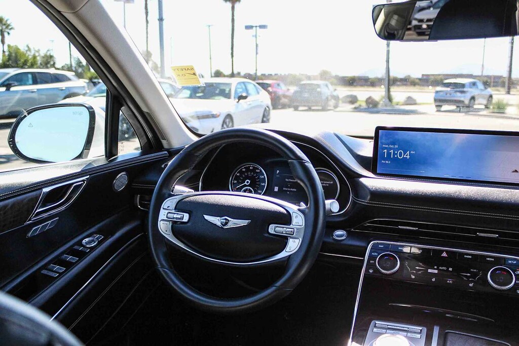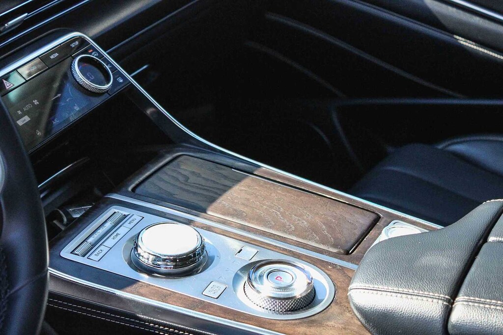 12 Speakers, 4-Wheel Disc Brakes, 4.363 Axle Ratio, ABS brakes, Air Conditioning, Alloy wheels, AM/FM radio: SiriusXM, Android Auto & Apple CarPlay, Anti-whiplash front head restraints, Auto High-beam Headlights, Auto tilt-away steering wheel, Auto-dimming door mirrors, Auto-dimming Rear-View mirror, Auto-leveling suspension, Automatic temperature control, Brake assist, Bumpers: body-color, Compass, Delay-off headlights, Driver door bin, Driver vanity mirror, Dual front impact airbags, Dual front side impact airbags, Electronic Stability Control, Emergency communication system: Genesis Connected Services, Exterior Parking Camera Rear, Four wheel independent suspension, Front anti-roll bar, Front Bucket Seats, Front Center Armrest, Front dual zone A/C, Front reading lights, Fully automatic headlights, Garage door transmitter: HomeLink, Genuine wood console insert, Genuine wood dashboard insert, Genuine wood door panel insert, Heated door mirrors, Heated Front Bucket Seats, Heated front seats, Heated steering wheel, Illuminated entry, Knee airbag, Leather steering wheel, Leatherette Seating Surfaces, Low tire pressure warning, Memory seat, Navigation System, Occupant sensing airbag, Outside temperature display, Overhead airbag, Overhead console, Panic alarm, Passenger door bin, Passenger vanity mirror, Power door mirrors, Power driver seat, Power Liftgate, Power passenger seat, Power steering, Power windows, Radio data system, Radio: AM/FM/SiriusXM/HD Audio System, Rain sensing wipers, Rear air conditioning, Rear anti-roll bar, Rear reading lights, Rear seat center armrest, Rear side impact airbag, Rear window defroster, Rear window wiper, Remote keyless entry, Security system, Speed control, Speed-sensing steering, Speed-Sensitive Wipers, Split folding rear seat, Spoiler, Steering wheel memory, Steering wheel mounted audio controls, Tachometer, Telescoping steering wheel, Tilt steering wheel, Traction control, Trip computer, Turn signal indicator mirrors, Variably intermittent wipers, and Wheels: 19 x 8.5J Medium Metallic Gray Alloy. 2.5L DOHC 8-Speed Automatic AWD