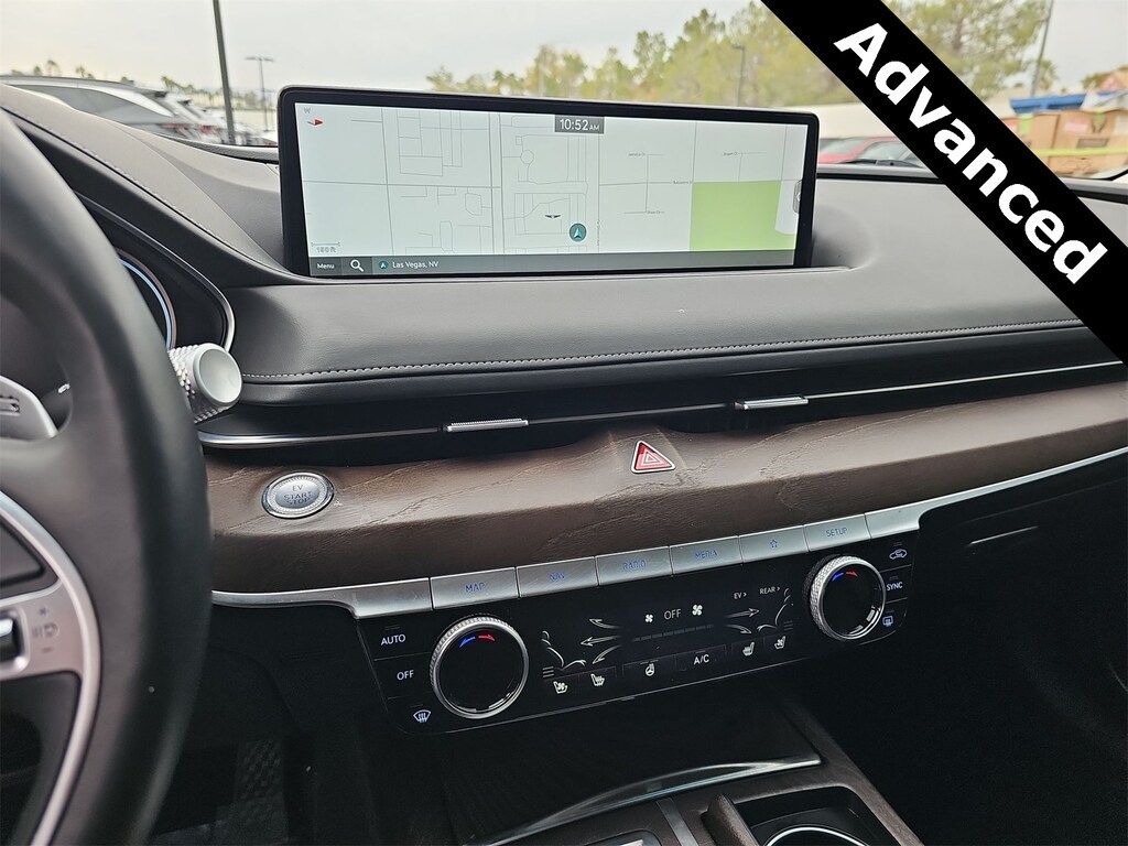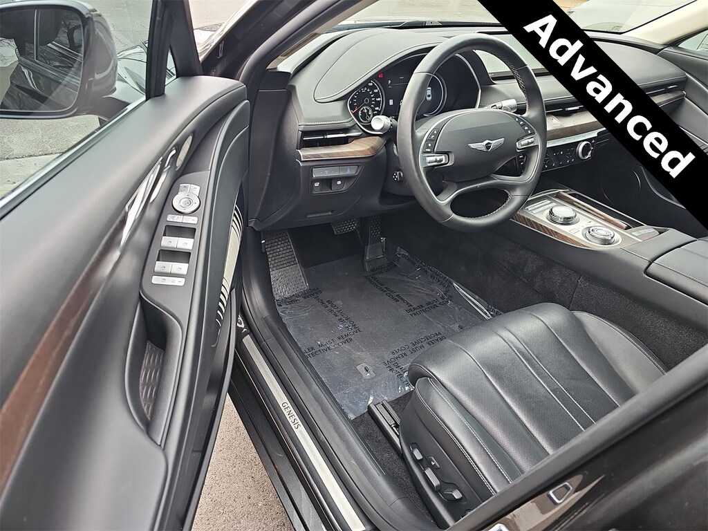 THIS VEHICLE IS EQUIPPED WITH THE FOLLOWING OPTIONS AND FEATURES: Option Group 01, 21 Speakers, 4-Wheel Disc Brakes, ABS brakes, Adaptive suspension, Air Conditioning, Alloy wheels, AM/FM radio: SiriusXM, Android Auto & Apple CarPlay, Anti-whiplash front head restraints, Auto High-beam Headlights, Auto tilt-away steering wheel, Auto-dimming door mirrors, Auto-dimming Rear-View mirror, Automatic temperature control, Brake assist, Bumpers: body-color, Compass, Delay-off headlights, Driver door bin, Driver vanity mirror, Dual front impact airbags, Dual front side impact airbags, Electronic Stability Control, Emergency communication system: Genesis Connected Services, Exterior Parking Camera Rear, Four wheel independent suspension, Front anti-roll bar, Front Bucket Seats, Front Center Armrest, Front dual zone A/C, Front reading lights, Fully automatic headlights, Garage door transmitter: HomeLink, Genuine wood dashboard insert, Genuine wood door panel insert, Heated & Ventilated Front Seats, Heated door mirrors, Heated front seats, Heated steering wheel, Illuminated entry, Knee airbag, Leather Seating Surfaces, Leather steering wheel, Low tire pressure warning, Memory seat, Navigation System, Occupant sensing airbag, Outside temperature display, Overhead airbag, Overhead console, Panic alarm, Passenger door bin, Passenger vanity mirror, Power door mirrors, Power driver seat, Power passenger seat, Power steering, Power windows, Radio data system, Radio: AM/FM/HD Premium Lexicon Audio System, Rain sensing wipers, Rear anti-roll bar, Rear Bumper Applique, Rear reading lights, Rear seat center armrest, Rear side impact airbag, Rear window defroster, Remote keyless entry, Security system, Speed control, Speed-sensing steering, Speed-Sensitive Wipers, Steering wheel memory, Steering wheel mounted audio controls, Telescoping steering wheel, Tilt steering wheel, Traction control, Trip computer, Turn signal indicator mirrors, Variably intermittent wipers, Ventilated front seats, and Wheels: 19 Dark Metal Gray Machine Finished Alloy. 105/89 City/Highway MPG