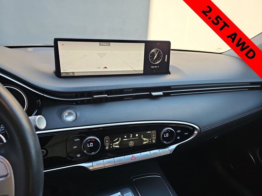 THIS VEHICLE IS EQUIPPED WITH THE FOLLOWING OPTIONS AND FEATURES: Option Group 01, Genesis Certified Certified, 4-Wheel Disc Brakes, 4.181 Axle Ratio, 9 Speakers, ABS brakes, Air Conditioning, Alloy wheels, AM/FM radio: SiriusXM, Android Auto & Apple CarPlay, Anti-whiplash front head restraints, Auto High-beam Headlights, Auto-dimming Rear-View mirror, Automatic temperature control, Brake assist, Bumpers: body-color, Cargo Cover, Cargo Net, Delay-off headlights, Driver door bin, Driver vanity mirror, Dual front impact airbags, Dual front side impact airbags, Electronic Stability Control, Emergency communication system: Genesis Connected Services, Exterior Parking Camera Rear, First Aid Kit, Four wheel independent suspension, Front anti-roll bar, Front Bucket Seats, Front Center Armrest w/Storage, Front dual zone A/C, Front reading lights, Fully automatic headlights, Garage door transmitter: HomeLink, Heated door mirrors, Heated Front Bucket Seats, Heated front seats, Illuminated entry, Knee airbag, Leatherette Seating Surfaces, Low tire pressure warning, Navigation System, Occupant sensing airbag, Outside temperature display, Overhead airbag, Overhead console, Panic alarm, Passenger door bin, Passenger vanity mirror, Power door mirrors, Power driver seat, Power Liftgate, Power passenger seat, Power steering, Power windows, Radio: 14.5 Navigation System w/AM/FM/HD Radio, Rain sensing wipers, Rear anti-roll bar, Rear Parking Sensors, Rear reading lights, Rear seat center armrest, Rear window defroster, Rear window wiper, Remote keyless entry, Reversible Cargo Tray, Security system, Speed control, Speed-sensing steering, Speed-Sensitive Wipers, Split folding rear seat, Spoiler, Steering wheel mounted audio controls, Tachometer, Telescoping steering wheel, Traction control, Trip computer, Turn signal indicator mirrors, Variably intermittent wipers, Wheel Locks, and Wheels: 19 Dark Hyper Silver Alloy. Recent Arrival! Odometer is 2718 miles below market average! 22/28 City/Highway MPG