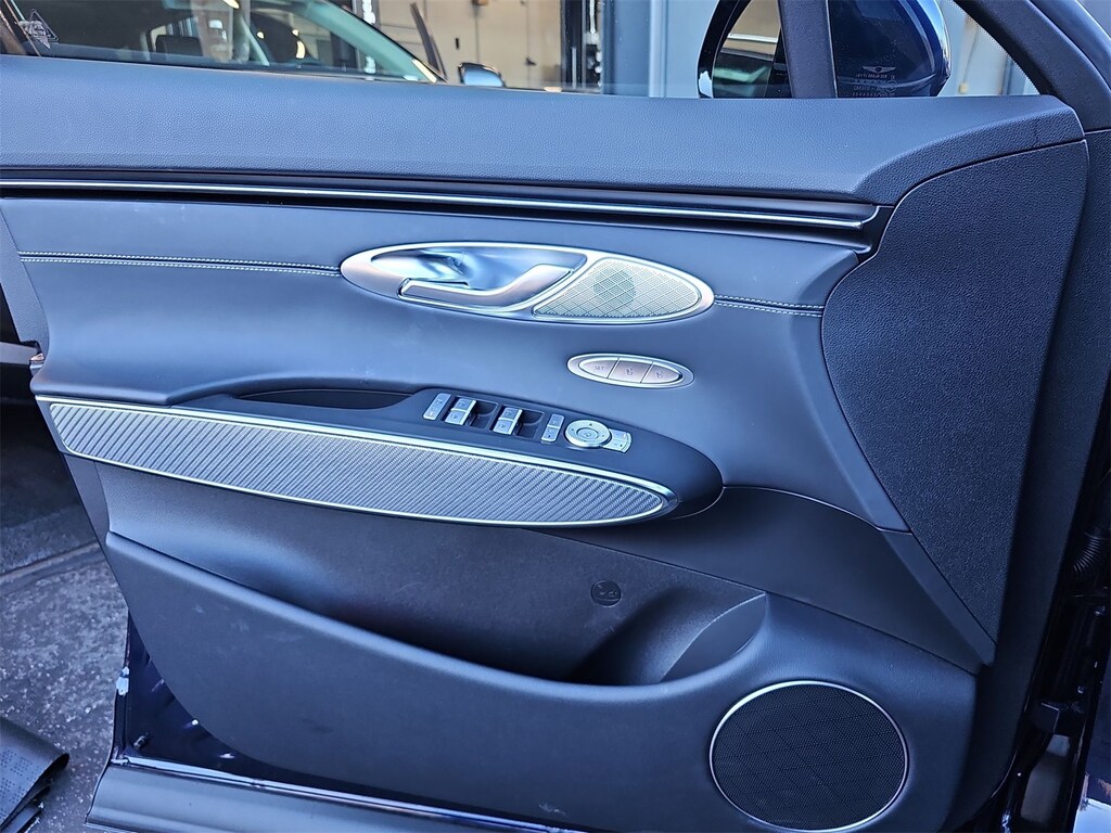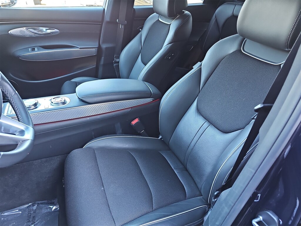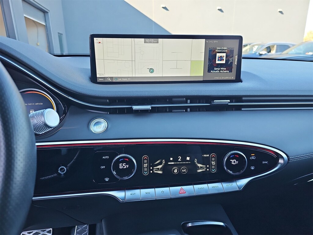 THIS VEHICLE IS EQUIPPED WITH THE FOLLOWING OPTIONS AND FEATURES: Option Group 01, 4-Wheel Disc Brakes, 9 Speakers, ABS brakes, Adaptive suspension, Air Conditioning, Alloy wheels, AM/FM radio: SiriusXM, Android Auto & Apple CarPlay, Anti-whiplash front head restraints, Auto High-beam Headlights, Auto-dimming door mirrors, Auto-dimming Rear-View mirror, Automatic temperature control, Brake assist, Bumpers: body-color, Delay-off headlights, Driver door bin, Driver vanity mirror, Dual front impact airbags, Dual front side impact airbags, Electronic Stability Control, Emergency communication system: Genesis Connected Services, Exterior Parking Camera Rear, First Aid Kit, Four wheel independent suspension, Front anti-roll bar, Front Bucket Seats, Front Center Armrest w/Storage, Front dual zone A/C, Front reading lights, Fully automatic headlights, Garage door transmitter: HomeLink, Heated & Ventilated Front Bucket Seats, Heated door mirrors, Heated front seats, Heated steering wheel, Illuminated entry, Knee airbag, Leather Seating Surfaces w/Mesh Insert, Leather steering wheel, Low tire pressure warning, Memory seat, Navigation System, Occupant sensing airbag, Outside temperature display, Overhead airbag, Overhead console, Panic alarm, Passenger door bin, Passenger vanity mirror, Power door mirrors, Power driver seat, Power Liftgate, Power moonroof, Power passenger seat, Power steering, Power windows, Radio: 14.5 Navigation System w/AM/FM/HD Radio, Rain sensing wipers, Rear anti-roll bar, Rear Parking Sensors, Rear reading lights, Rear seat center armrest, Rear window defroster, Rear window wiper, Remote keyless entry, Security system, Speed control, Speed-sensing steering, Speed-Sensitive Wipers, Split folding rear seat, Spoiler, Steering wheel memory, Steering wheel mounted audio controls, Tachometer, Telescoping steering wheel, Traction control, Trip computer, Turn signal indicator mirrors, Variably intermittent wipers, Ventilated front seats, and Wheels: 19 Dark Hyper Silver Sport Alloy. Recent Arrival!