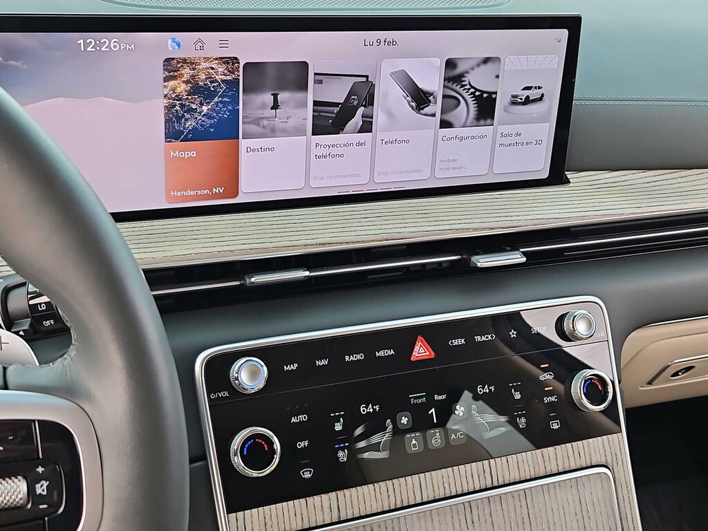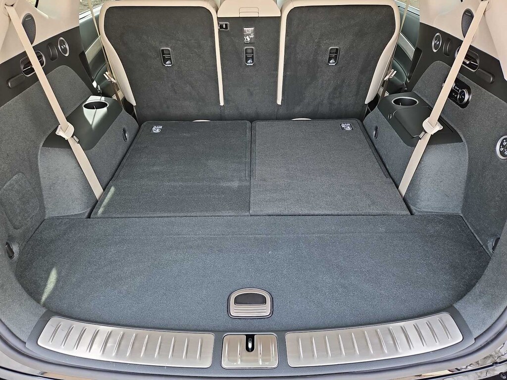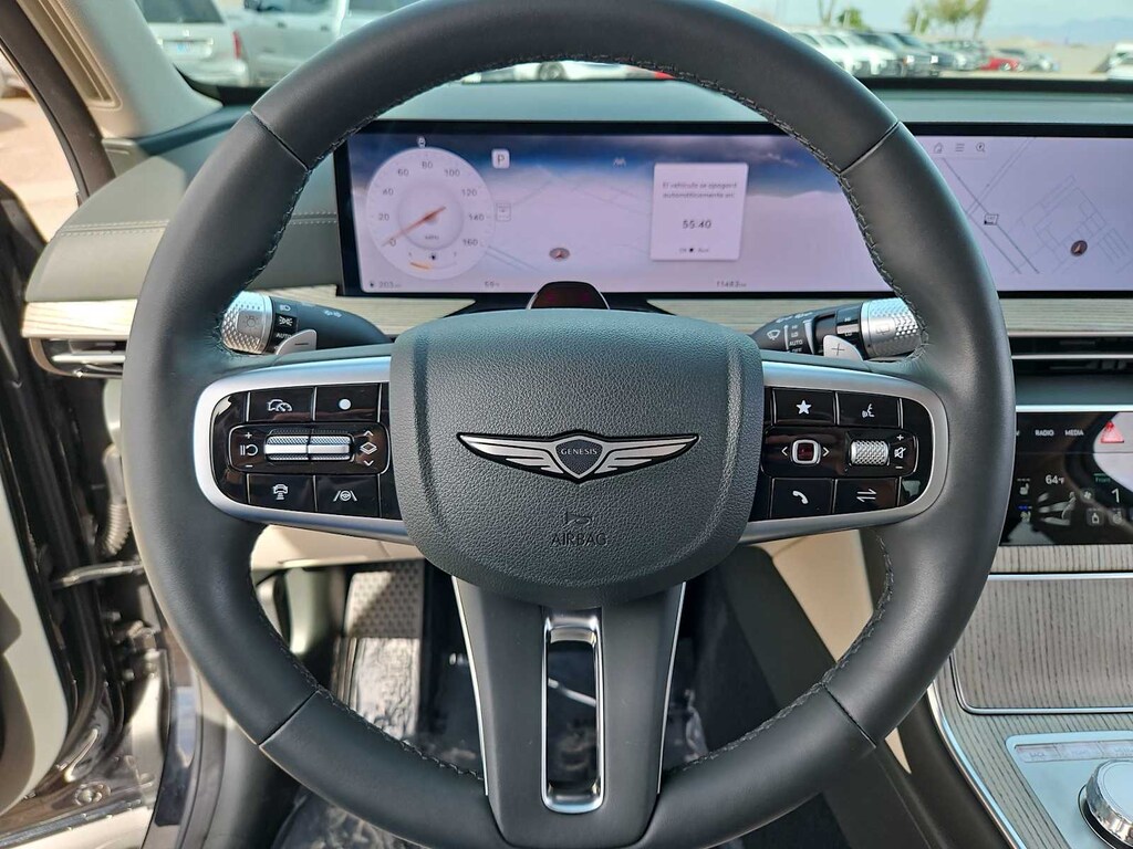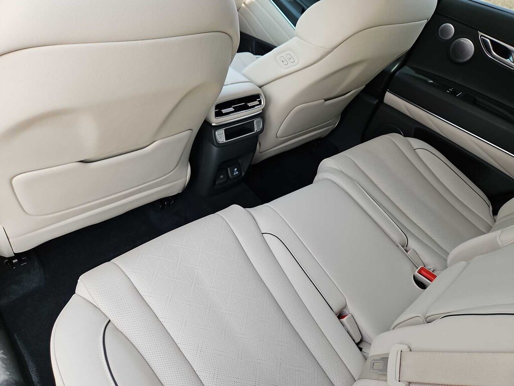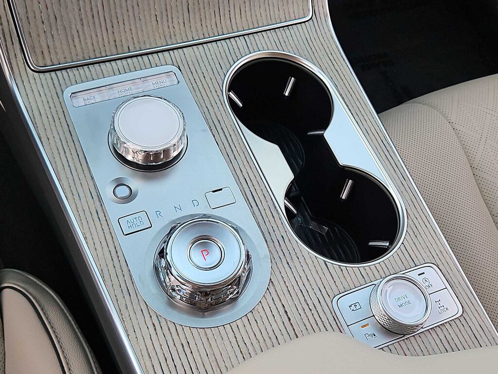 18 Speakers, 3rd row seats: split-bench, 4-Wheel Disc Brakes, ABS brakes, Adaptive suspension, Air Conditioning, Alloy wheels, AM/FM radio: SiriusXM, Anti-whiplash front head restraints, Auto High-beam Headlights, Auto tilt-away steering wheel, Auto-dimming door mirrors, Auto-dimming Rear-View mirror, Automatic temperature control, Brake assist, Bumpers: body-color, Compass, Delay-off headlights, Driver door bin, Driver vanity mirror, Dual front impact airbags, Dual front side impact airbags, Electronic Stability Control, Emergency communication system: Genesis Connected Services, Exterior Parking Camera Rear, First Aid Kit, Four wheel independent suspension, Front anti-roll bar, Front Bucket Seats, Front Center Armrest, Front dual zone A/C, Front reading lights, Fully automatic headlights, Garage door transmitter: HomeLink, Genuine wood console insert, Genuine wood dashboard insert, Genuine wood door panel insert, Heads-Up Display, Heated & Ventilated Front Bucket Seats, Heated door mirrors, Heated front seats, Heated rear seats, Heated steering wheel, Illuminated entry, Knee airbag, Leather Seating Surfaces, Leather steering wheel, Low tire pressure warning, Memory seat, Navigation System, NFC Key Card, Occupant sensing airbag, Option Group 01, Outside temperature display, Overhead airbag, Overhead console, Panic alarm, Passenger door bin, Passenger vanity mirror, Power door mirrors, Power driver seat, Power Liftgate, Power moonroof, Power passenger seat, Power steering, Power windows, Radio data system, Radio: AM/FM/SiriusXM/HD Bang & Olufsen Sound Sys, Rain sensing wipers, Rear air conditioning, Rear anti-roll bar, Rear reading lights, Rear seat center armrest, Rear side impact airbag, Rear window defroster, Rear window wiper, Reclining 3rd row seat, Remote keyless entry, Security system, Speed control, Speed-sensing steering, Speed-Sensitive Wipers, Split folding rear seat, Spoiler, Steering wheel memory, Steering wheel mounted audio controls, Tachometer, Telescoping steering wheel, Tilt steering wheel, Traction control, Trip computer, Turn signal indicator mirrors, Variably intermittent wipers, Ventilated front seats, Wheel Locks, Wheels: 20 x 8.5J Dark Gray Matte Alloy.