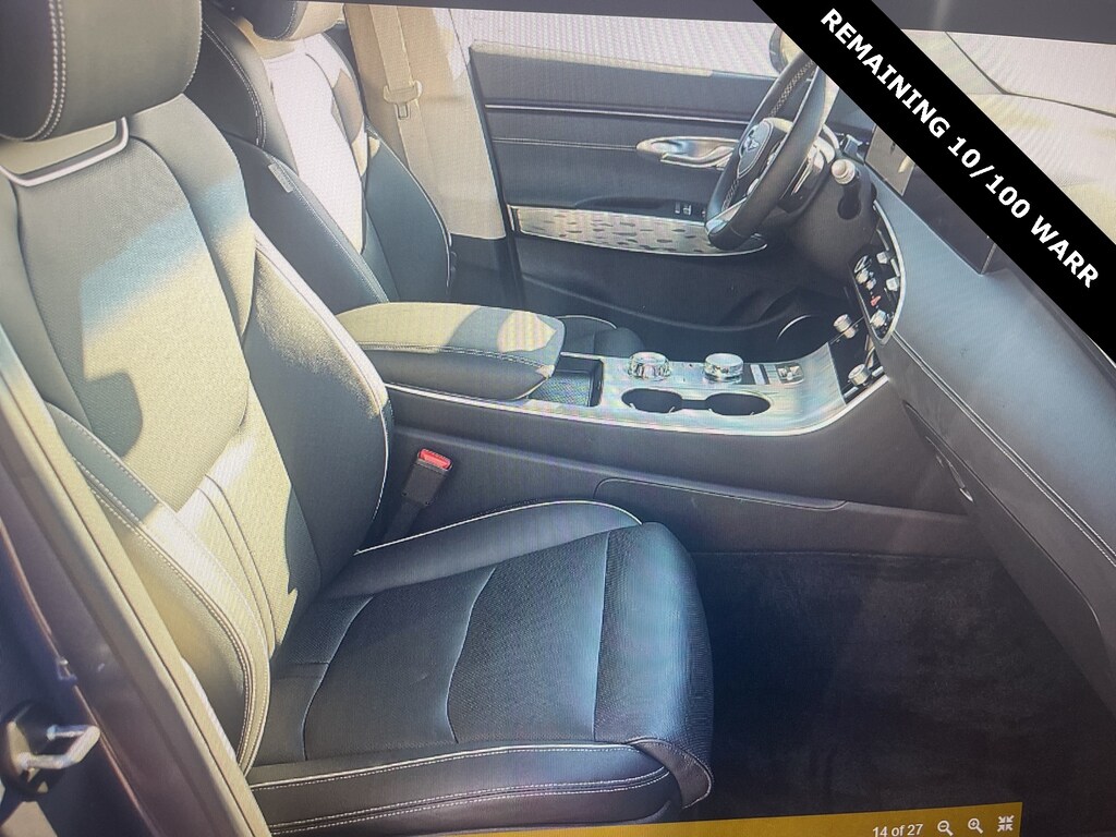 THIS VEHICLE IS EQUIPPED WITH THE FOLLOWING OPTIONS AND FEATURES: ABS brakes, Alloy wheels, Electronic Stability Control, Front dual zone A/C, Heated door mirrors, Heated front seats, Illuminated entry, Low tire pressure warning, Navigation System, Power Liftgate, Power moonroof, Remote keyless entry, Traction control, 4-Wheel Disc Brakes, 8 Speakers, Adaptive suspension, Air Conditioning, AM/FM radio: SiriusXM, Anti-whiplash front head restraints, Auto High-beam Headlights, Auto-dimming Rear-View mirror, Automatic temperature control, Brake assist, Bumpers: body-color, Delay-off headlights, Driver door bin, Driver vanity mirror, Dual front impact airbags, Dual front side impact airbags, Emergency communication system: Genesis Connected Services, Exterior Parking Camera Rear, Four wheel independent suspension, Front anti-roll bar, Front Bucket Seats, Front Center Armrest, Front reading lights, Fully automatic headlights, Garage door transmitter: HomeLink, Knee airbag, Leather Seating Surfaces, Leather steering wheel, Memory seat, Occupant sensing airbag, Outside temperature display, Overhead airbag, Overhead console, Panic alarm, Passenger door bin, Passenger vanity mirror, Power door mirrors, Power driver seat, Power passenger seat, Power steering, Power windows, Radio: AM/FM/HD, Rain sensing wipers, Rear anti-roll bar, Rear reading lights, Rear seat center armrest, Rear window defroster, Rear window wiper, Security system, Speed control, Speed-sensing steering, Speed-Sensitive Wipers, Split folding rear seat, Spoiler, Steering wheel memory, Steering wheel mounted audio controls, Telescoping steering wheel, Trip computer, Turn signal indicator mirrors, and Variably intermittent wipers. Recent Arrival! 103/88 City/Highway MPG
