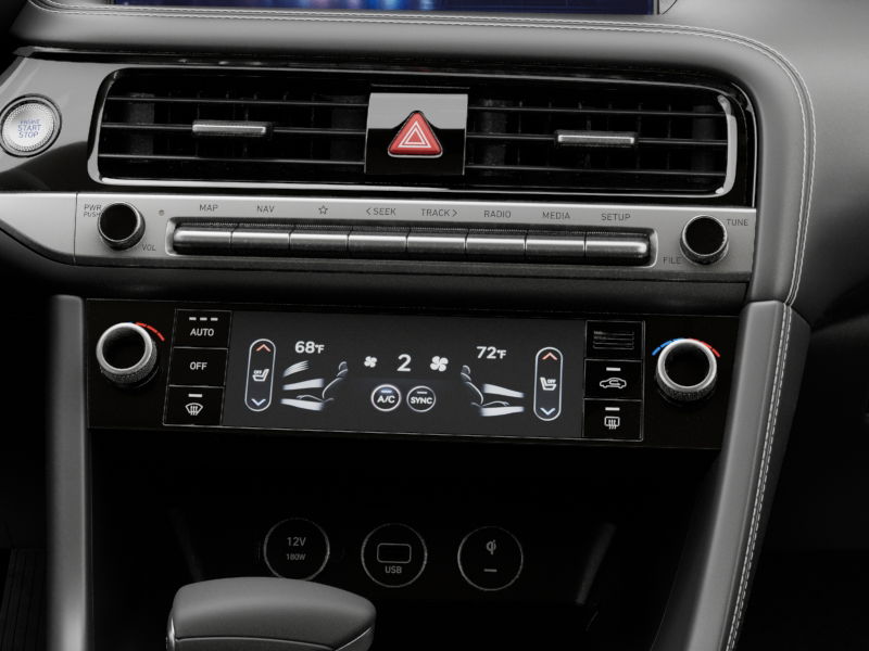 THIS VEHICLE IS EQUIPPED WITH THE FOLLOWING OPTIONS AND FEATURES: Option Group 01, 4-Wheel Disc Brakes, 6 Speakers, ABS brakes, Air Conditioning, Alloy wheels, AM/FM radio: SiriusXM, Android Auto & Apple CarPlay, Anti-whiplash front head restraints, Auto High-beam Headlights, Auto-dimming Rear-View mirror, Automatic temperature control, Brake assist, Bumpers: body-color, Delay-off headlights, Driver door bin, Driver vanity mirror, Dual front impact airbags, Dual front side impact airbags, Electronic Stability Control, Emergency communication system: Genesis Connected Services, Exterior Parking Camera Rear, First Aid Kit, Four wheel independent suspension, Front anti-roll bar, Front Bucket Seats, Front Center Armrest, Front dual zone A/C, Front reading lights, Fully automatic headlights, Garage door transmitter: HomeLink, Heated door mirrors, Heated front seats, Heated Multi-Adjustable Front Bucket Seats, Illuminated entry, Knee airbag, Leather steering wheel, Leatherette Seating Surfaces, Low tire pressure warning, Mudguards, Navigation System, Occupant sensing airbag, Outside temperature display, Overhead airbag, Overhead console, Panic alarm, Passenger door bin, Passenger vanity mirror, Power door mirrors, Power driver seat, Power passenger seat, Power steering, Power windows, Radio: AM/FM/HD Audio System, Rear anti-roll bar, Rear reading lights, Rear seat center armrest, Rear side impact airbag, Rear window defroster, Remote keyless entry, Reversible Cargo Tray, Security system, Speed control, Speed-Sensitive Wipers, Split folding rear seat, Steering wheel mounted audio controls, Tachometer, Telescoping steering wheel, Traction control, Trip computer, Turn signal indicator mirrors, Variably intermittent wipers, and Wheels: 19 x 8.0J Front and 19 x 8.5J Rear Alloy. Recent Arrival! 21/29 City/Highway MPG