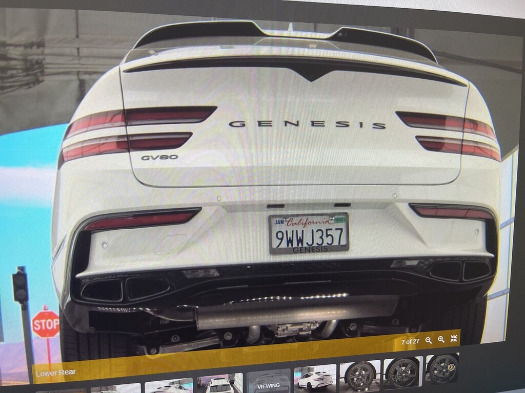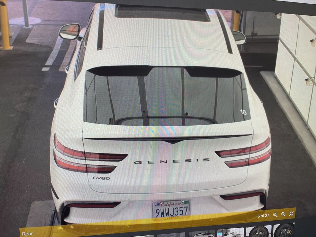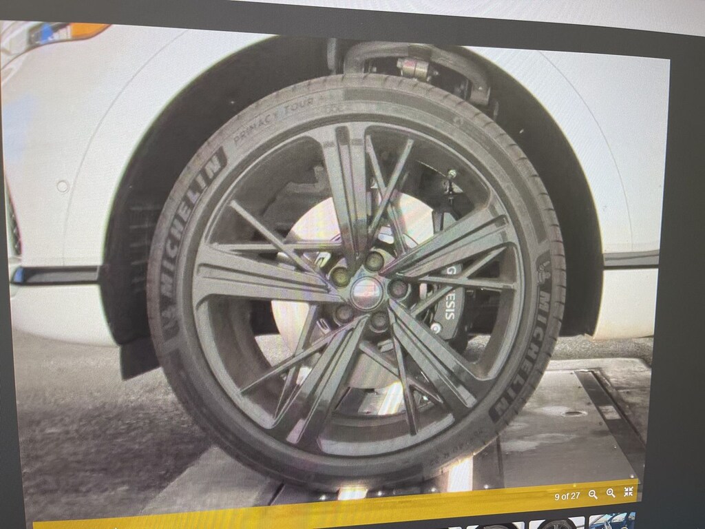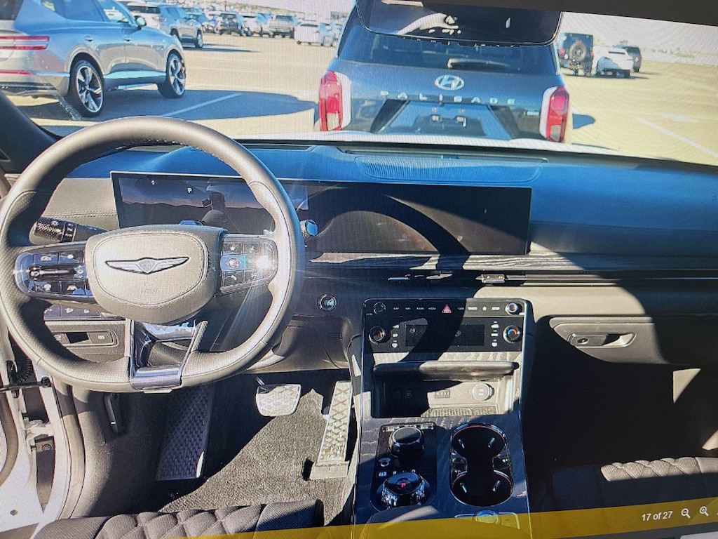 THIS VEHICLE IS EQUIPPED WITH THE FOLLOWING OPTIONS AND FEATURES: Option Group 01, 18 Speakers, 4-Wheel Disc Brakes, ABS brakes, Adaptive suspension, Air Conditioning, Alloy wheels, AM/FM radio: SiriusXM, Android Auto & Apple CarPlay, Anti-whiplash front head restraints, Auto High-beam Headlights, Auto tilt-away steering wheel, Auto-dimming door mirrors, Auto-dimming Rear-View mirror, Automatic temperature control, Brake assist, Bumpers: body-color, Compass, Delay-off headlights, Driver door bin, Driver vanity mirror, Dual front impact airbags, Dual front side impact airbags, Electronic Stability Control, Emergency communication system: Genesis Connected Services, Exterior Parking Camera Rear, Four wheel independent suspension, Front anti-roll bar, Front Bucket Seats, Front Center Armrest, Front dual zone A/C, Front reading lights, Fully automatic headlights, Garage door transmitter: HomeLink, Genuine wood console insert, Genuine wood dashboard insert, Heads-Up Display, Heated and Ventilated Front Bucket Seats, Heated door mirrors, Heated front seats, Heated rear seats, Heated steering wheel, Illuminated entry, Knee airbag, Low tire pressure warning, Memory seat, Nappa Leather Seating Surfaces, Navigation System, Occupant sensing airbag, Outside temperature display, Overhead airbag, Overhead console, Panic alarm, Passenger door bin, Passenger vanity mirror, Power door mirrors, Power driver seat, Power Liftgate, Power moonroof, Power passenger seat, Power steering, Power windows, Radio data system, Radio: AM/FM/HD Bang & Olufsen Premium Audio, Rain sensing wipers, Rear air conditioning, Rear anti-roll bar, Rear reading lights, Rear seat center armrest, Rear side impact airbag, Rear window defroster, Remote keyless entry, Security system, Speed control, Speed-sensing steering, Speed-Sensitive Wipers, Split folding rear seat, Spoiler, Sport steering wheel, Steering wheel memory, Steering wheel mounted audio controls, Tachometer, Telescoping steering wheel, Tilt steering wheel, Traction control, Trip computer, Turn signal indicator mirrors, Variably intermittent wipers, Ventilated front seats, Ventilated rear seats, and Wheels: 22 x 9.5J Black Matte Sport Alloy. Recent Arrival! Odometer is 1605 miles below market average!