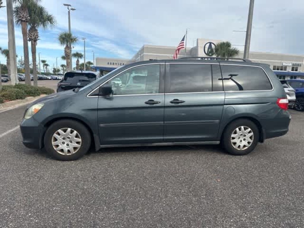 This 2006 Honda Odyssey LX in Silver Pearl Metallic, features 16 Steel Wheels w/Full Covers, 3rd row seats: split-bench, 4 Speakers, 4-Wheel Disc Brakes, 4.428 Axle Ratio, ABS brakes, Air Conditioning, AM/FM radio, AM/FM/CD Audio System w/4 Speakers, Bodyside moldings, Brake assist, Bumpers: body-color, CD player, Cloth Seat Trim, Driver door bin, Driver vanity mirror, Drivers Seat Mounted Armrest, Dual front impact airbags, Dual front side impact airbags, Electronic Stability Control, Four wheel independent suspension, Front anti-roll bar, Front Bucket Seats, Front reading lights, Illuminated entry, Occupant sensing airbag, Overhead airbag, Overhead console, Panic alarm, Passenger door bin, Passenger seat mounted armrest, Passenger vanity mirror, Power door mirrors, Power steering, Power windows, Rear air conditioning, Rear reading lights, Rear window defroster, Rear window wiper, Reclining 3rd row seat, Remote keyless entry, Speed control, Speed-sensing steering, Speed-Sensitive Wipers, Split folding rear seat, Spoiler, Tachometer, Tilt steering wheel, Traction control, and Variably intermittent wipers: