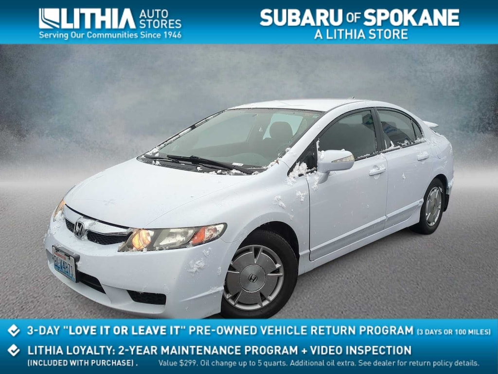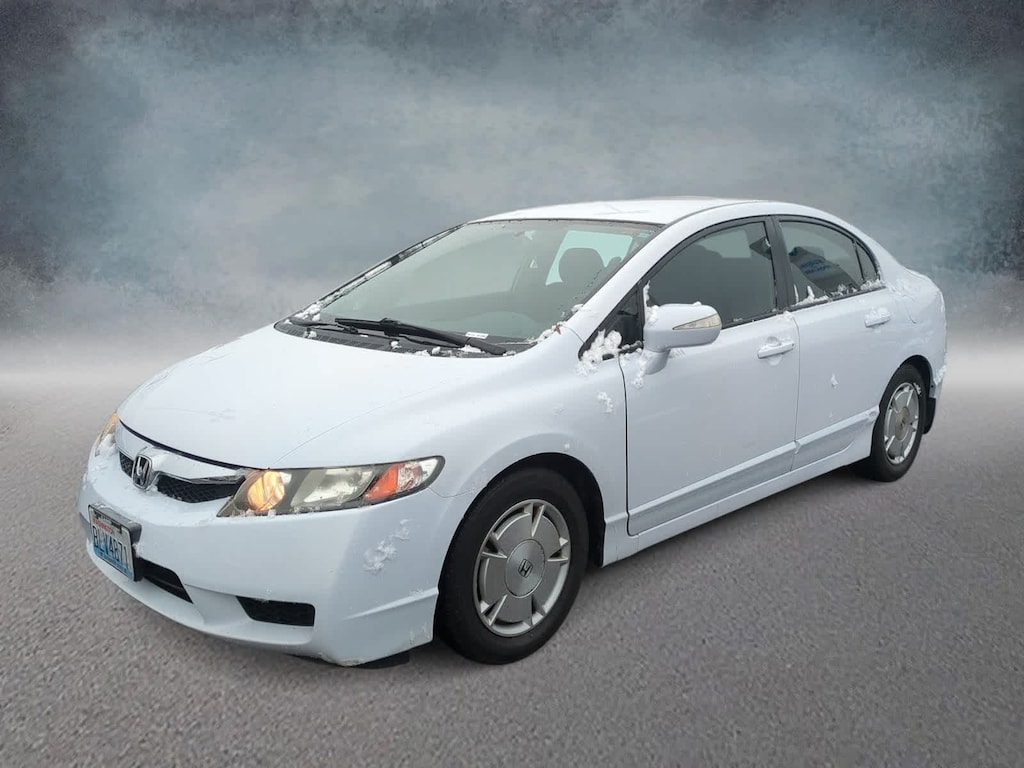 Spectrum White Pearl 2009 Honda Civic Hybrid FWD CVT 1.3L I4 SOHC i-VTEC 8V Black Cloth, 15 Lightweight Alloy Wheels, 160-Watt AM/FM/CD Audio System, 6 Speakers, ABS brakes, Air Conditioning, Alloy wheels, Anti-whiplash front head restraints, Automatic temperature control, Bodyside moldings, Brake assist, Bumpers: body-color, CD player, Driver door bin, Driver vanity mirror, Dual front impact airbags, Dual front side impact airbags, Electronic Stability Control, Four wheel independent suspension, Front anti-roll bar, Front Bucket Seats, Front Center Armrest, Front reading lights, Illuminated entry, Low tire pressure warning, Occupant sensing airbag, Outside temperature display, Overhead airbag, Panic alarm, Passenger door bin, Passenger vanity mirror, Power door mirrors, Power steering, Power windows, Rear anti-roll bar, Rear window defroster, Remote keyless entry, Security system, Speed control, Speed-sensing steering, Spoiler, Steering wheel mounted audio controls, Tachometer, Telescoping steering wheel, Tilt steering wheel, Traction control, Turn signal indicator mirrors, Variably intermittent wipers, Voltmeter, Black Cloth.