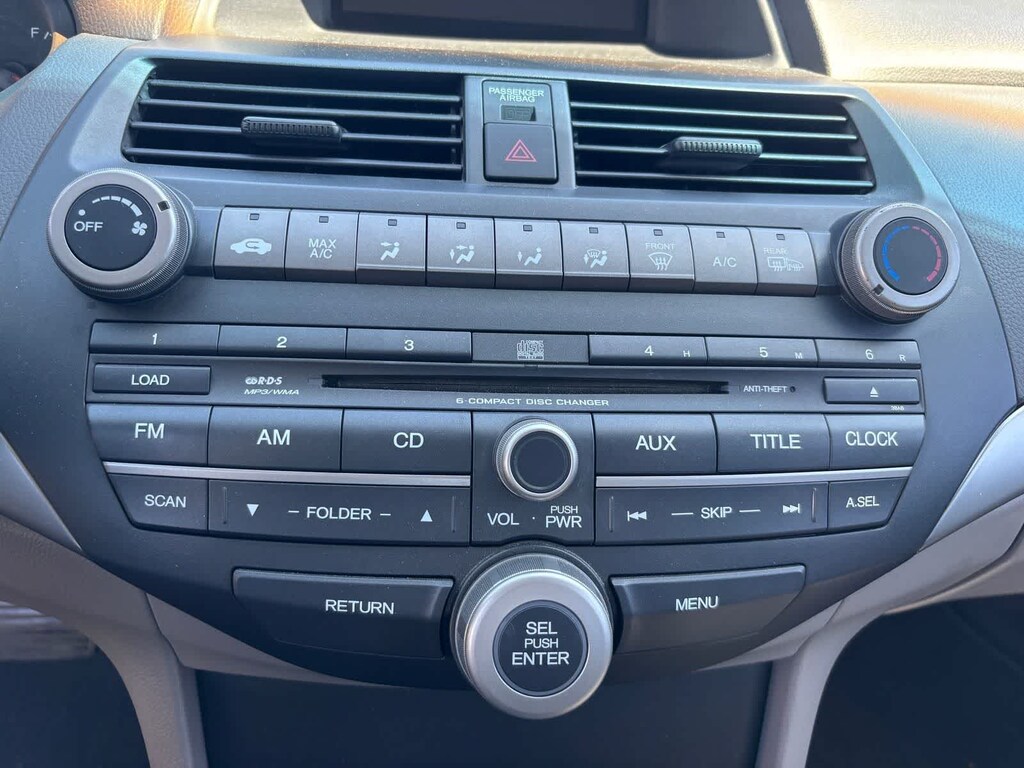 Black Cloth, 160-Watt AM/FM/6-Disc In-Dash Audio System, 17 Alloy Wheels, 4-Wheel Disc Brakes, 6 Speakers, ABS brakes, Air Conditioning, Alloy wheels, AM/FM radio, Anti-whiplash front head restraints, Brake assist, Bumpers: body-color, CD player, Cloth Seat Trim, Delay-off headlights, Driver door bin, Driver vanity mirror, Dual front impact airbags, Dual front side impact airbags, Electronic Stability Control, Four wheel independent suspension, Front anti-roll bar, Front Bucket Seats, Front Center Armrest, Front reading lights, Heated door mirrors, Illuminated entry, Low tire pressure warning, Occupant sensing airbag, Overhead airbag, Overhead console, Panic alarm, Passenger door bin, Passenger vanity mirror, Power door mirrors, Power driver seat, Power moonroof, Power steering, Power windows, Radio data system, Rear anti-roll bar, Rear seat center armrest, Rear window defroster, Remote keyless entry, Security system, Speed control, Speed-sensing steering, Speed-Sensitive Wipers, Steering wheel mounted audio controls, Tachometer, Telescoping steering wheel, Tilt steering wheel, Traction control, and Variably intermittent wipers. Gray 2010 Honda Accord EX 2.4 FWD 5-Speed Automatic with Overdrive 2.4L I4 DOHC i-VTEC 16V Black Cloth.