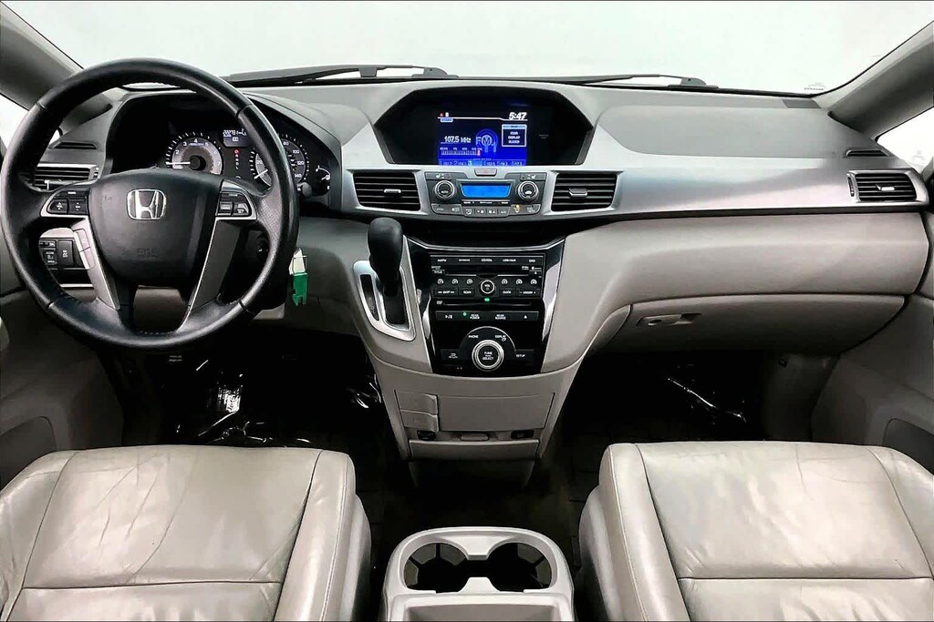 Odyssey EX-L, 3.5L V6 SOHC i-VTEC 24V, 17 x 7 Alloy Wheels, 3rd row seats: split-bench, 4-Wheel Disc Brakes, 4.31 Axle Ratio, 7 Speakers, ABS brakes, Air Conditioning, Alloy wheels, AM/FM radio: XM, Anti-whiplash front head restraints, Auto-dimming Rear-View mirror, Automatic temperature control, Brake assist, Bumpers: body-color, CD player, Delay-off headlights, Driver door bin, Driver vanity mirror, Drivers Seat Mounted Armrest, Dual front impact airbags, Dual front side impact airbags, Electronic Stability Control, Four wheel independent suspension, Front anti-roll bar, Front Bucket Seats, Front dual zone A/C, Front reading lights, Fully automatic headlights, Garage door transmitter: HomeLink, Heated door mirrors, Heated Front Bucket Seats, Heated front seats, Illuminated entry, Leather Seat Trim, Leather Shift Knob, Low tire pressure warning, Occupant sensing airbag, Outside temperature display, Overhead airbag, Overhead console, Panic alarm, Passenger door bin, Passenger seat mounted armrest, Passenger vanity mirror, Power door mirrors, Power driver seat, Power Liftgate, Power moonroof, Power passenger seat, Power steering, Power windows, Radio data system, Rear air conditioning, Rear reading lights, Rear seat center armrest, Rear window defroster, Rear window wiper, Reclining 3rd row seat, Remote keyless entry, Security system, Speed control, Speed-sensing steering, Speed-Sensitive Wipers, Split folding rear seat, Spoiler, Steering wheel mounted audio controls, Tachometer, Telescoping steering wheel, Tilt steering wheel, Traction control, Trip computer, Variably intermittent wipers, and XM Radio. Local Trade, Odyssey EX-L, 3.5L V6 SOHC i-VTEC 24V.
