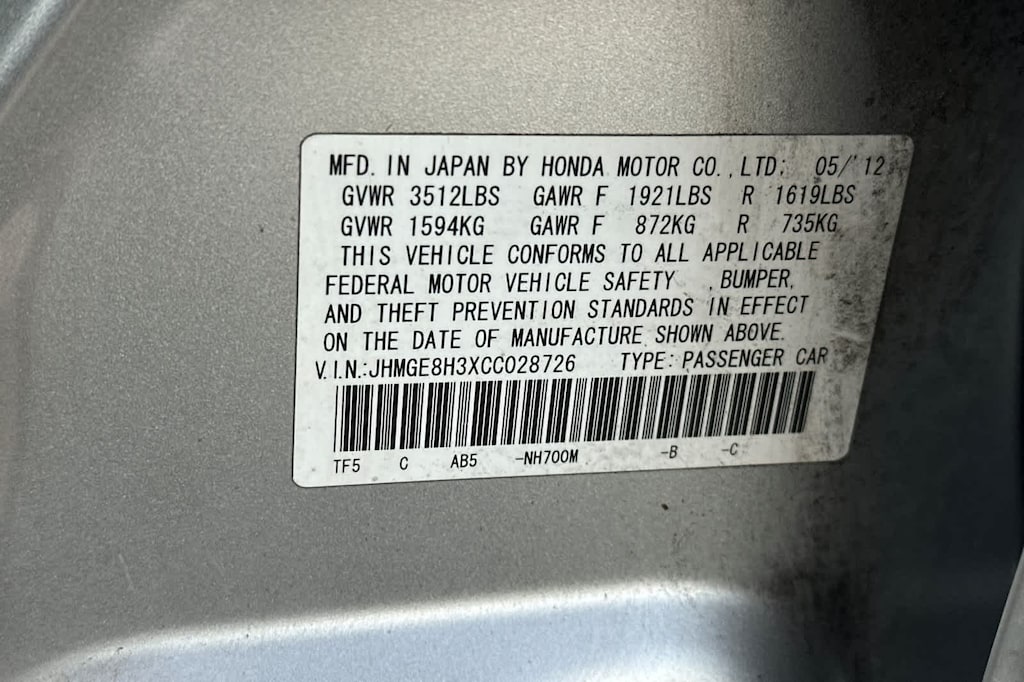 2012 Honda Fit FWD 5-Speed Automatic 1.5L 16V 4-Cylinder SOHC i-VTEC