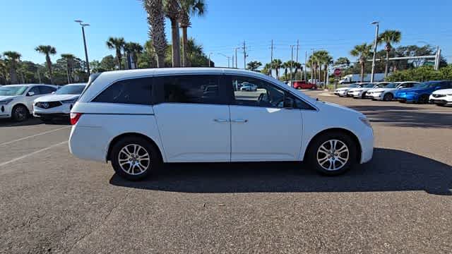 This 2012 Honda Odyssey EX-L in White Diamond Pearl, features 17 x 7 Alloy Wheels, 3rd row seats: split-bench, 4-Wheel Disc Brakes, 4.31 Axle Ratio, 7 Speakers, ABS brakes, Air Conditioning, Alloy wheels, AM/FM radio: XM, Anti-whiplash front head restraints, Auto-dimming Rear-View mirror, Automatic temperature control, Brake assist, Bumpers: body-color, CD player, Delay-off headlights, Driver door bin, Driver vanity mirror, Drivers Seat Mounted Armrest, Dual front impact airbags, Dual front side impact airbags, Electronic Stability Control, Four wheel independent suspension, Front anti-roll bar, Front Bucket Seats, Front dual zone A/C, Front reading lights, Fully automatic headlights, Garage door transmitter: HomeLink, Heated door mirrors, Heated Front Bucket Seats, Heated front seats, Illuminated entry, Leather Seat Trim, Leather Shift Knob, Low tire pressure warning, Occupant sensing airbag, Outside temperature display, Overhead airbag, Overhead console, Panic alarm, Passenger door bin, Passenger seat mounted armrest, Passenger vanity mirror, Power door mirrors, Power driver seat, Power Liftgate, Power moonroof, Power passenger seat, Power steering, Power windows, Radio data system, Rear air conditioning, Rear reading lights, Rear seat center armrest, Rear window defroster, Rear window wiper, Reclining 3rd row seat, Remote keyless entry, Security system, Speed control, Speed-sensing steering, Speed-Sensitive Wipers, Split folding rear seat, Spoiler, Steering wheel mounted audio controls, Tachometer, Telescoping steering wheel, Tilt steering wheel, Traction control, Trip computer, Variably intermittent wipers, and XM Radio: