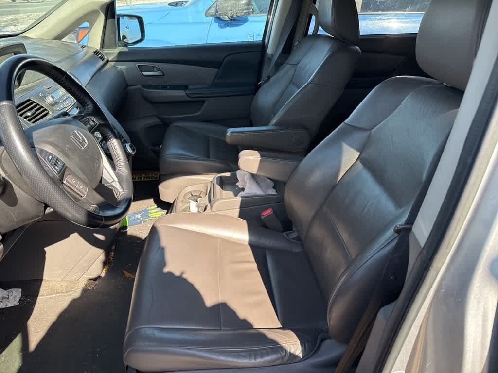 Alabaster Silver Metallic 2013 Honda Odyssey Touring FWD 6-Speed Automatic 3.5L V6 SOHC i-VTEC 24V ABS brakes, Alloy wheels, Bumpers: body-color, DVD-Audio, Electronic Stability Control, Front dual zone A/C, Heated door mirrors, Heated Front Bucket Seats, Heated front seats, Illuminated entry, Leather Seat Trim, Low tire pressure warning, Navigation System, Power door mirrors, Power Liftgate, Power moonroof, Remote keyless entry, Spoiler, Traction control, Turn signal indicator mirrors, XM Radio.