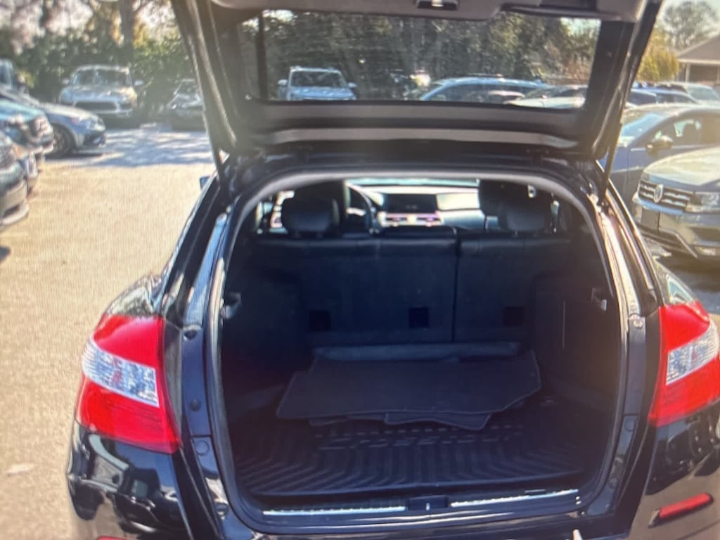 Crystal Black Pearl 2014 Honda Crosstour EX-L 4WD 6-Speed Automatic 3.5L V6 SOHC i-VTEC 24V 18 Alloy Wheels, 4-Wheel Disc Brakes, 4.25 Axle Ratio, 7 Speakers, ABS brakes, Air Conditioning, Alloy wheels, AM/FM radio: XM, Anti-whiplash front head restraints, Auto-dimming Rear-View mirror, Automatic temperature control, Brake assist, Bumpers: body-color, CD player, Compass, Delay-off headlights, Driver door bin, Driver vanity mirror, Dual front impact airbags, Dual front side impact airbags, Electronic Stability Control, Exterior Parking Camera Rear, Four wheel independent suspension, Front anti-roll bar, Front Bucket Seats, Front Center Armrest, Front dual zone A/C, Front fog lights, Front reading lights, Fully automatic headlights, Garage door transmitter: HomeLink, Heated door mirrors, Heated Front Bucket Seats, Heated front seats, Illuminated entry, Leather Shift Knob, Leather steering wheel, Leather-Trimmed Seats, Low tire pressure warning, Memory seat, Occupant sensing airbag, Outside temperature display, Overhead airbag, Overhead console, Panic alarm, Passenger door bin, Passenger vanity mirror, Power door mirrors, Power driver seat, Power moonroof, Power passenger seat, Power steering, Power windows, Radio data system, Radio: 360-Watt AM/FM/CD Premium Audio System, Rear anti-roll bar, Rear seat center armrest, Rear window defroster, Rear window wiper, Remote keyless entry, Security system, Speed control, Speed-sensing steering, Speed-Sensitive Wipers, Split folding rear seat, Spoiler, Steering wheel mounted audio controls, Tachometer, Telescoping steering wheel, Tilt steering wheel, Traction control, Trip computer, Variably intermittent wipers.